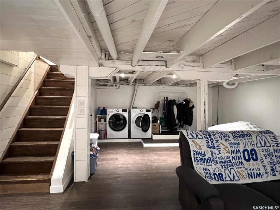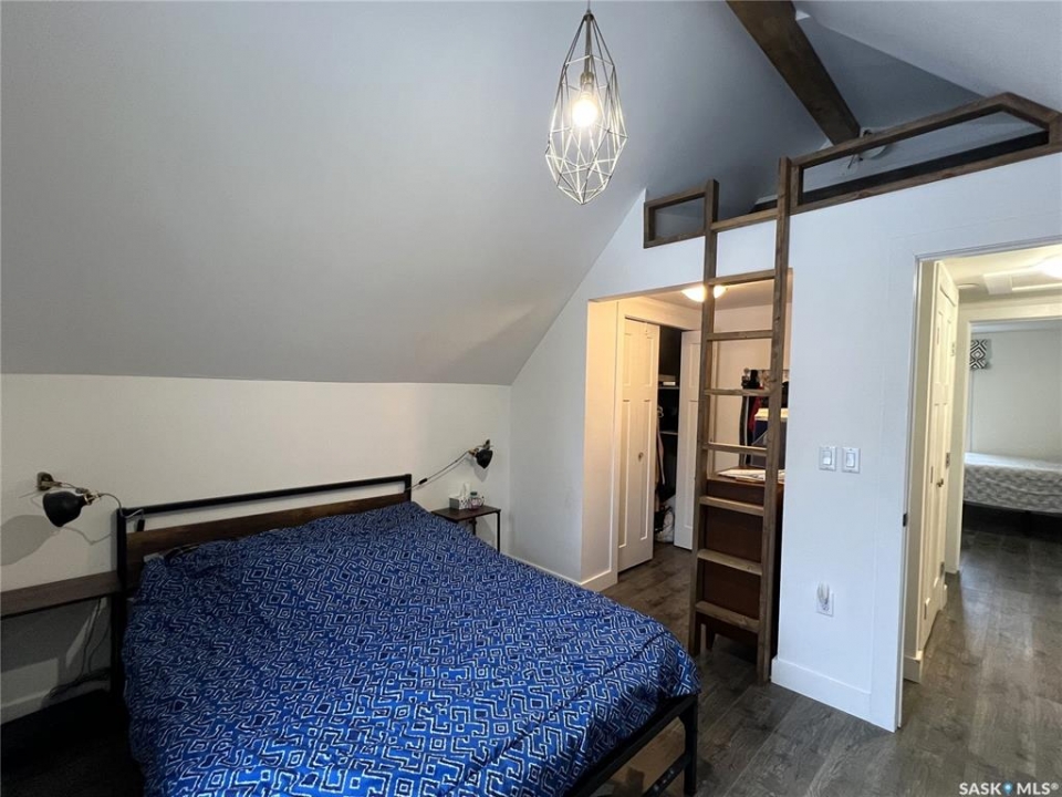 Great family home, close to schools and in a quiet location. Built in 1946 this 3 bedroom, 2 bath home has seen several updates along the way. Large entrance with plenty of storage. The updated kitchen has ample storage with plenty of counterspace. Lots of natural lighting throughout with updated windows. Living room has large east facing window as well as access to a south facing deck and fenced backyard. One bedroom on main has access to an updated 4pc bathroom. Upper level has 2 good sized bedrooms as well as a 3pc updated bathroom. Primary bedroom has walk in closet as well as a loft which is a great space for the kids to sleep. Basement features a large family room, laundry area, cold storage room and utility room. Backyard is nicely landscaped with some crushed rock, some artificial grass, concrete patio with firepit area and a large deck which is great for entertaining. Back alley access to the double detached garage which hosts a 2nd level for extra storage/living space. (this 2nd level is unfinished). This property is a must see and is move in ready! Firepit is not included.