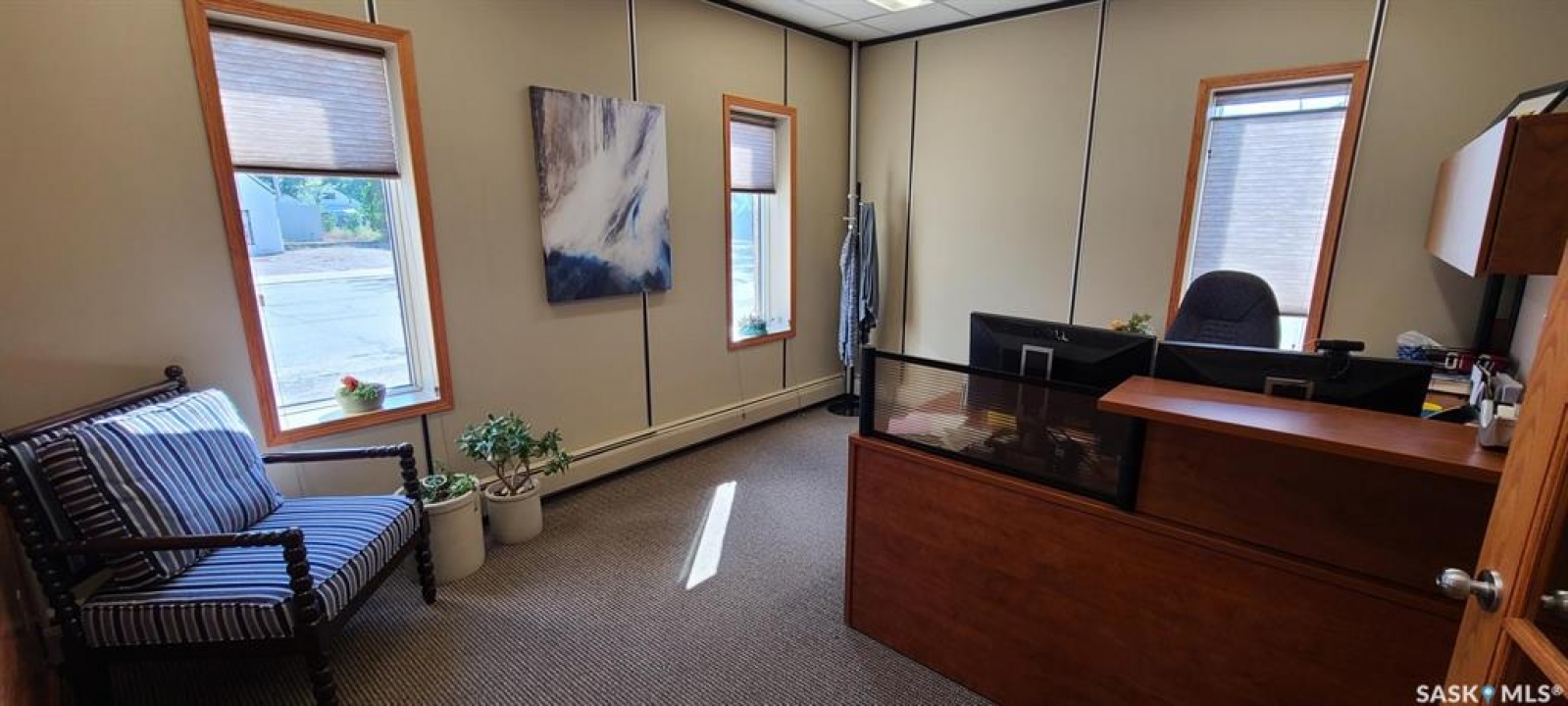 Investment Property with Optional Lease at $40,000/Year – Flexible Opportunity in Biggar This 5,100 sq. ft. office building in the heart of Biggar offers an outstanding investment opportunity, with the seller willing to lease the property at $40,000/year for a 3-year term, with an option to renew. This structure provides immediate cash flow, a stable long-term tenant, and attractive returns for investors seeking income-producing commercial real estate in a strong agricultural region. Biggar has recently completed a $7.5 million revitalization of its downtown, modernizing infrastructure, streetscapes, lighting, and commercial-area amenities. This significant municipal investment is contributing to increased economic activity, higher business engagement, and renewed commercial interest, enhancing the long-term strength and stability of the town for outside investors. The building includes 8 private offices, a large boardroom, reception area, kitchen, technology room, two bathrooms, two rear storage rooms, and a warehouse with an overhead door. Solid concrete block construction, paved parking, upgraded electrical, lighting, and flooring, and a flexible interior layout make this a turnkey commercial space with low ongoing maintenance requirements. While ideally positioned for an investor, the property also suits owner-occupiers requiring office, professional, service, or mixed-use space. Vacant possession can be provided. Located on 3rd Avenue West (C1 zoning) with excellent visibility and convenient access, this property offers both reliable income potential and functional commercial space in one of Saskatchewan's most active and forward-looking regional centres.