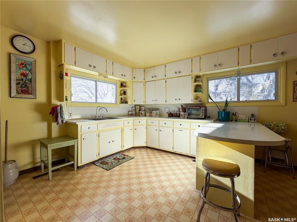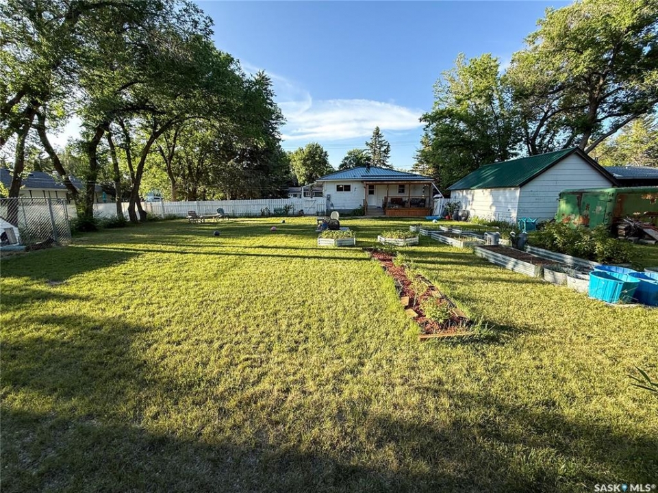 Welcome to 610 Railway Street in Eastend — a charming 4-bedroom, 2-bathroom bungalow with stunning backyard views and a lifestyle rooted in peace, space, and small-town charm. Set on a generous 15,000 sq. ft. lot with no back neighbours, this 1,070 sq. ft. home offers direct access to walking trails and scenic views of the old railway line — a rare combination that gives you both privacy and natural beauty right out your back door. With a single detached garage and two separate driveways—one on each side of the home—you'll have more than enough space for parking, guests, or extra vehicles. Step inside to a sun-soaked main floor living room with plenty of natural light, setting the tone for a warm and welcoming layout. To the right, you'll find the kitchen and dining area, complete with a built-in china cabinet and stainless steel appliances, including a gas stove (2017) and fridge (2021). The cabinetry offers abundant storage, and the dining space is ideal for everyday meals or hosting loved ones. The main floor also includes two well-sized bedrooms and a 4-piece bathroom, making for a practical and cozy layout. Downstairs, the fully developed basement adds two additional bedrooms, a renovated 3-piece bathroom (2022), and a spacious family room with a newly installed gas fireplace (2024) — perfect for keeping warm and comfortable even during power outage. You'll also find a high-efficiency furnace (2017), newer water heater (approx. 2020), cold storage, large storage room, and laundry area with washer & dryer (2018) — ticking all the boxes for practical daily living. The backyard is a dream for gardeners, pet lovers, and families alike. With a newer veranda(2023), raised garden beds (2023), a storage shed, and firepit, this outdoor space offers tons of room to relax, play, or grow your own food. Gated access from both sides of the property and a gate at the back make the yard as functional as it is beautiful. Updated metal roof on home & garage in 2023.