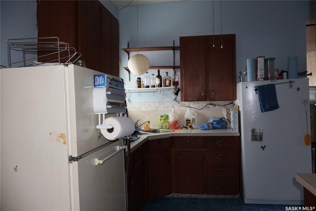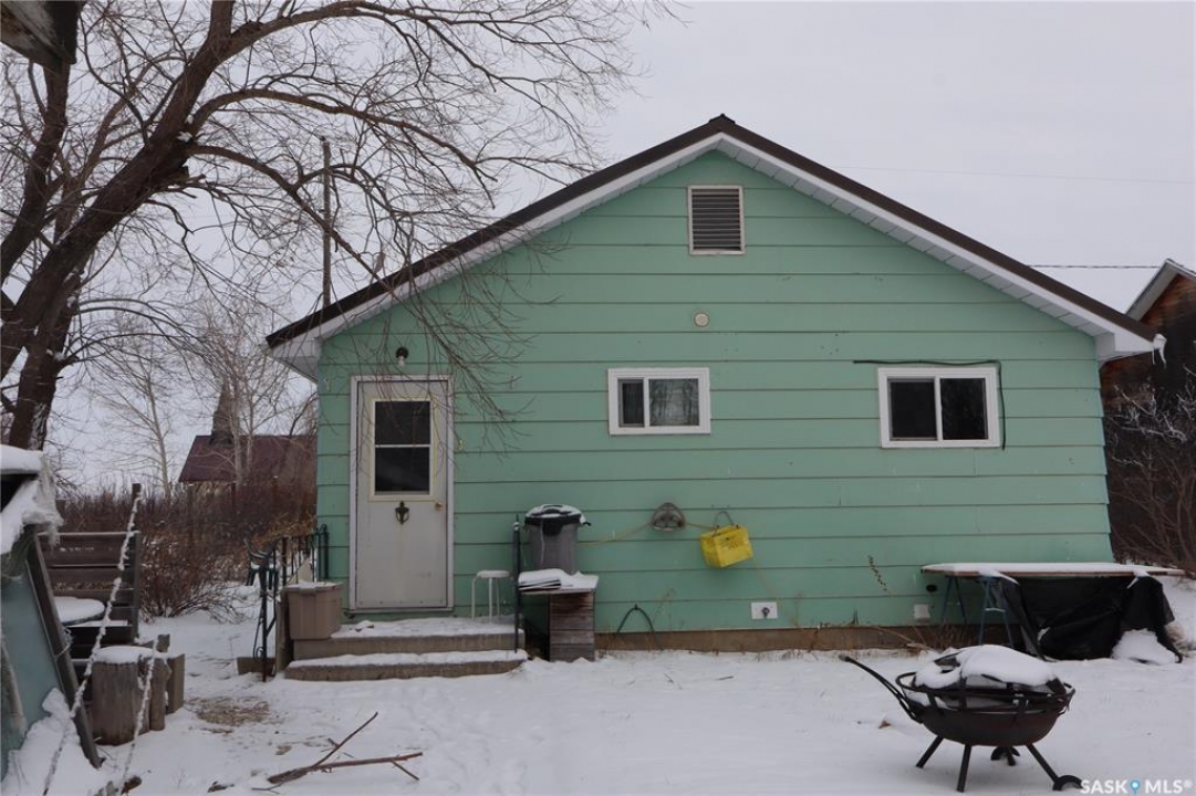 Located in Palmer, Saskatchewan, this 2-bedroom bungalow offers spacious rooms with unique wood floors, an upgraded bow window in the living room, and a kitchen with extra shelving. The large mudroom leads to the back entrance, and the 4-piece bathroom has added storage. The partially developed basement includes a high-efficiency natural gas furnace. Features include a metal roof and an insulated single detached garage at the rear of the lot. Near Gravelbourg via Highway 43, this home is in a quiet community with bus service to local schools.