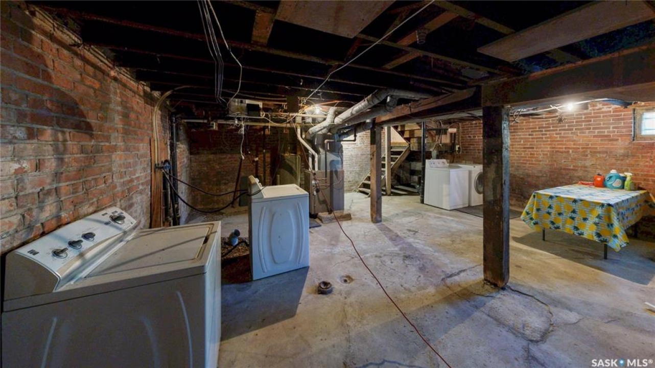 Welcome to 827 15th Avenue in the Broders Annex neighborhood close to St. Augustine Elementary School, Al Ritchie Community center and park, the library, bus routes, College Avenue drug store and more. This 1921 built, 1164 square foot, 4 bedroom 1 bathroom 2 storey house sits on a 35 x 25 square foot rectangular lot. Although the lot size is compact, there is a patio area and a single concrete driveway for private parking! You enter the front door into the large living room with modern laminate flooring. Next is an adorable little bedroom that would also make a wonderful office. The kitchen has ample cupboard and drawer space and includes the fridge and stove! The open concept has plenty of space for any size of table and chairs and there is another living room as well! Upstairs on the second floor there are three great sized bedrooms and the 4 piece bathroom! Downstairs in the partial basement you'll find the owned furnace, gas water heater and the included washer and dryer! This home also makes a great low maintenance Air BnB and was used as one prior to listing!