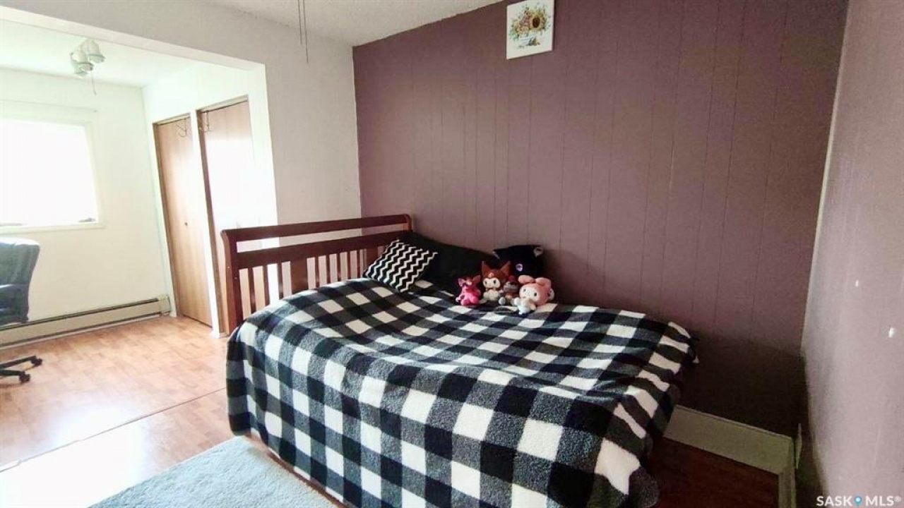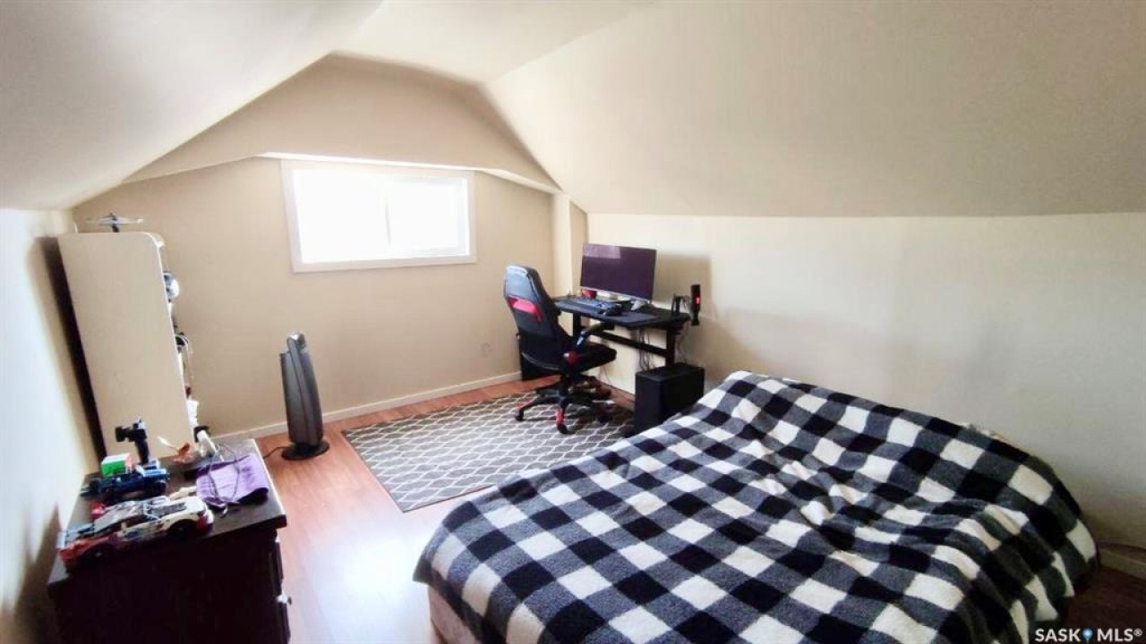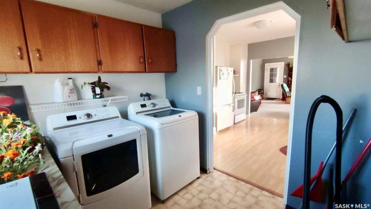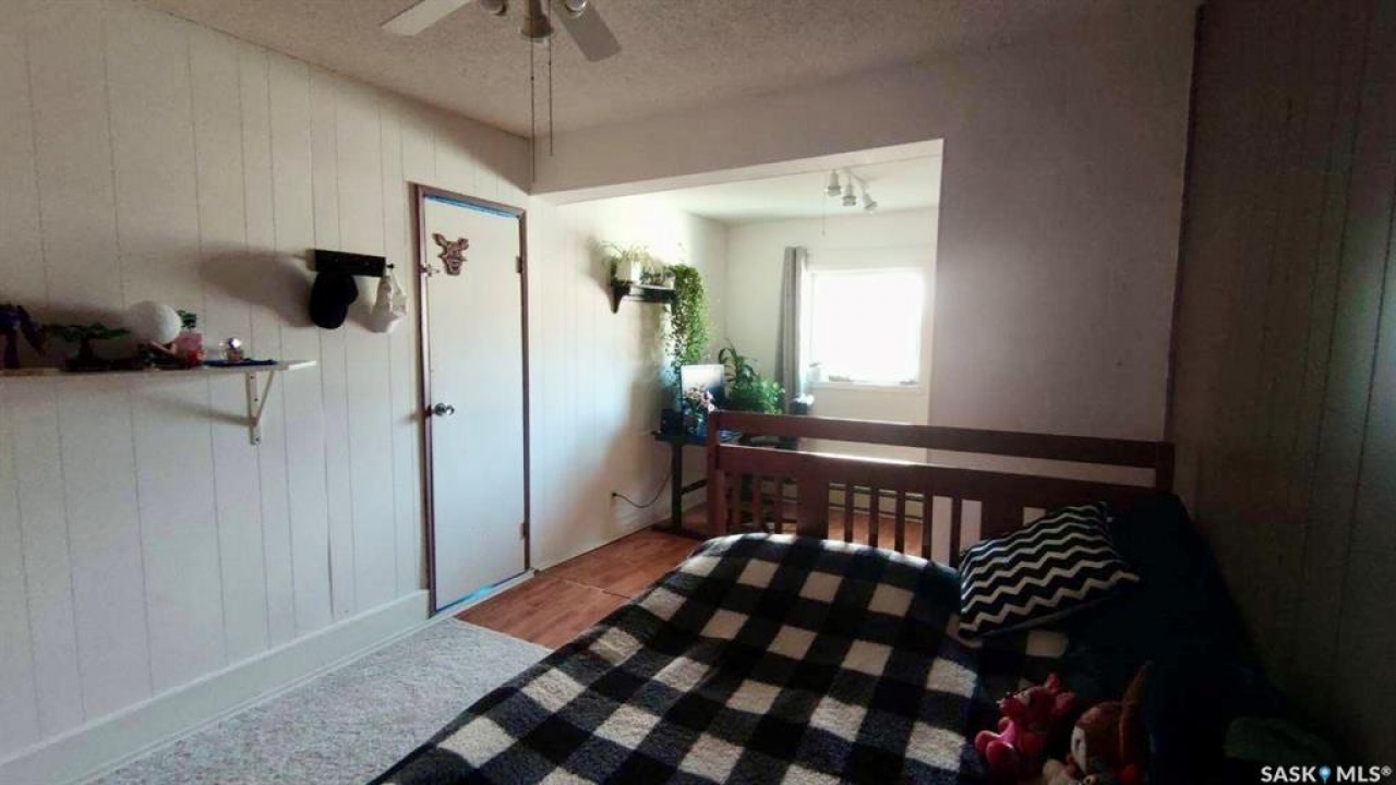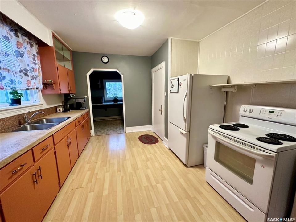 This inviting 1230 square foot home is in great condition and ready for you to move in. It features a spacious galley kitchen with lots of counter space and equipped with a fridge and stove that remain with the property. An 8' x 8' front porch adds curb appeal and offers a perfect place to welcome guests and also provides lots of room for busy families to keep their outdoor gear. The spacious rear entry leads directly into the home from the backyard and garage, offering practicality for daily life. The main floor boasts two comfortable bedrooms and a 4-piece bathroom, along with main floor laundry (washer and dryer included) for added convenience. One of the bedrooms, located at the back of the house, has a separate entrance from the rear entrance, presenting an excellent opportunity to rent out this space for additional income. The second level features a bright and airy bedroom with ample natural light and a private 3-piece bathroom. The basement is a blank canvas, ready for development, with the potential to add a 4th bedroom. Outside, there is a partially fenced yard, a driveway at the front of the house providing off-street parking, a detached one car garage with a garage door opener, and a large shed that adds extra storage and convenience. This home is perfect for families, professionals, or anyone looking for a versatile property with rental income potential. Quick possession available!