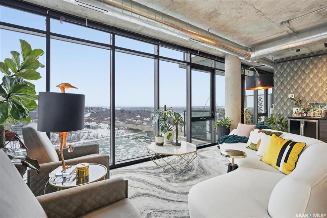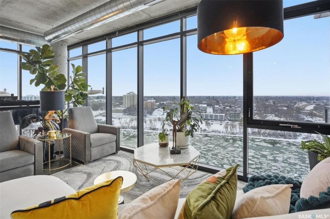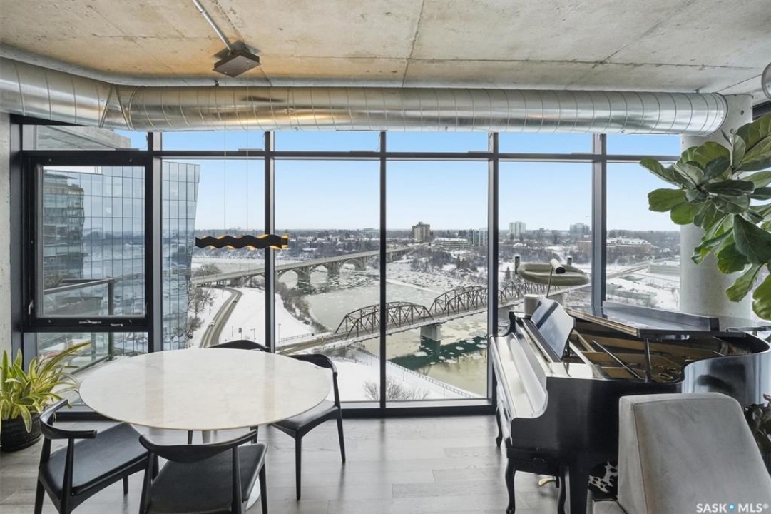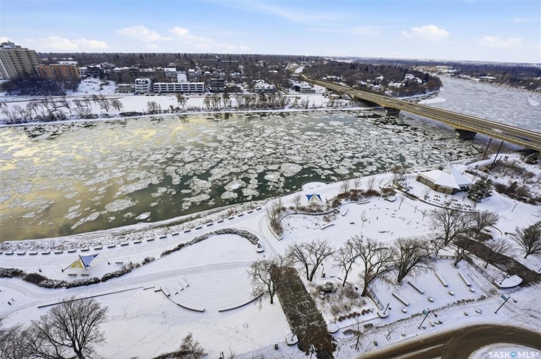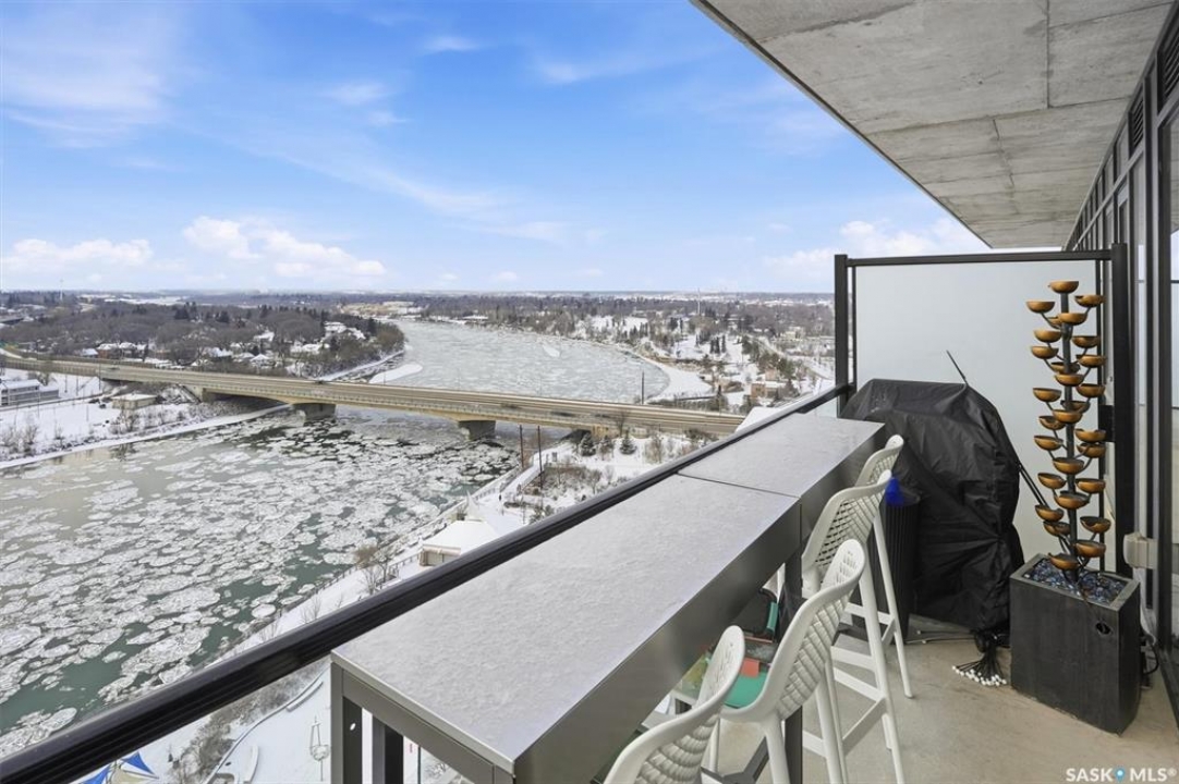 This 15th floor condo has one of the most prime panoramic views in the City. The 9' high floor to ceiling windows wrap around the entire east and south sides of the unit providing breath taking views of the ever changing river view. Two balconies, one off of the master bedroom facing east and another off of the living room facing south. Master ensuite has a large walk-in closet and walk-in shower. Over $80,000 in recent improvements including automatic blinds connected to app. Additional storage in kitchen and dining room custom built with matching cabinetry and 2 small fridges. Overhead light fixtures have been added in key areas. All stainless steel appliances in kitchen, quartz countertops, and a large island with overhang for sitting. Central air, engineered hardwood flooring throughout. Well equipped gym and lounge with pool table on main floor. Titled underground parking stall.