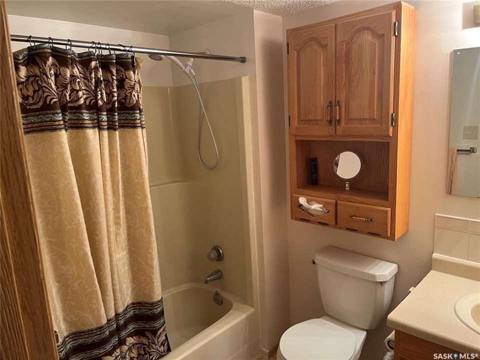 Let me introduce to you this unique 3 bedroom, 2 bathroom condo on 8th ST. There are many features about this unit that will bring it lots of interest. First, as we said, it is a 3 bedroom unit on the main floor. The size is impressive, having 1356 sq ft. (according to SAMA). The BI dishwasher was replaced only a short time ago, as well as the washing machine recently replaced . The kitchen, dining room, and living room have an open concept which gives the living area of this unit a very spacious atmosphere. As a bonus you will find the patio doors off the living room with a very protected patio to enjoy. The large laundry room is just off the kitchen with the washer and dryer and room for other storage. All 3 bedrooms are a good size with a 2 piece bathroom off the largest bedroom. This unit comes with 1 heated underground parking spot, as well there is available upon request an outside parking spot that has the option of an electric plug in for your extra vehicle if needed. There is an added cost above the regular condo fee for this. Speaking of condo fees, this units condo fees are at only $403.00 which includes heat and water as starters. A small garden spot is available. This unit is in a very quiet building and a quiet neighbourhood and only 5 blocks from downtown. Come take a look.