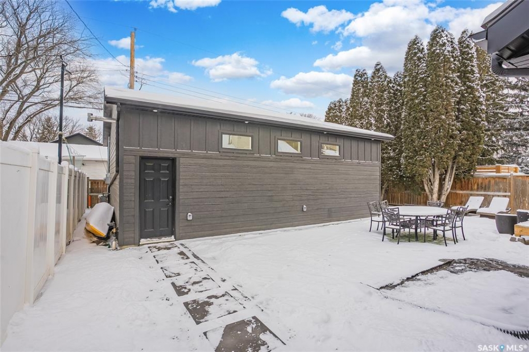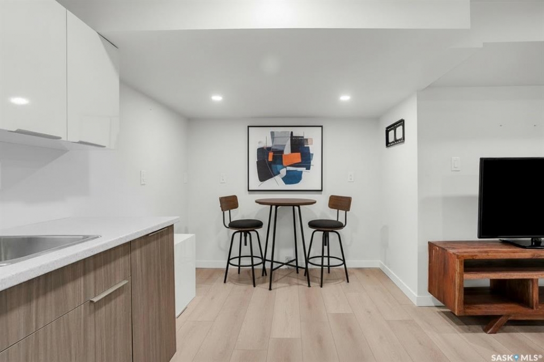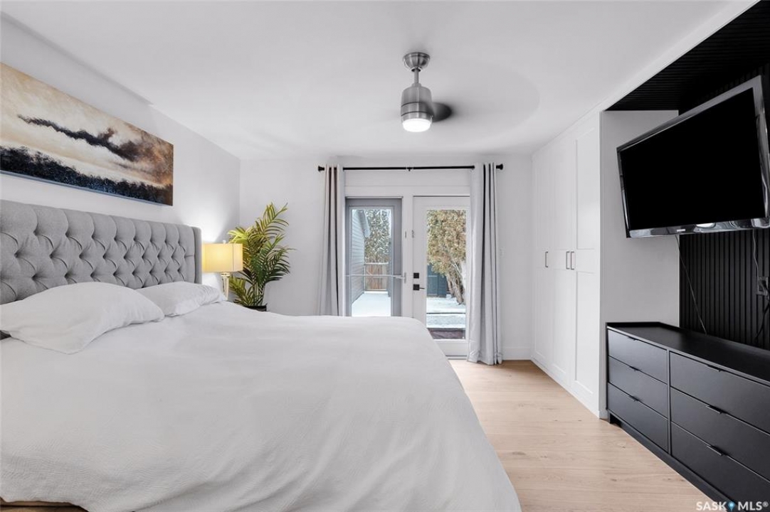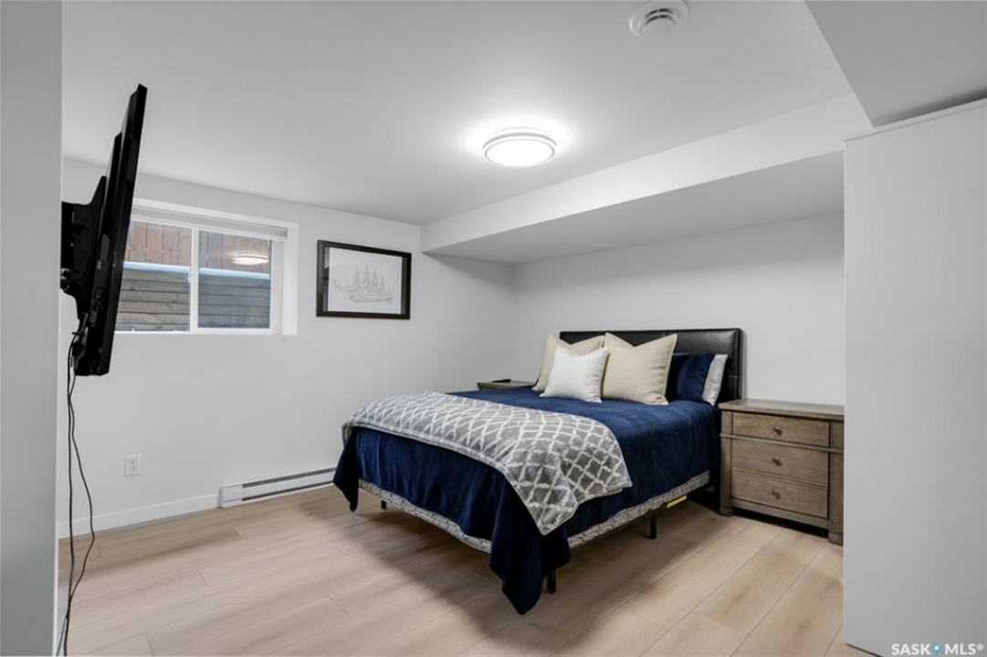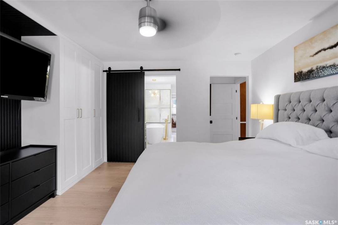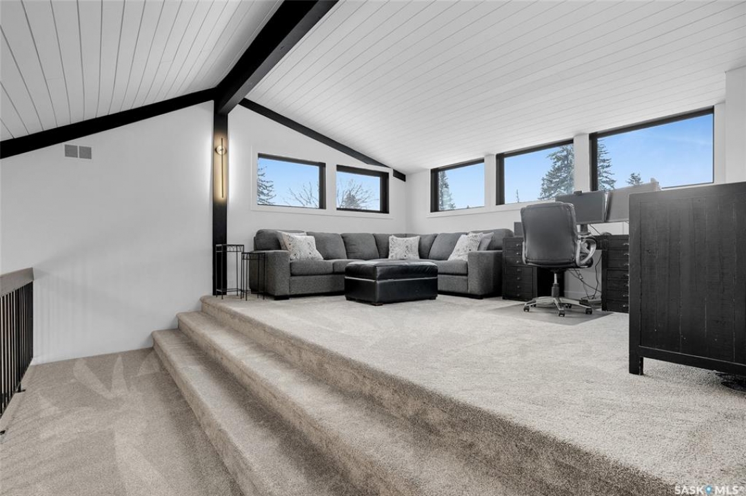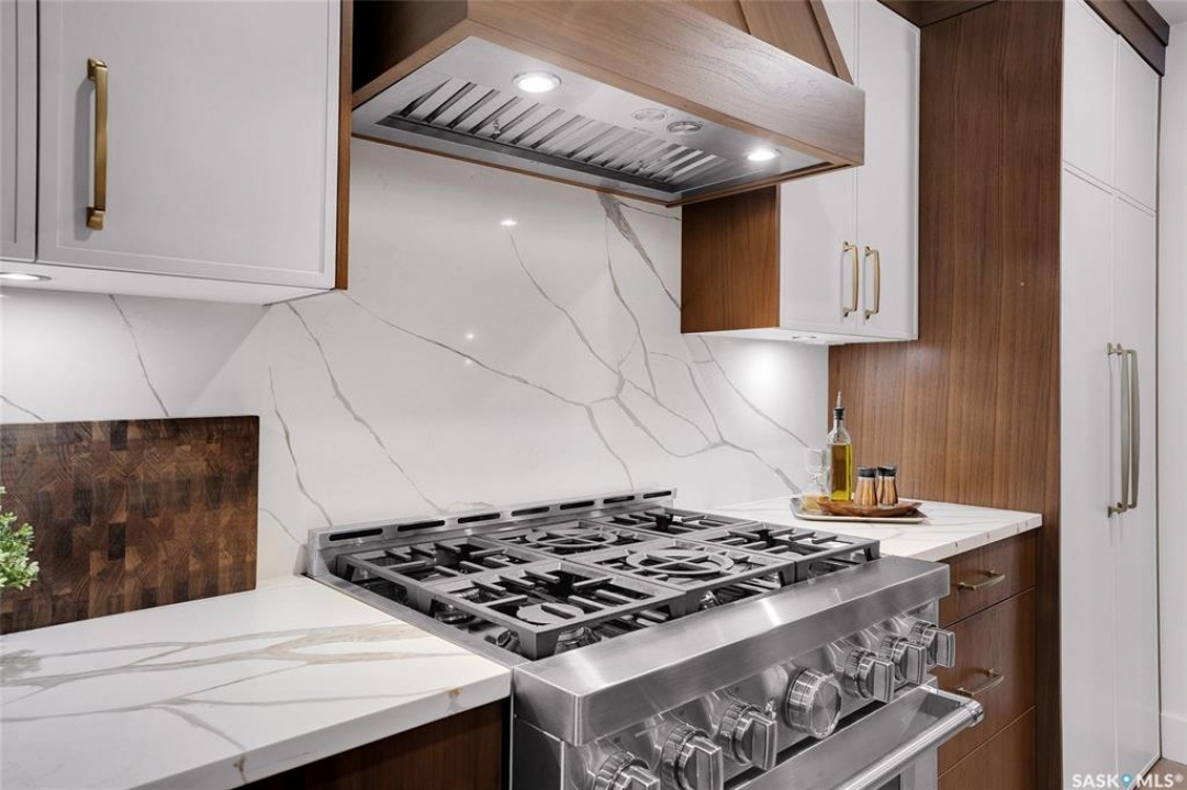 Once a whimsical 1953 Varsity View bungalow with a 1981 loft, this home is now a fully reimagined executive contemporary retreat designed for a very specific buyer. Every inch has been transformed into a sophisticated residence where craftsmanship, comfort, and luxury converge—With one executive primary bedroom on the main -ideal for empty nesters, professionals without young children, or investors seeking strong rental income in the sought after University Area. At its core is the stunning AYA kitchen featuring Cream and Manhattan Rye Walnut cabinetry, quartz surfaces, integrated lighting, LED floating shelf, custom coffee bar and hidden Butler's pantry. Warm walnut and soft creams create a timeless palette. The spacious entry flows into a dining room with floor-to-ceiling bay window. Engineered hardwood spans the main floor, with heated tile in the ensuite and basement bath. The family room impresses with vaulted ceilings, brick wood-burning fireplace and open-tread staircase leading to an open-air loft overlooking the space below. The sole above-grade primary bedroom on the main floor, offers a spa-inspired 6-piece ensuite with dual tiled showers, double sinks, soaker tub, in-floor heat and access to a private deck. A custom walk-in closet integrates laundry and office space. The fully developed basement includes a brand-new 2-bedroom legal suite plus a separate third bedroom—ideal for rental income, guests, or extended family. Exterior upgrades include concrete driveway, LP composite siding, patio, artificial turf, walkways, shed, fencing and a secluded deck. Mechanical updates include furnace, water heater, plumbing, electrical and windows in the basement and rear elevation. Set on a 54' x 140' lot, the property also features a vaulted, heated and insulated 28' x 31', 100 Amp, triple garage with forced-air heat and in-floor piping.