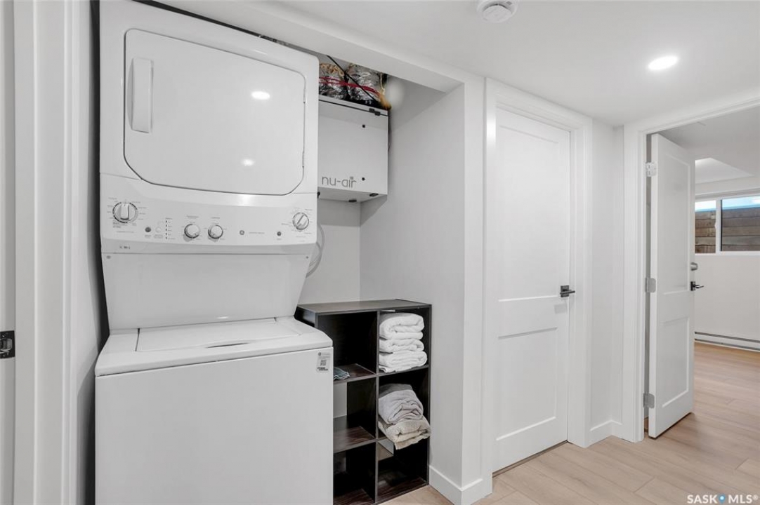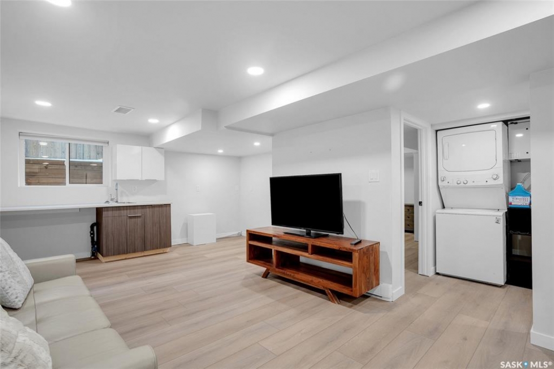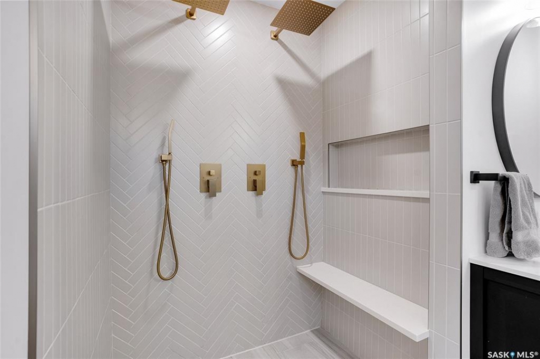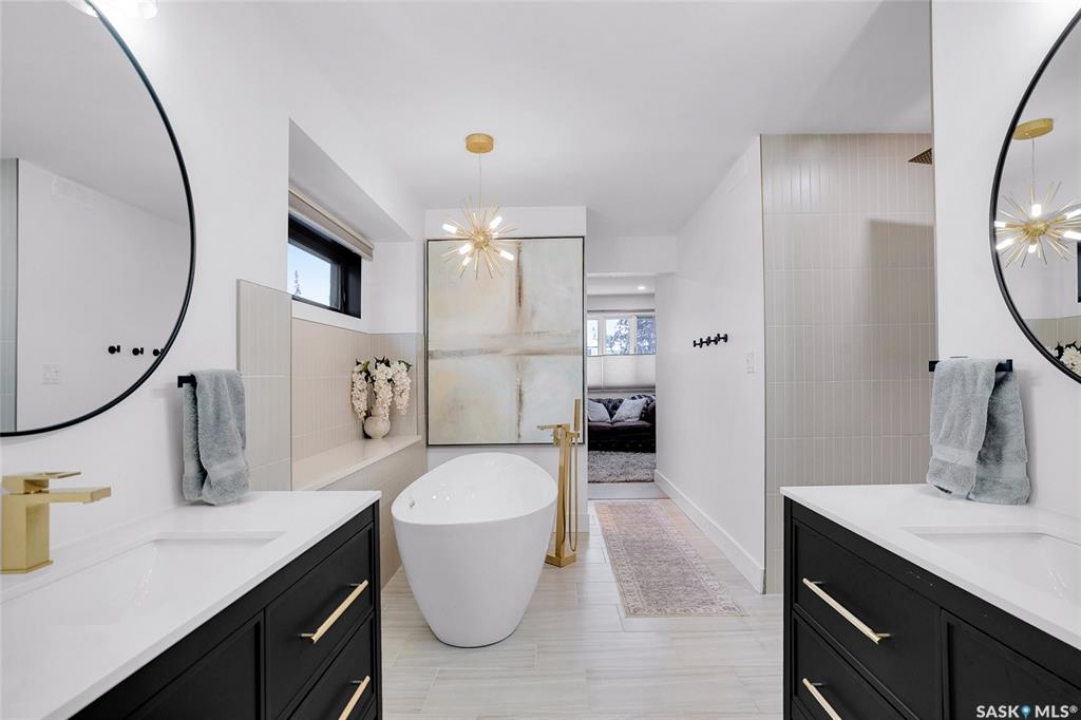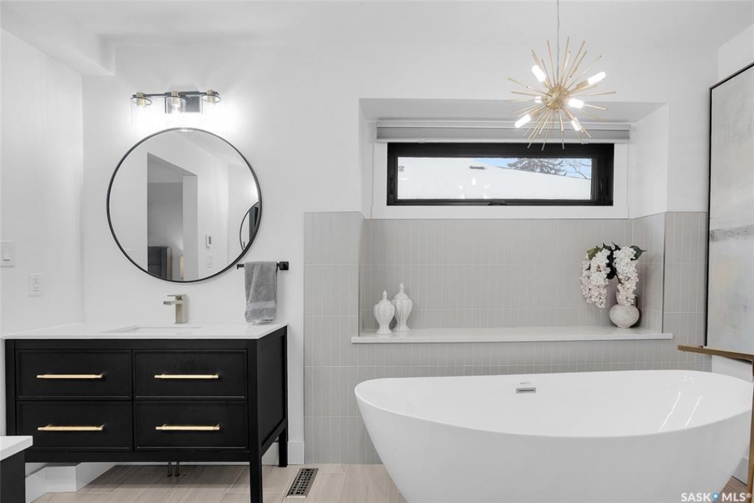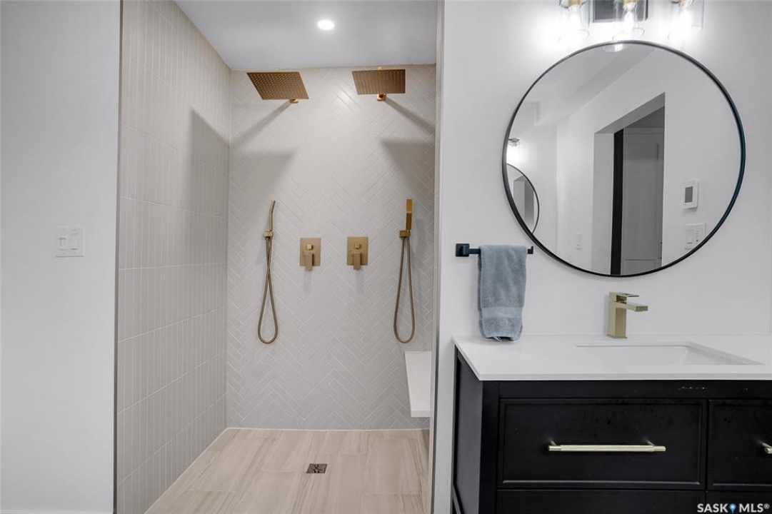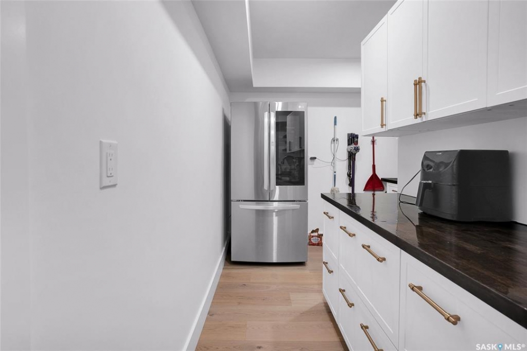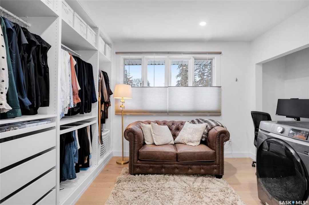 Once a whimsical 1953 Varsity View bungalow with a 1981 loft, this home is now a fully reimagined executive contemporary retreat designed for a very specific buyer. Every inch has been transformed into a sophisticated residence where craftsmanship, comfort, and luxury converge—With one executive primary bedroom on the main -ideal for empty nesters, professionals without young children, or investors seeking strong rental income in the sought after University Area. At its core is the stunning AYA kitchen featuring Cream and Manhattan Rye Walnut cabinetry, quartz surfaces, integrated lighting, LED floating shelf, custom coffee bar and hidden Butler's pantry. Warm walnut and soft creams create a timeless palette. The spacious entry flows into a dining room with floor-to-ceiling bay window. Engineered hardwood spans the main floor, with heated tile in the ensuite and basement bath. The family room impresses with vaulted ceilings, brick wood-burning fireplace and open-tread staircase leading to an open-air loft overlooking the space below. The sole above-grade primary bedroom on the main floor, offers a spa-inspired 6-piece ensuite with dual tiled showers, double sinks, soaker tub, in-floor heat and access to a private deck. A custom walk-in closet integrates laundry and office space. The fully developed basement includes a brand-new 2-bedroom legal suite plus a separate third bedroom—ideal for rental income, guests, or extended family. Exterior upgrades include concrete driveway, LP composite siding, patio, artificial turf, walkways, shed, fencing and a secluded deck. Mechanical updates include furnace, water heater, plumbing, electrical and windows in the basement and rear elevation. Set on a 54' x 140' lot, the property also features a vaulted, heated and insulated 28' x 31', 100 Amp, triple garage with forced-air heat and in-floor piping.