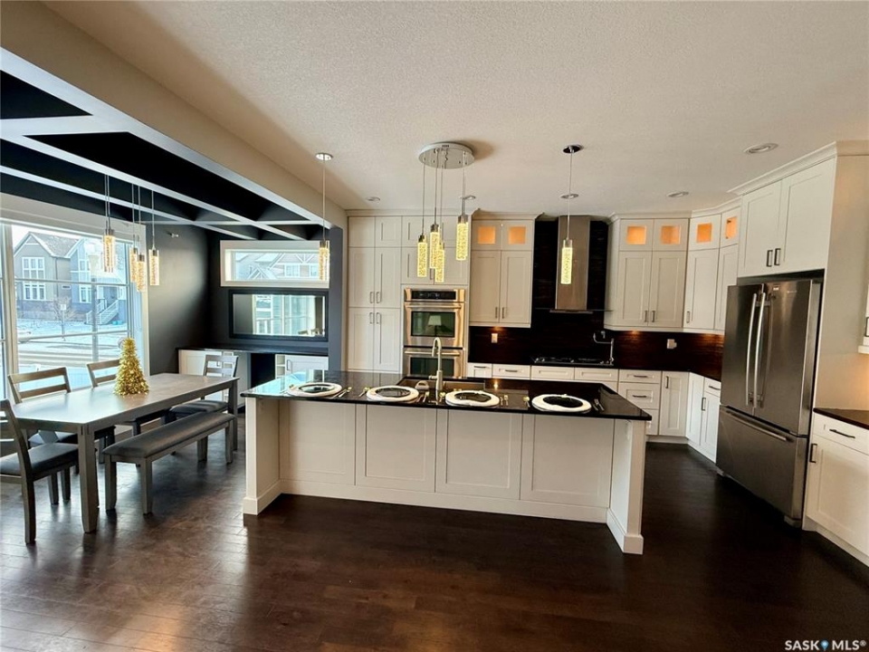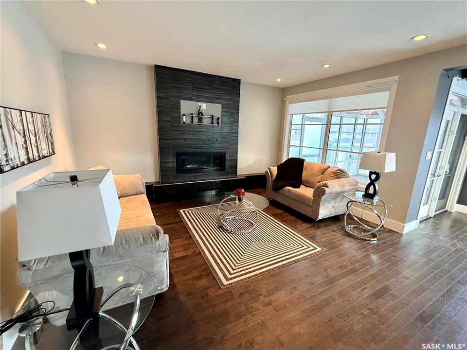 Beautiful 4-Bedroom Home with Pool in Greens on Gardiner Welcome to this stunning 2-storey home in desirable Greens on Gardiner, just steps from the park. Built in 2012, this property offers 4 bedrooms, 4 bathrooms, and 2292 sq. ft. Plus a fully finished basement. The main floor boasts an open layout with high-end finishes, a spacious living room with fireplace, dining area, and a chef-inspired kitchen featuring custom cabinetry, large island, and premium appliances. Large foyer, 2 piece bath and boot room with main floor laundry. Upstairs you'll find 3 bedrooms including a luxurious primary suite with walk-in closet and spa-like ensuite, plus bonus room with gas fireplace and wood beams. The fully developed basement includes a large rec room with custom bar, an additional bedroom, bathroom, and ample storage. Step outside to your private backyard oasis complete with a sparkling outdoor pool, patio, sunroom and plenty of space for entertaining. Additional highlights: • Triple attached garage (Insulated and Heated) • High-end finishes throughout • Prime location near parks, schools, and amenities This move-in ready home checks every box and is a rare find in one of Regina's most sought-after neighbourhoods.