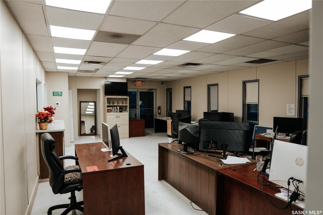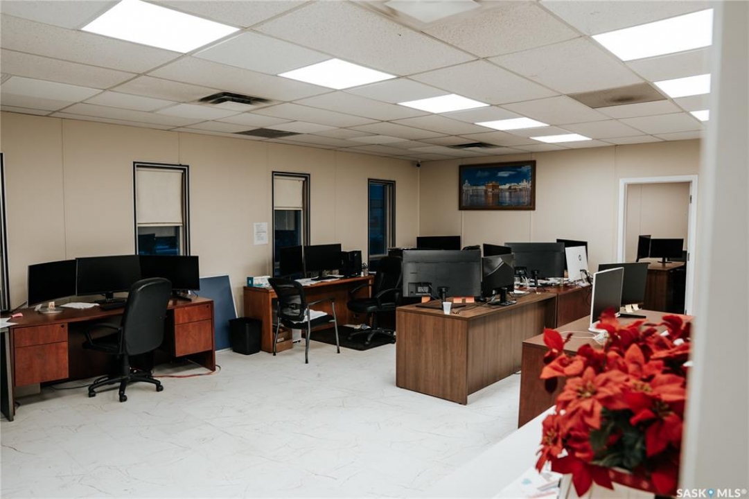 Prime 1.69-Acre Industrial Property with Over 10,000 sq ft Building – East Regina's High-Demand Industrial Corridor. Strategically located on the highly visible corner of Mackay Street and 6th Avenue East, this exceptional industrial/commercial property offers approximately 1.69 acres of fully fenced, level yard paired with a solid building exceeding 10,000 sq ft, constructed circa 1970. Perfectly suited for heavy equipment operators, trucking and logistics firms, warehousing, equipment repair, light manufacturing, or service-based businesses, this move-in-ready site combines immediate operational functionality with strong long-term value. The functional building offers a large open warehouse/shop with 14 ft overhead door, mezzanine for extra storage/workspace, two private front offices, washroom, flexible admin areas and mechanical room with furnace/hot water heater. Layout allows easy conversion to showroom or expanded offices. The secure yard provides ample room for truck/trailer parking, equipment storage, maneuvering and future expansion. Zoned industrial/light commercial (verify uses with City of Regina), the property enjoys rapid access to Ring Road, Highway 1 and all major routes, minutes from suppliers and services in Regina's booming east industrial sector. In a market experiencing robust demand and limited supply of large-yard industrial properties, this rare offering presents an ideal opportunity for an owner-user or an investor seeking stable holding income and future redevelopment upside. The current occupant is prepared to enter into a secure, long-term lease, delivering immediate cash flow for investment buyers.