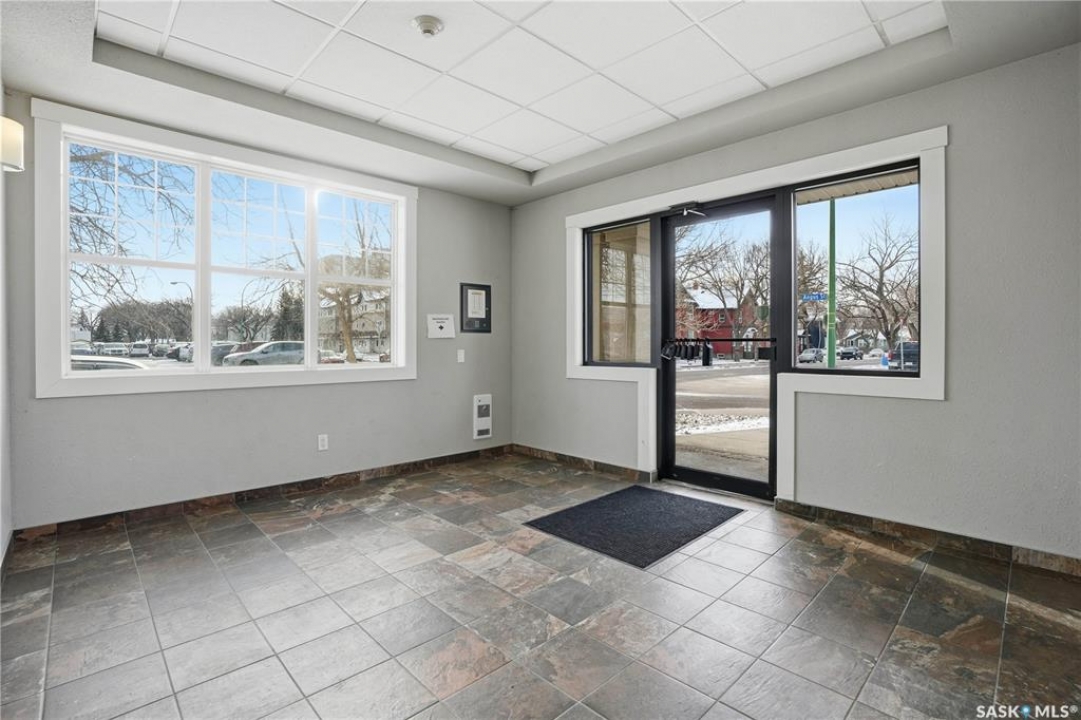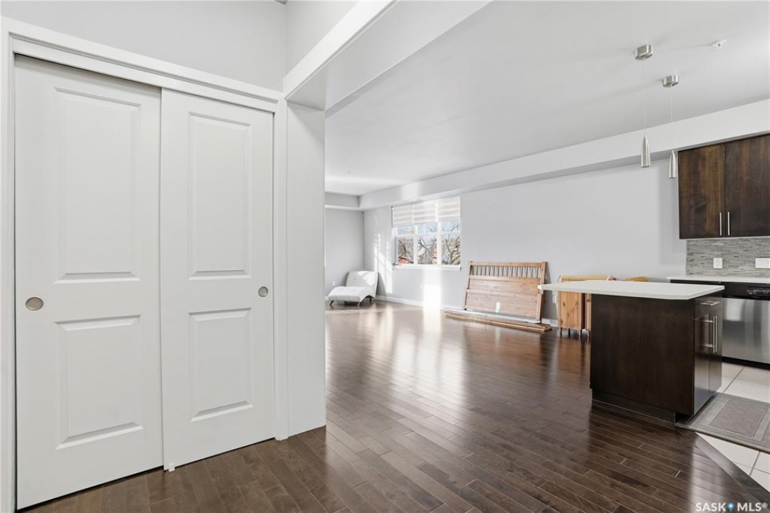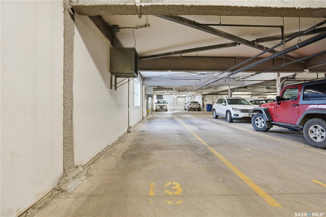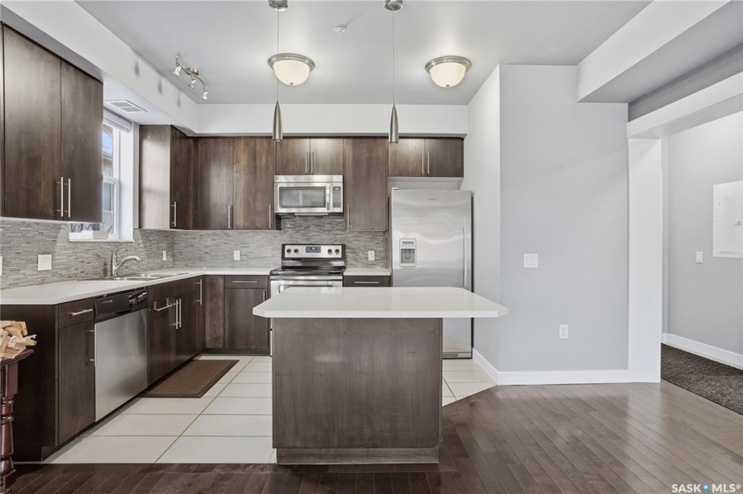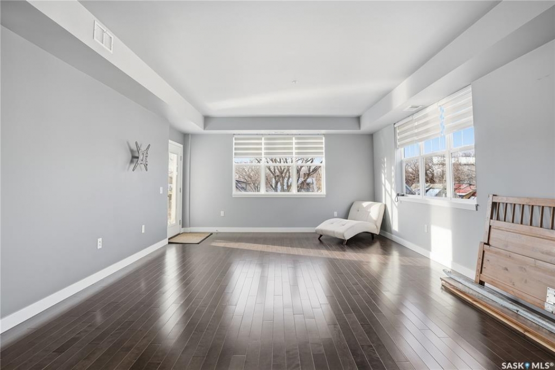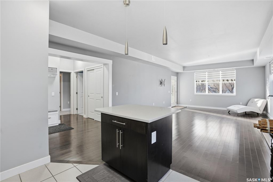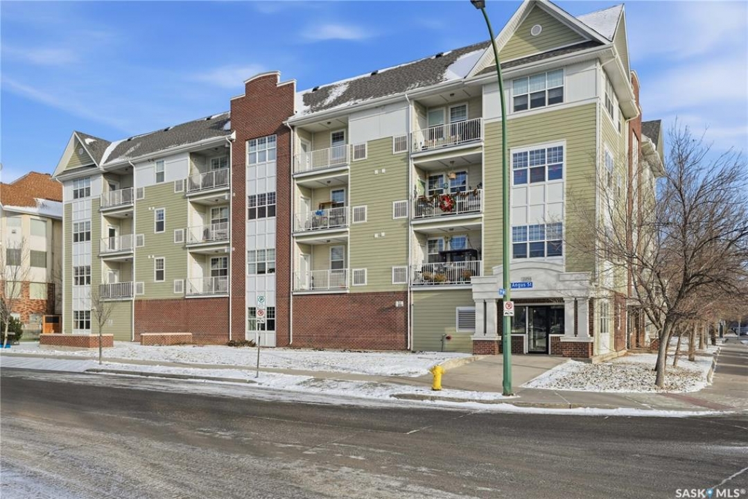 Welcome to 2255 Angus Street #305. Enjoy superb downtown access and condo living lifestyle.The Strathmore provides quiet condo living with secure access and is walking distance to Regina Downtown, Wascana Park, and all the amenities of the Regina Cathedral area. Comes with 2 parking stalls, heated garage parking and one exterior stall. Assigned storage in the parking area. The fabulous corner unit is just over 1100 sq ft and has large windows facing west and north providing tons of natural light. this 2 bedroom 2 bath condo has a large modern kitchen and centre island featuring white quartz countertops and subway tile backsplash, a large open concept with living/dining area two full 4pc bathrooms and 2 large bedrooms. This home has all appliances & window coverings included, tile & hardwood throughout w/ carpet in the bedrooms. The building condo fees include water, (soft water) garbage, sewer, insurance (common), maintenance, snow removal & reserve fund. Recent upgrades include newer paint thru out, professionally cleaned, including dryer vent, furnace/AC ducting in 2024. New toilet installed in main bathroom.