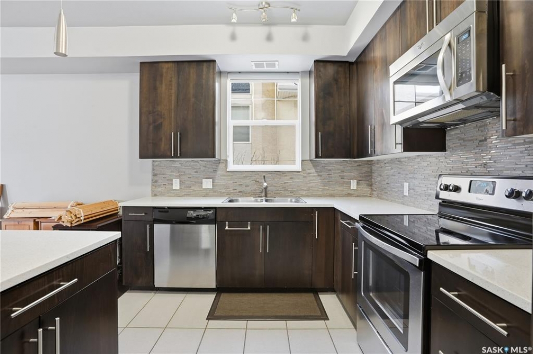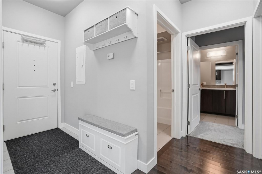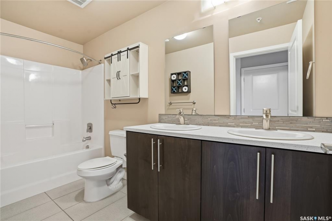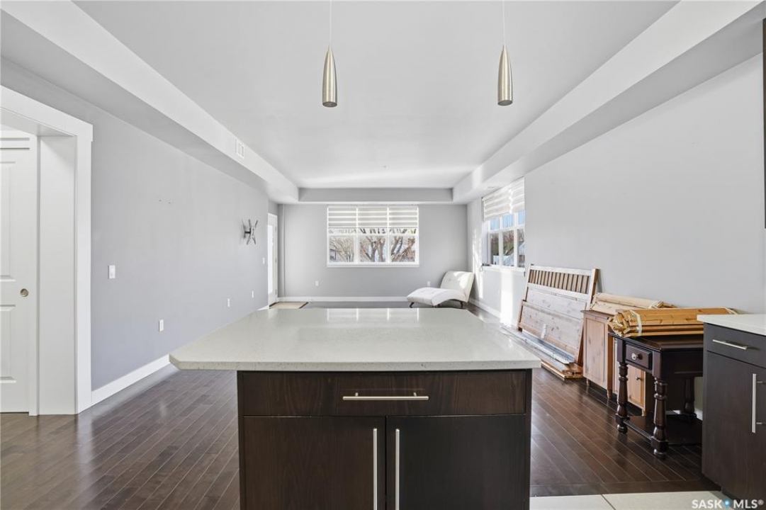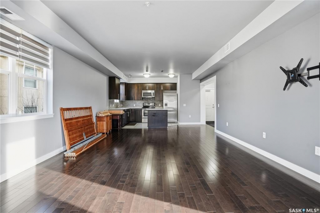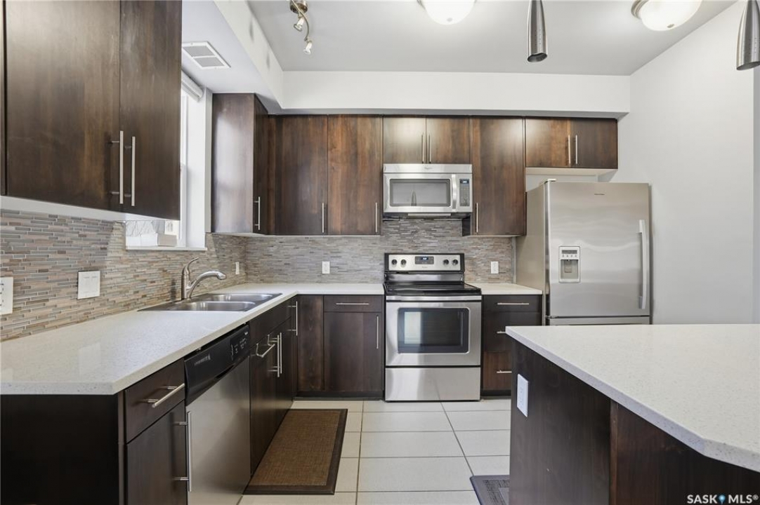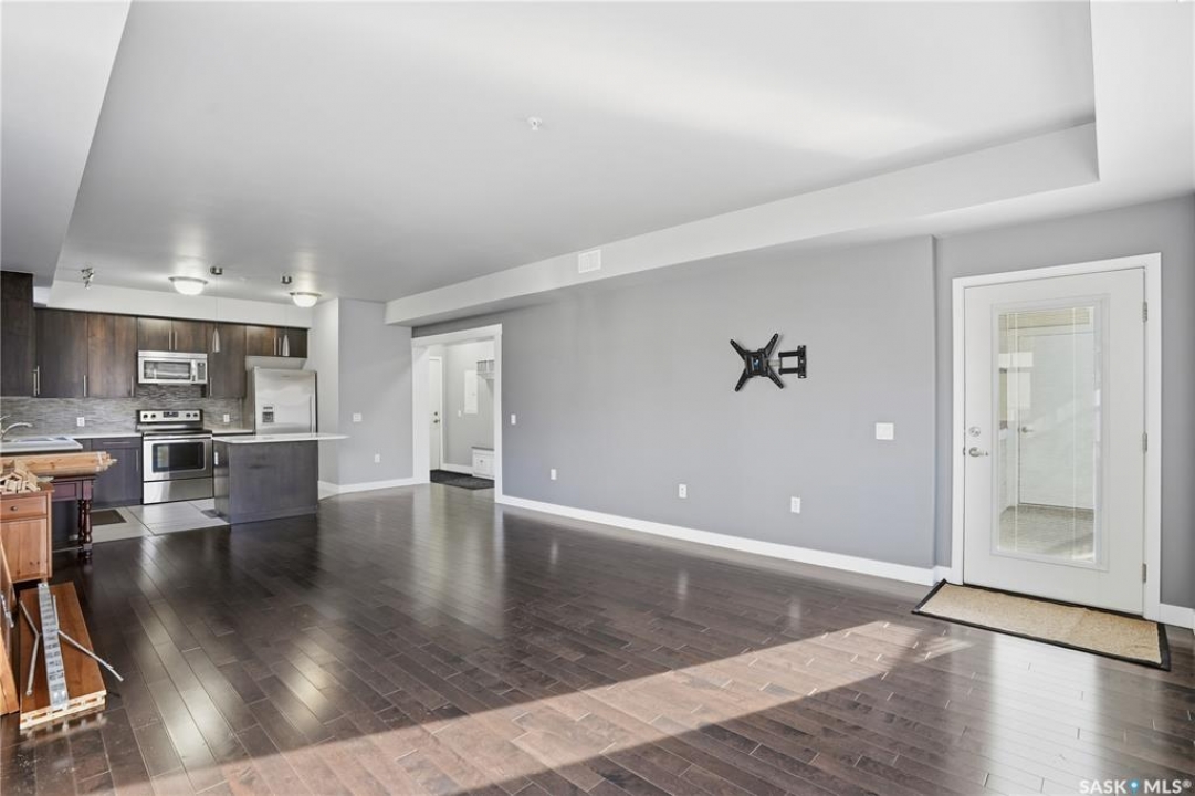 Welcome to 2255 Angus Street #305. Enjoy superb downtown access and condo living lifestyle.The Strathmore provides quiet condo living with secure access and is walking distance to Regina Downtown, Wascana Park, and all the amenities of the Regina Cathedral area. Comes with 2 parking stalls, heated garage parking and one exterior stall. Assigned storage in the parking area. The fabulous corner unit is just over 1100 sq ft and has large windows facing west and north providing tons of natural light. this 2 bedroom 2 bath condo has a large modern kitchen and centre island featuring white quartz countertops and subway tile backsplash, a large open concept with living/dining area two full 4pc bathrooms and 2 large bedrooms. This home has all appliances & window coverings included, tile & hardwood throughout w/ carpet in the bedrooms. The building condo fees include water, (soft water) garbage, sewer, insurance (common), maintenance, snow removal & reserve fund. Recent upgrades include newer paint thru out, professionally cleaned, including dryer vent, furnace/AC ducting in 2024. New toilet installed in main bathroom.