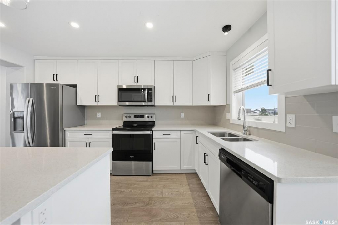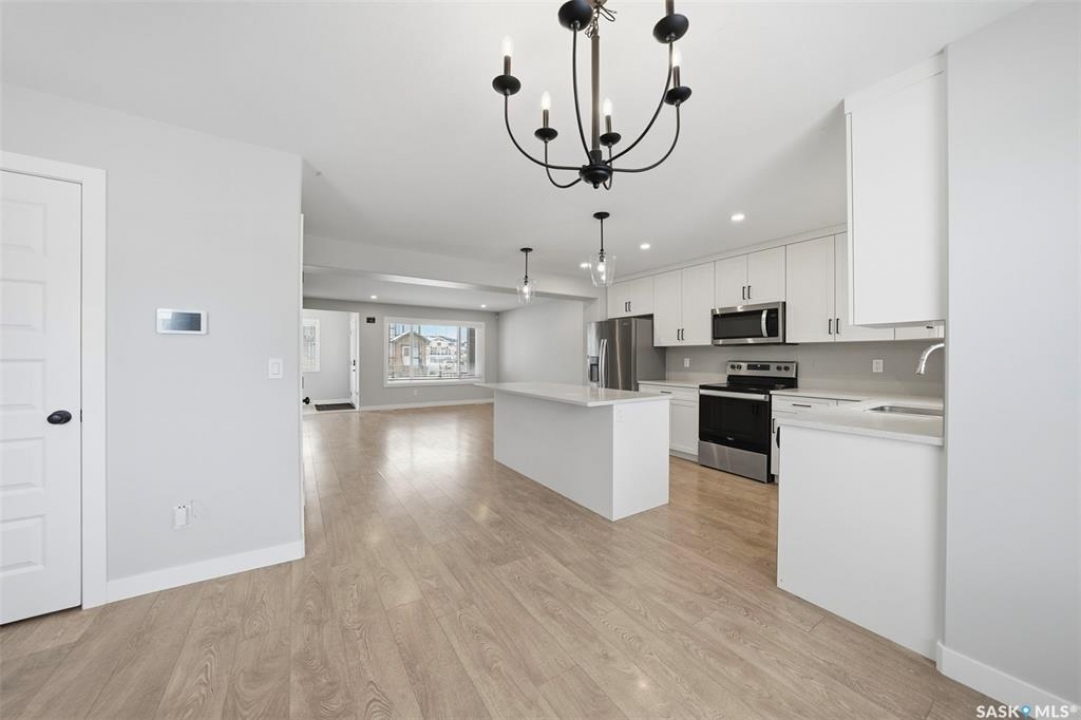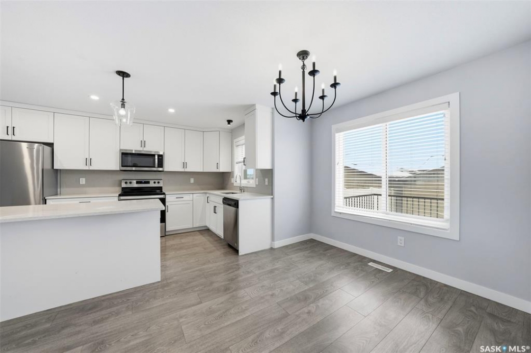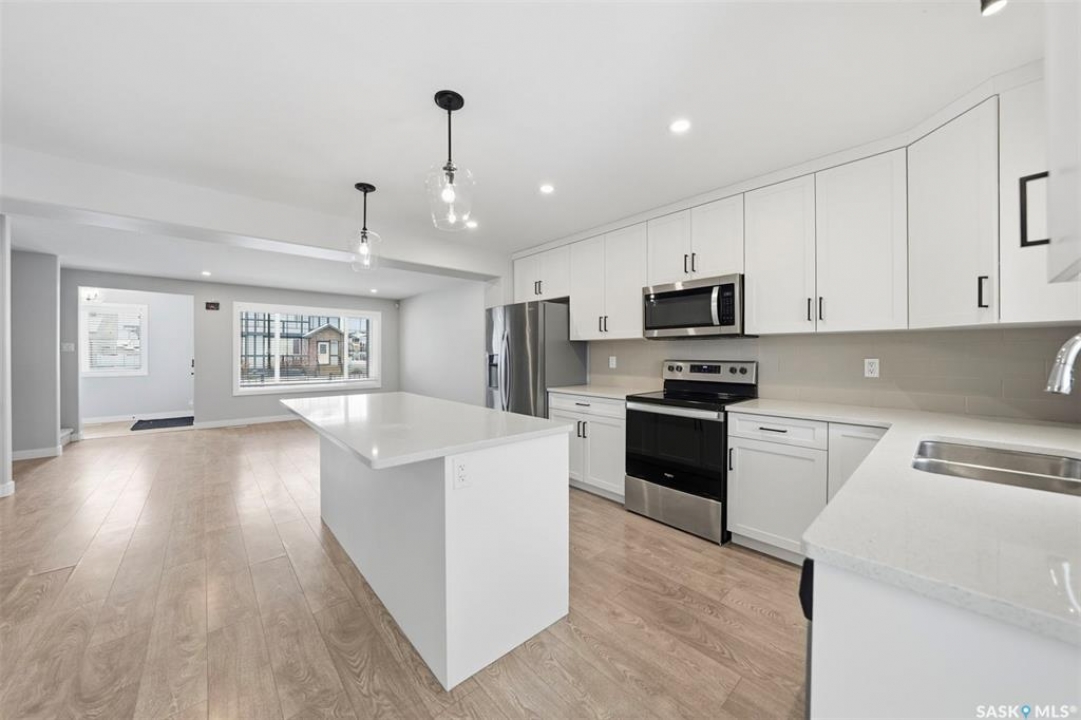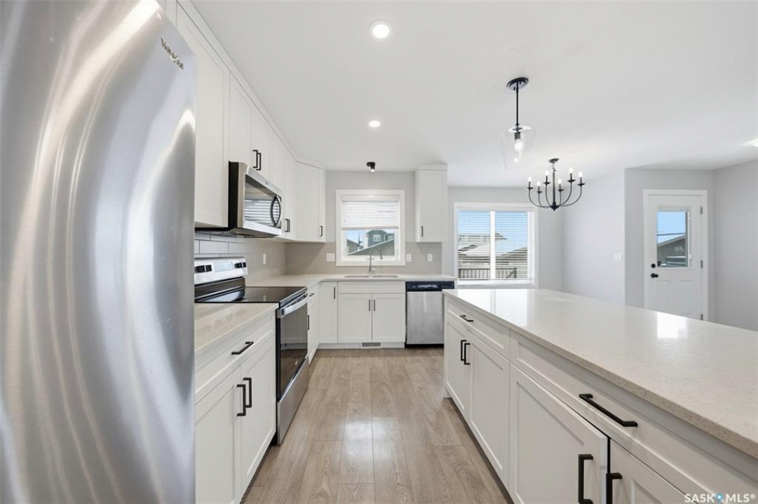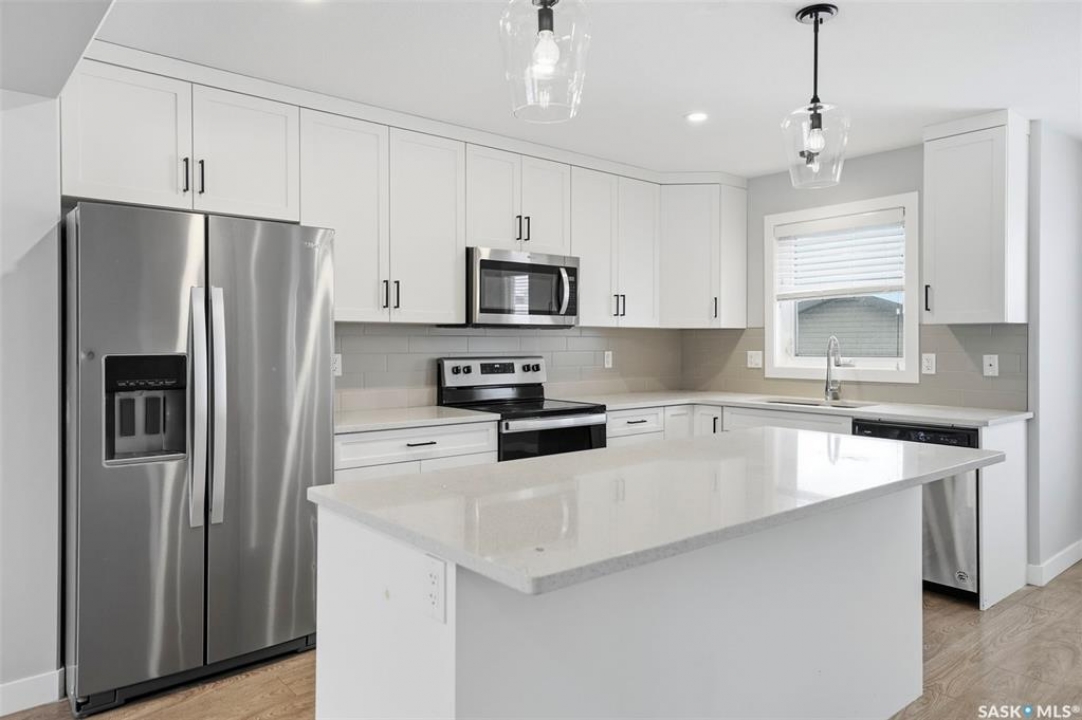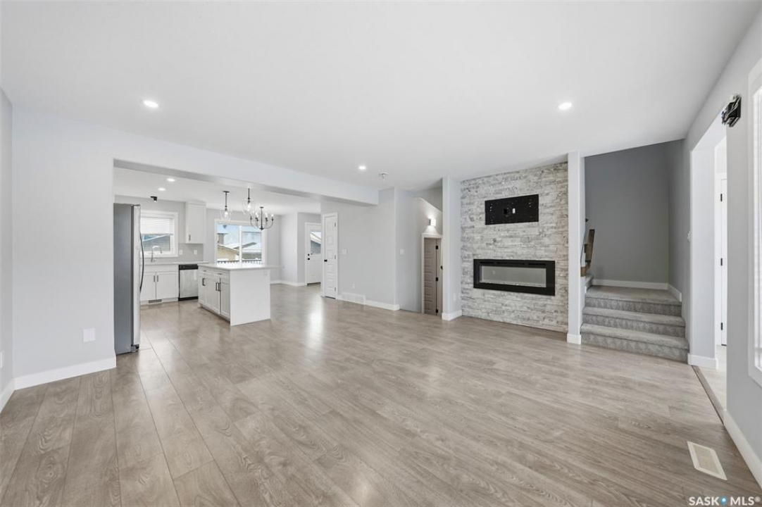 Welcome to this beautifully maintained two-storey in Brighton, offering 1,470 sq. ft. above grade plus a fully developed basement completed with city permits. The main floor features an inviting open concept with quartz countertops, custom cabinetry, modern fixtures, and a sit-up island that's perfect for family gatherings. Oversized windows fill the living room with natural light, while the electric stone fireplace creates a cozy focal point. Upstairs, three spacious bedrooms provide comfort and flexibility, including a primary suite with vaulted ceilings, walk-in closet, and a 4-piece ensuite. A convenient second-floor laundry adds everyday ease. The basement expands your living options with a large bedroom, open area, kitchenette, full bathroom, and a second washer and dryer, ideal for extended family or income potential. Outside, enjoy landscaped front and back yards, a welcoming porch, private deck and patio, and a double detached garage for winter parking. Stylish, practical, and perfectly located near the Brighton Marketplace, Brighton's parks and amenities, this home is move-in ready and offers exceptional value.
