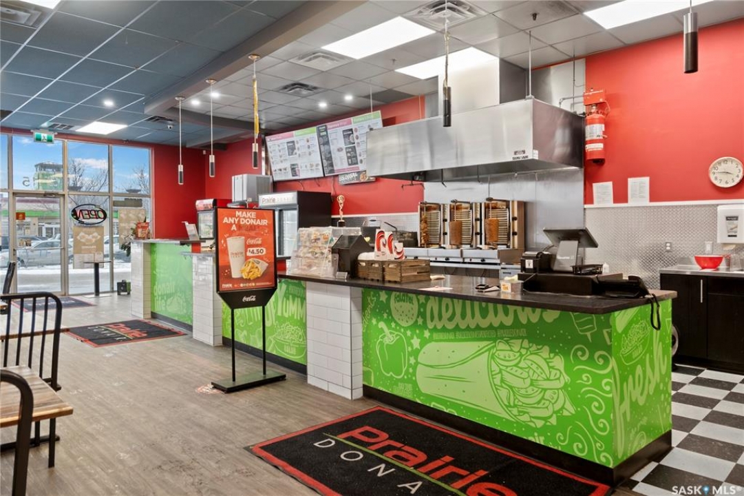 Excellent opportunity to own a well-established and profitable Prairie Donair franchise located in a high-density, high-traffic area on Rochdale Boulevard. This 1,500 sq. ft. operation features a clean, well-maintained interior with seating for dine-in guests as well as efficient take-out service. Positioned in one of Northwest Regina's busiest commercial corridors, the business benefits from strong visibility, consistent foot and vehicle traffic, ample on-site parking, and close proximity to major residential neighbourhoods and amenities. The sale includes all existing equipment, signage, permits, and the tradename—providing a true turnkey setup with a solid foundation and outstanding potential for continued growth. This is a rare opportunity to step into a successful, proven concept in a highly sought-after location. Don't miss your chance to own a profitable, reputable business in a prime, high-demand area.
