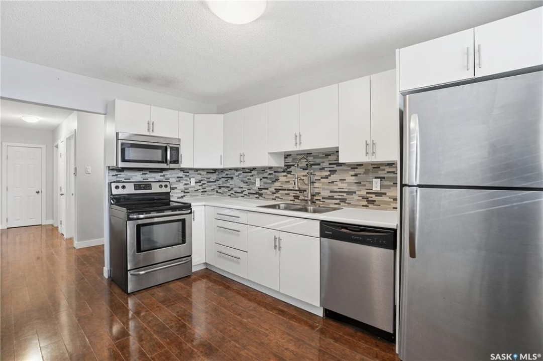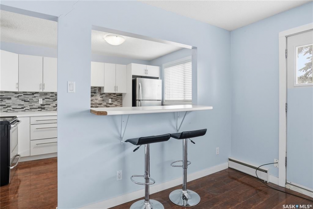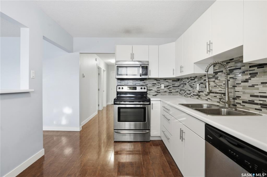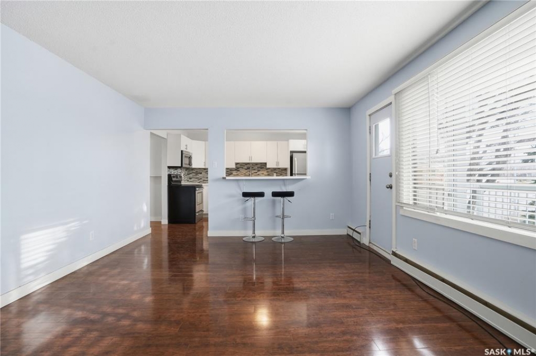 Great location and nice layout. Two good size bedrooms, four piece bathroom with in-suite laundry/storage room. The kitchen has updated white cabinets, eat at island, very functional space with the amount of counter top and location of appliances. Natural light in kitchen and living room. Plus a good size balcony - room for a bbq and bistro set. Laminate flooring throughout, new flooring in bedrooms, ready to move into. The washer/dryer appliances is all in one. In addition there is shared laundry available in the building. An electrified exterior outside parking stall - it's larger as its on the end. Condo fees include water and heat, common area insurance, lawn care, snow removal. Pets area allowed with restrictions. Smaller apartment condo building in a desirable neighbourhood of Arnhem, close to beautiful Wascana Park, walking paths. Easy commute to university and downtown, For more information or a viewing contact your salesperson.