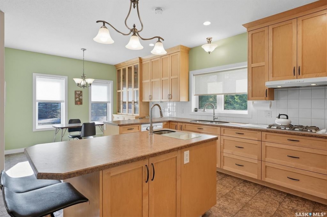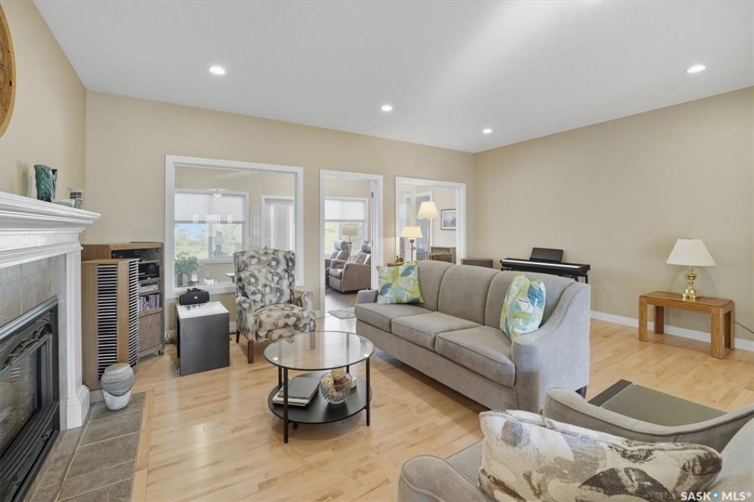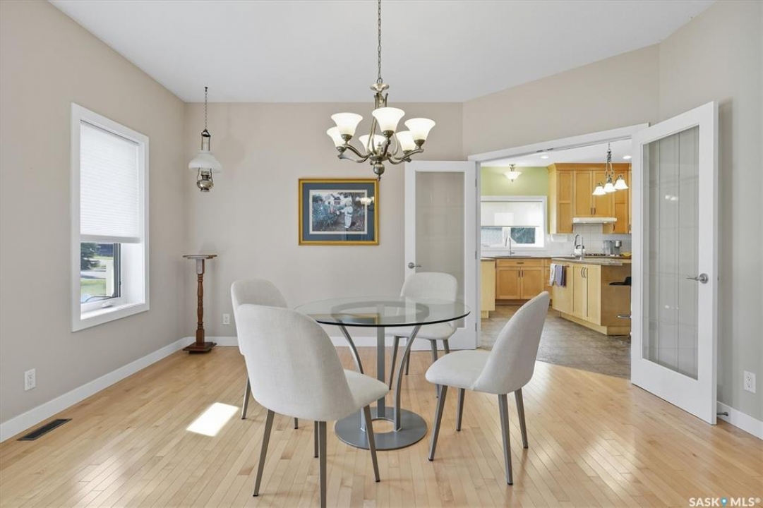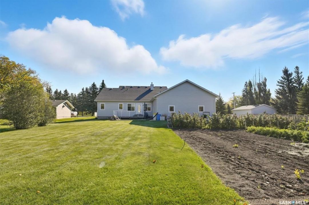 Welcome to Waldheim! A welcoming and well-kept community known for its pride of ownership and small-town hospitality. Residents enjoy a K–12 school, community rink, parks,golf course, medical clinic and fibre internet. Just a 30 minute drive North of Saskatoon, Waldheim offers a peaceful lifestyle with an easy commute to city amenities. Discover this spacious custom-built bungalow, perfectly designed for comfort, functionality, and multi-generational living. Situated on an expansive lot with plenty of room for gardening or outdoor enjoyment, this property offers exceptional value and versatility. Step inside to a bright and inviting main floor featuring a large kitchen with custom maple cabinetry, ample counter space, and a cozy breakfast nook. A formal dining room and generous living room provide excellent spaces for gathering and entertaining. Conveniently located on the main level are the laundry room, a well-appointed primary bedroom featuring double walk-in closets and an ensuite, a second bedroom, and a dedicated office—ideal for working from home or hobbies. Off the back of the home, a charming sunroom overlooks the beautiful backyard, offering the perfect place to relax in any season. The lower level is designed with flexibility in mind, featuring a legal 1-bedroom suite complete with a full kitchen, in-floor heat, and its own laundry hook-up—perfect for extended family or rental income. The basement also includes two additional bedrooms and a large storage room, providing abundant space for everyone. Outside, enjoy both front and back decks, ideal for morning coffee, evening sunsets, or summertime entertaining. The triple attached garage adds convenience, storage, a workspace with a 220V outlet and room for all your vehicles and toys. This exceptional bungalow blends expansive living space, thoughtful design, and income potential—truly a rare find on such a generous lot!