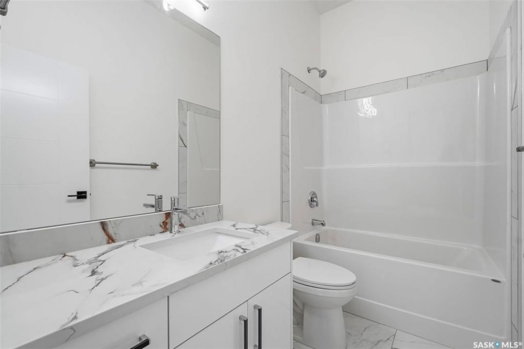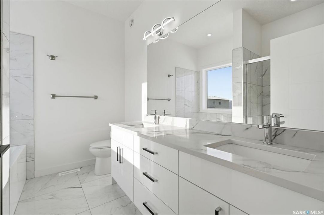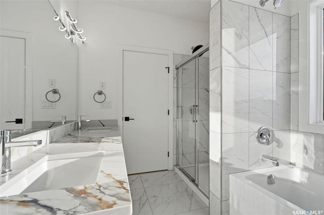 Step inside this modern modified bi-level where sunlight, space, and smart design come together for comfortable family living with valuable mortgage-helper potential. The main floor opens into a bright living area with soaring 10-foot ceilings, luxury vinyl plank flooring, and oversized windows that fill the space with natural light. The kitchen sits slightly tucked away, keeping the main area open while still feeling connected. Two bedrooms, a full bathroom, and deck complete this level—an ideal outdoor extension year-round. Upstairs, the entire top floor becomes your private retreat. The primary suite is wrapped in panoramic windows, creating a calm sanctuary with a walk-in closet and spa-inspired ensuite featuring dual vanities, a tile-surround soaker tub, and standing shower. Downstairs offers exceptional flexibility with 9-foot ceilings. A heated double attached garage adds year-round comfort and can double as a workshop, gym, or office. The efficient mechanical room houses on-demand hot water and smart controls. The lower level features two separate spaces accessed through a shared exterior entry with stackable washer/dryer. The first is a bright flexible room with a 3-pc bathroom, quartz counter with bar sink, full ventilation installed (ready for optional kitchenette), and its own entrance—ideal as extra living space, private office, or non-conforming accommodation. The second is a fully legal 2-bedroom suite with its own furnace (not baseboard), modern finishes, and separate power meter—perfect for extended family or rental income. Additional highlights include triple-glazed windows, central AC, smart thermostat, LED lighting, completed sidewalk entry with retaining wall, security camera wiring with cameras installed before possession, and front landscaping completed by builder when weather allows. Available for immediate possession. Designed for growing households, or buyers seeking smart flexibility and income potential.