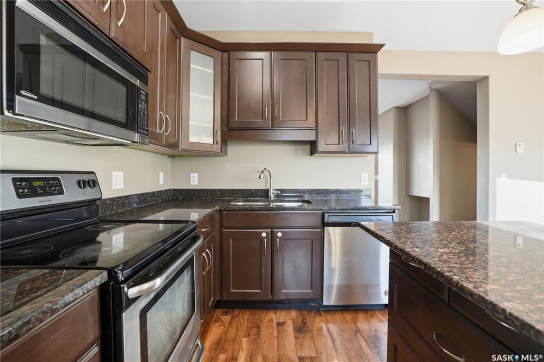 Prime Willowgrove location Riverbend developed 3 bedroom townhouse with a single detached garage at the back. Open floor plan, lots of natural lights, very bright unit. Features 9 ft ceilings on main floor, 1306 sq ft, Kitchen features Stainless steel appliances, maple cabinets with soft close technology, Granite countertops and good sized pantry. Laminate flooring throughout the entire main floor. New paint throughout. 3 large bedrooms on the second level, 4 pc ensuite and a big walk-in closet in the master bedroom. 2nd floor laundry room, custom window blinds, front veranda, covered deck, natural BBQ hook up. Private yard. Single garage plus a parking stall. Basement is unfinished. It has two large windows and could be developed into a large family room, a 4th bedroom and an extra bathroom. This complex is very well managed. Close to all amenities. Walking distance to both Willowgrove elementary schools and High schools. Bus stop is right on the corner and direct route to University of Saskatchewan. Close proximity to Willowgrove & University Heights amenities. This unit is perfect for university students. Call your Realtor to book your private showing today!!!