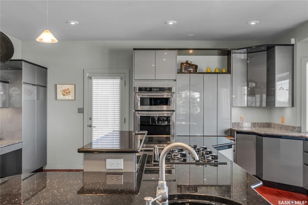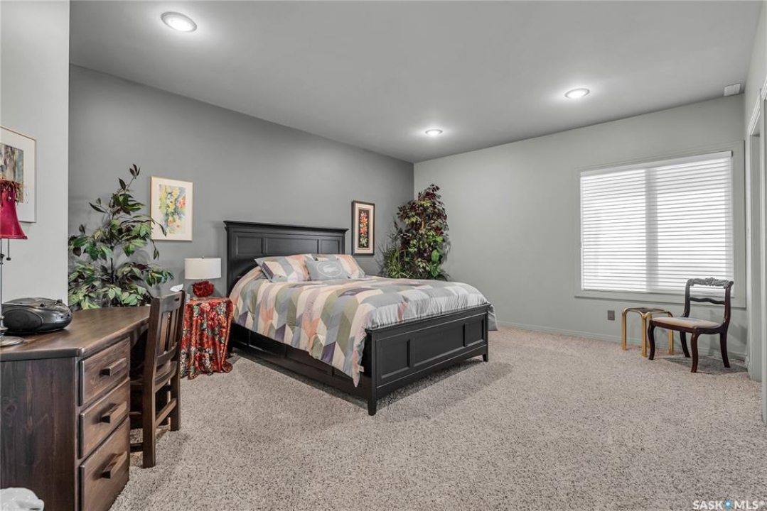 This 3640 sq ft Walkout Bungalow is situated on a 8.8 acre parcel with views of the South Saskatchewan River. With a wonderful location in an active community with rink & play center. Walking into this home, you are welcomed with double-door entry with phantom screens and a spacious foyer leading to an open floor plan with 10 ft ceilings. Great Room features a gas fireplace and custom Redl built-ins, large windows with scenic views. Custom Redl Kitchen is a perfect space with an abundance of cabinets, oversized island with seating, storage, gas cooktop, sink with garburator, granite countertops, baking counter with appliance storage, wall pantry with roll outs, Sub Zero Fridge, built in dishwasher, brand new trash compactor, built-in oven & microwave, coffee bar, dining nook with garden door to composite deck. Formal dining room with a buffet niche. Primary Bedroom is a full retreat with views of the river and access to the deck, gas fireplace with built-ins, dual walk-in closets(1 with stackable washer & dryer), a 4 piece en-suite with in-floor heat, air jet soaker tub, separate shower, dual vanity with granite top & linen closet, sitting area with direct access to basement gym and 3 piece bathroom. Den with a tray ceiling and bayed window.2-piece bathroom with custom stone countertop, laundry room with cabinets, sink, & craft/sewing desk complete the main. Walkout basement features in-floor heat, large family room with 3-way gas fireplace, garden door to covered, partially enclosed patio,games area with wet bar feature seating, fridge,dishwasher & sink. 2 large bedrooms with jack&jill 4- piece bathroom, den/craft room with closet, large mechanical/storage room with wine room. Home is wired for sound system,LED lighting up the driveway, new carpet(2023), new boiler(2023), central vac,4 furnaces & central air, window treatments, & generator for backup power. Attached 8-car heated garage, detached 12-car heated garage/workshop with hoist &cabinets &2-piece bathroom.