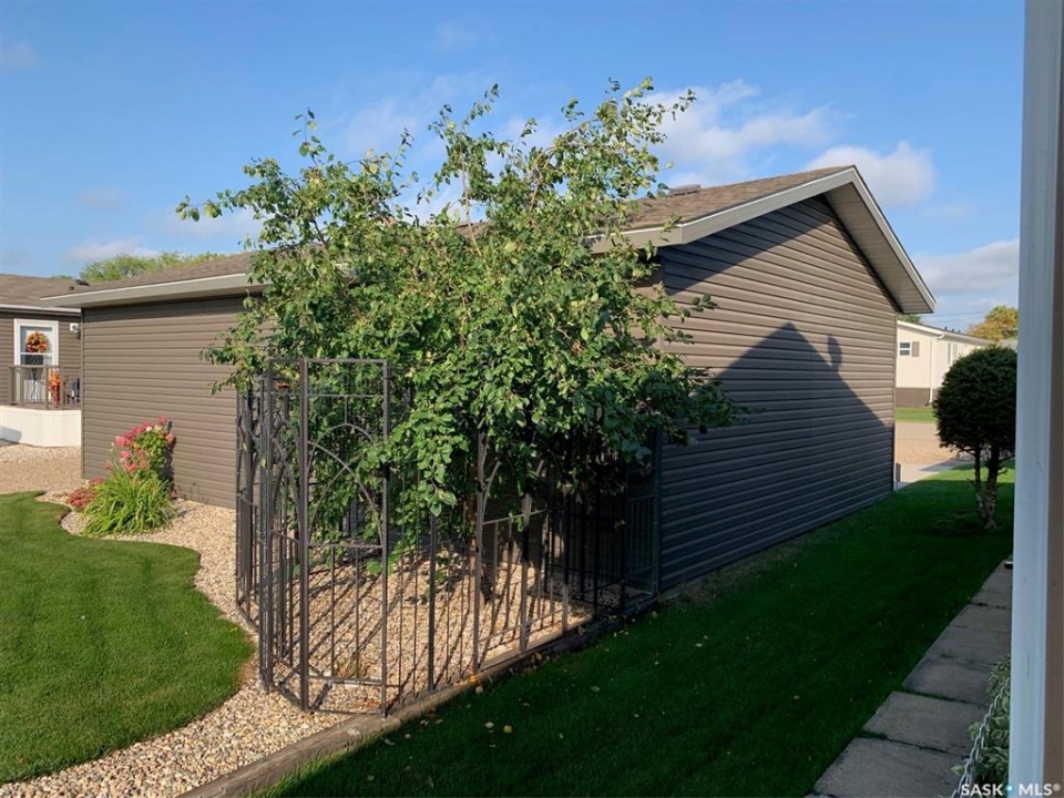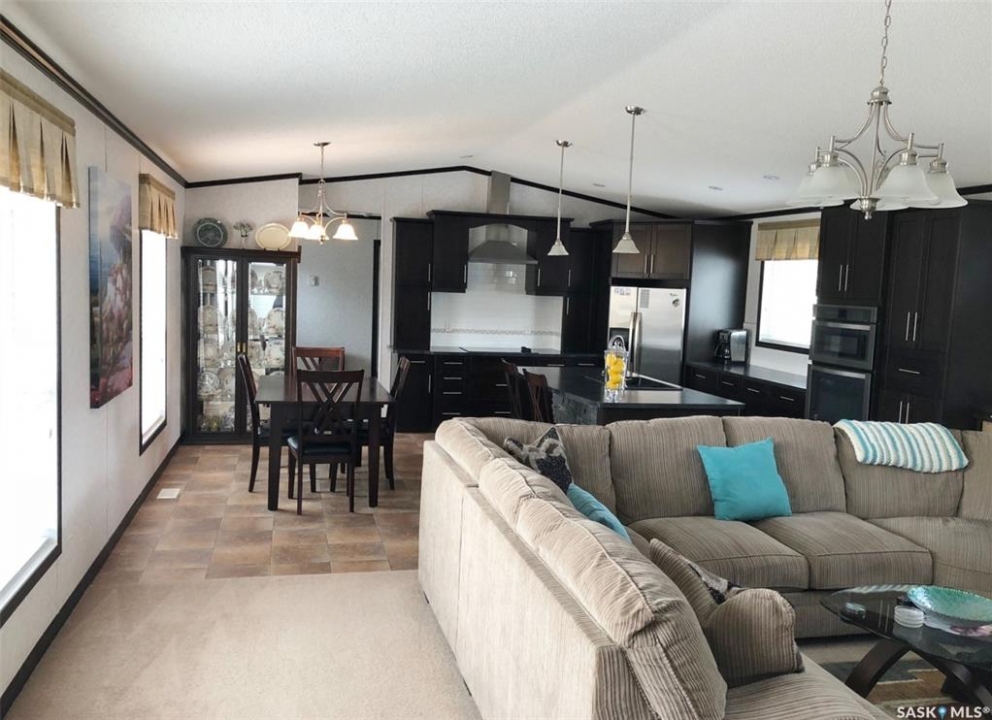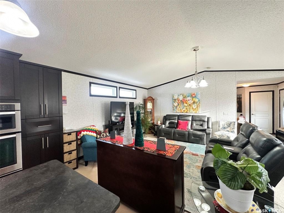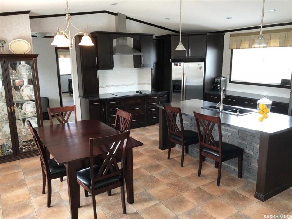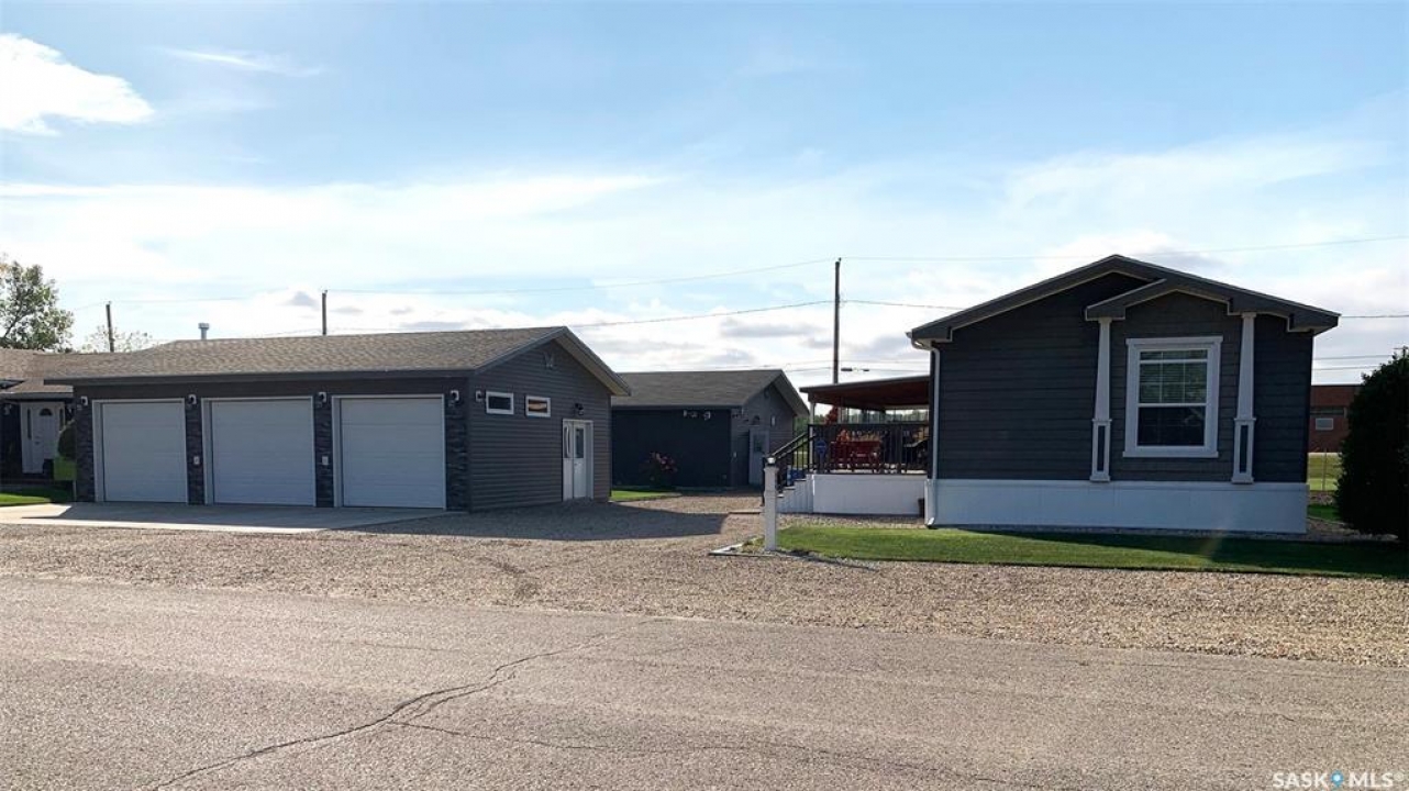 Step into this immaculately maintained modular home offering 3 bedrooms and 2 full baths. The thoughtful floor plan places the master suite on the west end, complete with a 4-piece ensuite featuring a double vanity and walk-in closet. The two additional bedrooms are located on the east end, providing privacy and comfort for the whole family. The heart of the home is its open-concept kitchen, dining, and living area, enhanced by vaulted ceilings and abundant natural light. A garden door off the dining room leads to a spacious south-facing deck, perfect for entertaining or relaxing outdoors. The deck has been enclosed with glass panels(with retractable roll up blinds) that offer privacy, wind break and still allow for the sun and views. Included in the sale is the hottub, and patio furniture. Natural gas bbq and fire pit hook up on the deck. Owners have ensured easy access to under the home, deck and steps. ALL the skirting is insulated. Winterizing has also been done with efficiency in mind. The kitchen is a chef's dream, boasting a large island with sink, built-in dishwasher, and wine fridge. It also features a cooktop and wall oven combination, plus extensive counter space for all your culinary needs. Continuing outside, you'll find a triple-car garage and a 32x36 heated workshop equipped with long cabinet sections. A charming garden shed sits beside the garden space, adding both function and character. Garden space comes complete with electric fence. This turn-key property comes with numerous upgrades, including custom built-ins, modern lighting, and a sleek range hood. Every building and detail has been meticulously cared for, making this home truly move-in ready. Call today to schedule your private showing of this exceptional property!