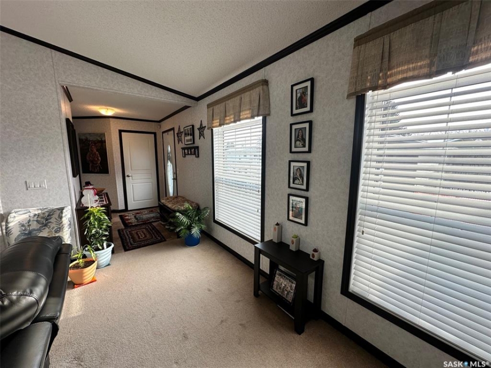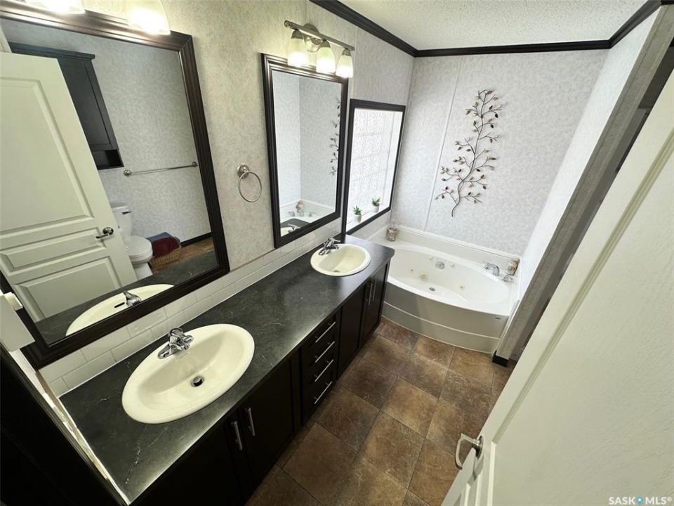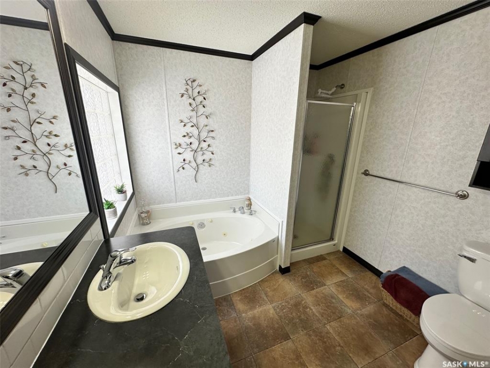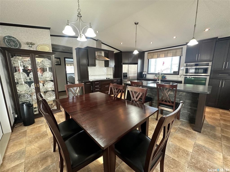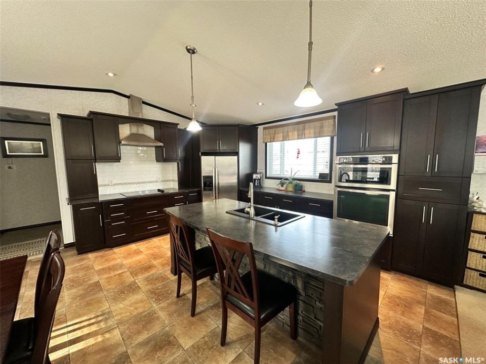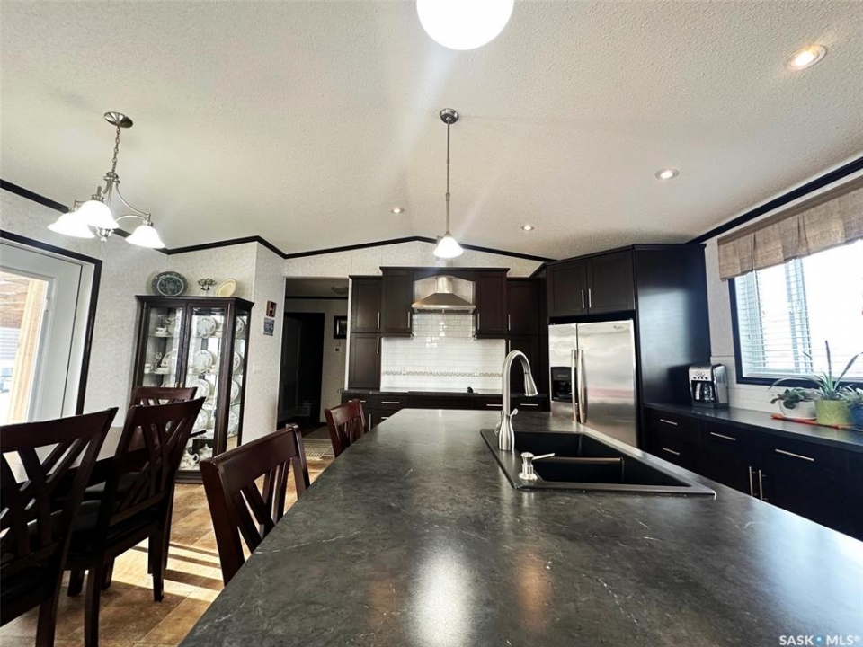 Step into this immaculately maintained modular home offering 3 bedrooms and 2 full baths. The thoughtful floor plan places the master suite on the west end, complete with a 4-piece ensuite featuring a double vanity and walk-in closet. The two additional bedrooms are located on the east end, providing privacy and comfort for the whole family. The heart of the home is its open-concept kitchen, dining, and living area, enhanced by vaulted ceilings and abundant natural light. A garden door off the dining room leads to a spacious south-facing deck, perfect for entertaining or relaxing outdoors. The deck has been enclosed with glass panels(with retractable roll up blinds) that offer privacy, wind break and still allow for the sun and views. Included in the sale is the hottub, and patio furniture. Natural gas bbq and fire pit hook up on the deck. Owners have ensured easy access to under the home, deck and steps. ALL the skirting is insulated. Winterizing has also been done with efficiency in mind. The kitchen is a chef's dream, boasting a large island with sink, built-in dishwasher, and wine fridge. It also features a cooktop and wall oven combination, plus extensive counter space for all your culinary needs. Continuing outside, you'll find a triple-car garage and a 32x36 heated workshop equipped with long cabinet sections. A charming garden shed sits beside the garden space, adding both function and character. Garden space comes complete with electric fence. This turn-key property comes with numerous upgrades, including custom built-ins, modern lighting, and a sleek range hood. Every building and detail has been meticulously cared for, making this home truly move-in ready. Call today to schedule your private showing of this exceptional property!