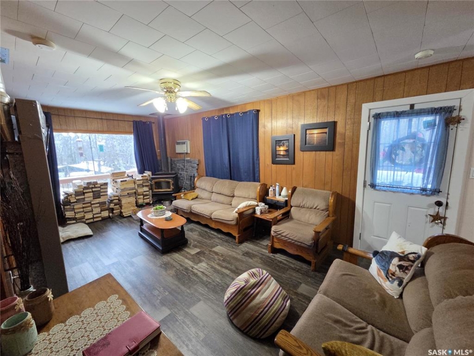 Year-Round Property on White Bear Lake – 697 8th Street - Discover the perfect year-round getaway or full-time residence at 697 8th Street on beautiful White Bear Lake. This well-maintained, fully furnished property is move-in ready and loaded with comfort features, including a natural gas furnace, cozy wood stove, insulated floors and walls, and a convenient wall A/C unit for warm summer days. Enjoy exceptional privacy with a tree-sheltered front yard and a spacious wrap-around deck that's ideal for morning coffee, evening barbecues, or simply relaxing outdoors. The backyard offers even more room to gather, complete with an enclosed screen room, patio, and fire pit area—your own peaceful spot to unwind after a day on the lake. Inside, the cabin features a large, welcoming living room anchored by a cozy wood stove. There are three comfortable bedrooms, a kitchen and dining area, a 3-piece bathroom, and a handy storage space. Recent updates include newer flooring, a durable metal roof, and vinyl siding. The property also features a 1,000-gallon septic tank and a 1,000-gallon cistern. Located in the heart of White Bear Lake, you'll enjoy all the benefits of lake life—boating, fishing, swimming, and spectacular sunsets just moments away. The community also boasts a beautiful golf course, making this the perfect retreat for outdoor enthusiasts. Whether you're looking for a peaceful escape, a family cabin, or a year-round use in the winter, this charming property has everything you need.