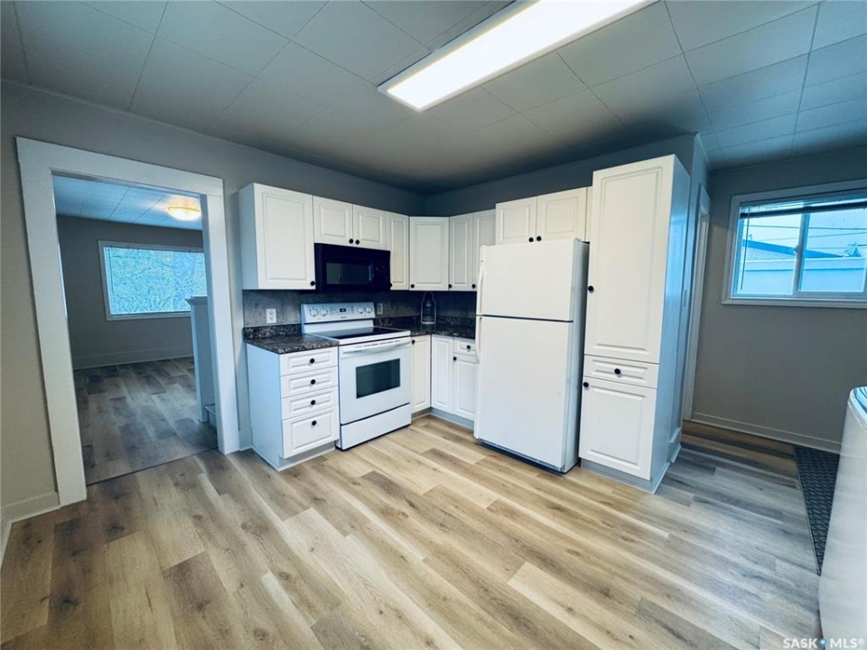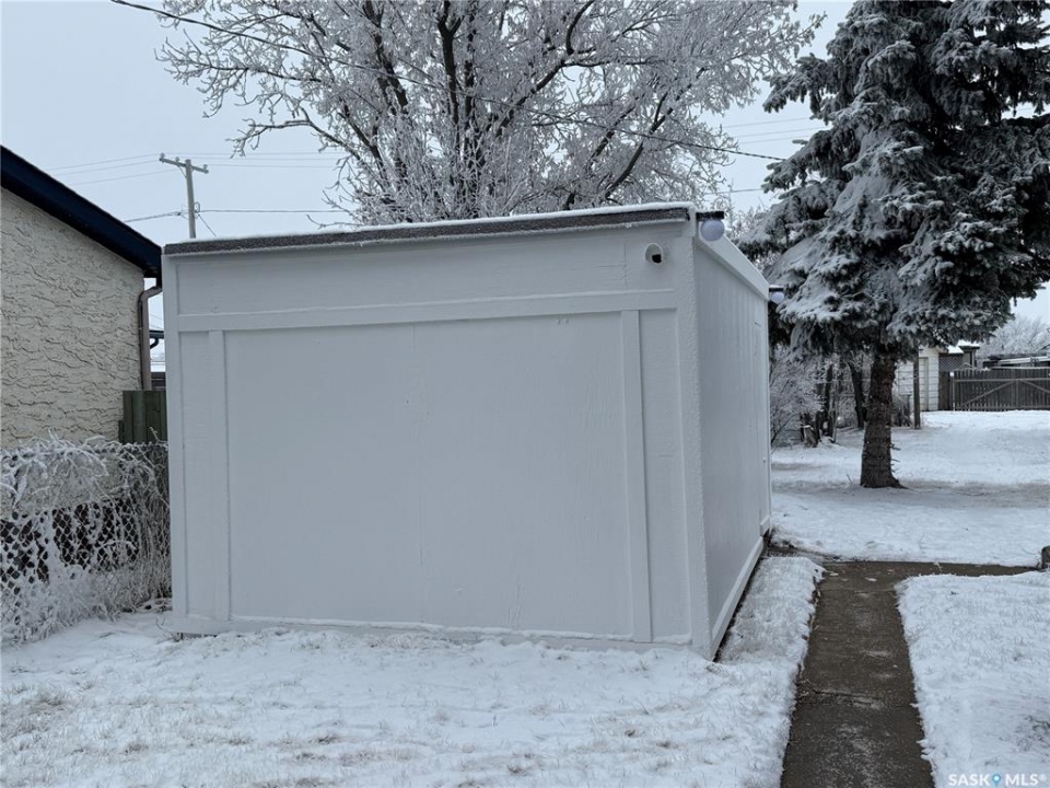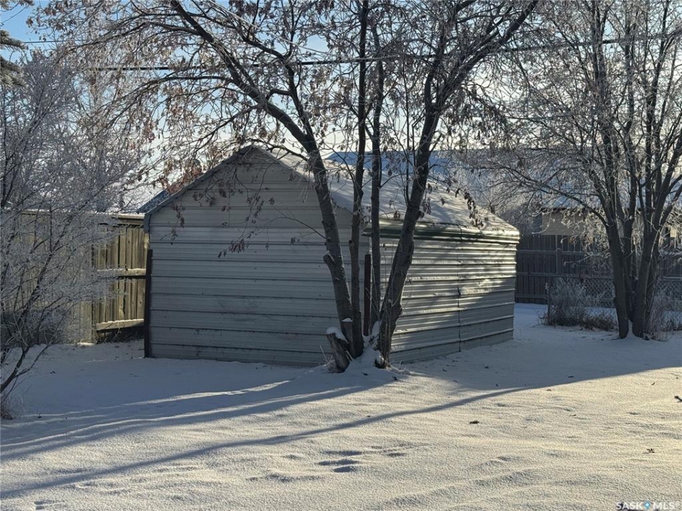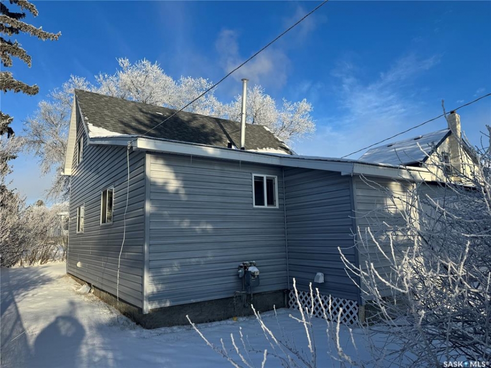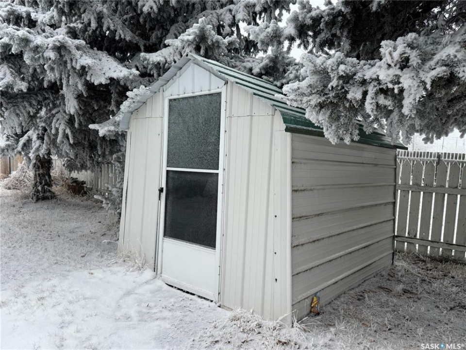 Welcome to this charming 2-bedroom home—well-kept, updated, and ready for you to move right in! Ideally located close to the schools, pool, and rec complex, this property offers everyday convenience in a great community setting. The main floor features a practical layout with a bright kitchen, dining room, cozy family room, and a 3-piece bathroom. You'll also appreciate the convenience of main-floor laundry! Upstairs you'll find two comfortable bedrooms, including one with a generous walk-in closet—an unexpected bonus! The partial basement houses the furnace and water heater, keeping essential utilities out of the way yet easily accessible, and also provides excellent storage space. Sitting on a 50 × 140 ft lot, the yard offers wonderful outdoor space with a canopy of mature trees and a hedge along the front for privacy. Additional outbuildings include a garden shed, a shed/garage at the rear, and a 10 × 16 ft storage building—perfect for tools, toys, and seasonal items. Updates add even more value: windows throughout, vinyl siding, shingles, new flooring, and a fresh coat of paint. All the work is done—just unpack and enjoy!