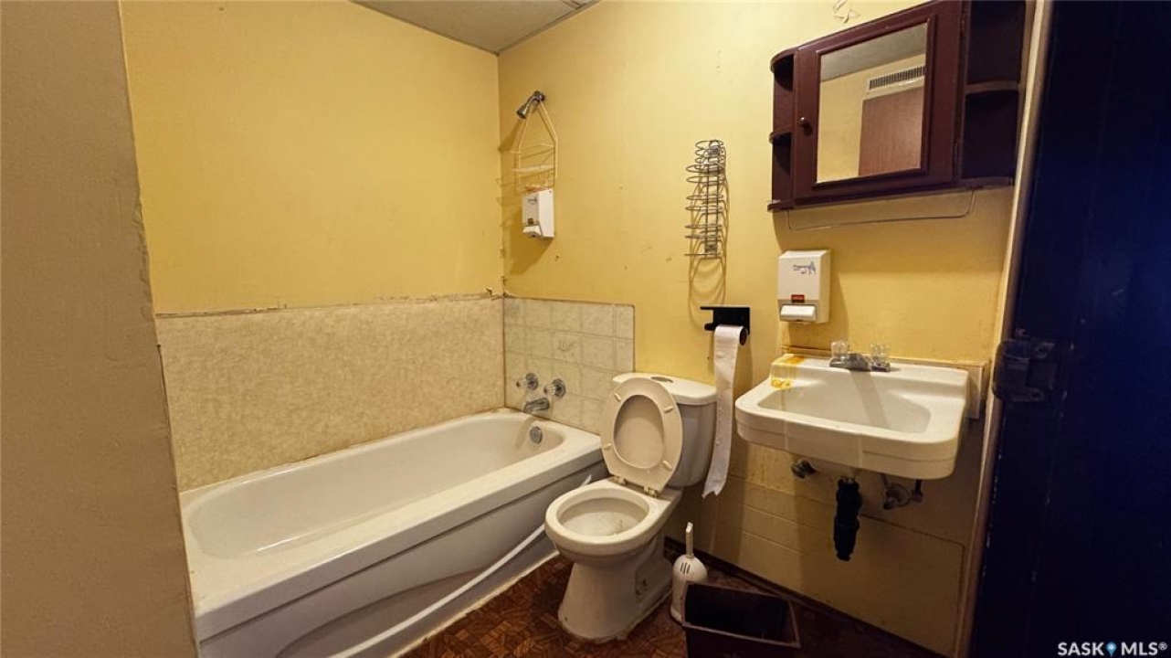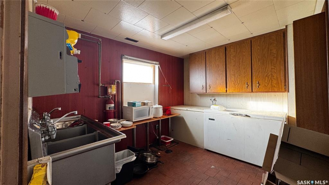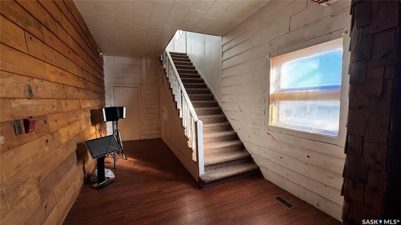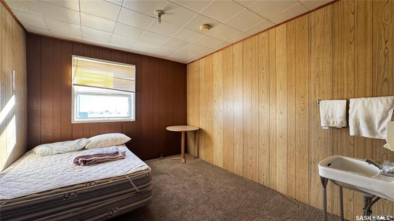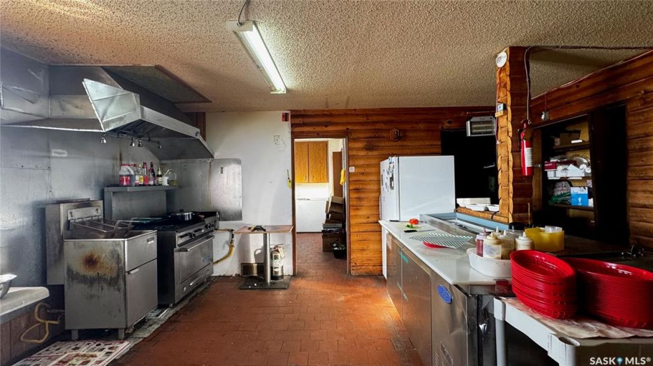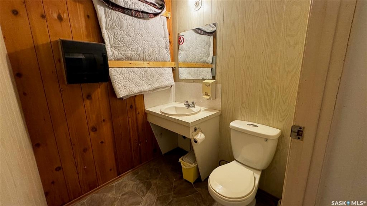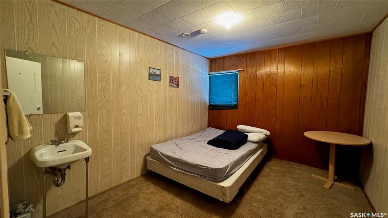 Just 45 minutes from Saskatoon, this exceptional 6000 sq ft, two-storey commercial property in the Town of Hanley offers a rare opportunity to acquire the building, land and a fully operational restaurant-bar business with diverse revenue streams and strong community roots. The main floor features the only Canadian-style restaurant bar in Hanley, equipped with a restaurant liquor permit (minors allowed 11 a.m.–10 p.m.), off-sale liquor permit, tobacco permit, 6 VLTs, 1 ATM, pool table, kickboxing machine, and jukebox, with seating capacity for 100 guests plus an inviting covered outdoor patio. A spacious 18' × 12' walk-in cooler, fully outfitted commercial kitchen, and a 20' × 24' single attached rear garage add to operational efficiency for the owner or manager. The second floor provides extensive accommodation, including one guest suite with kitchen and private bath, five guest rooms with individual sinks, two shared bathrooms with shower stalls, and a storage room. The opposite side of the upper level features an owner's suite, an office, and a versatile flex room suitable as an additional office, guest room, or manager's room. The building is heated by a natural-gas floor-model furnace with forced air and cooled by wall A/C units in select areas. Hanley draws steady traffic with amenities such as a hockey rink, golf course, nearby horse racing, and a regional high school, while the business benefits from loyal patrons, including local residents, sports fans, and families from provincial football and youth hockey leagues. The current owner actively supports local sports and is willing to stay for training, making this a smooth transition for the next operator of this thriving multifaceted establishment.