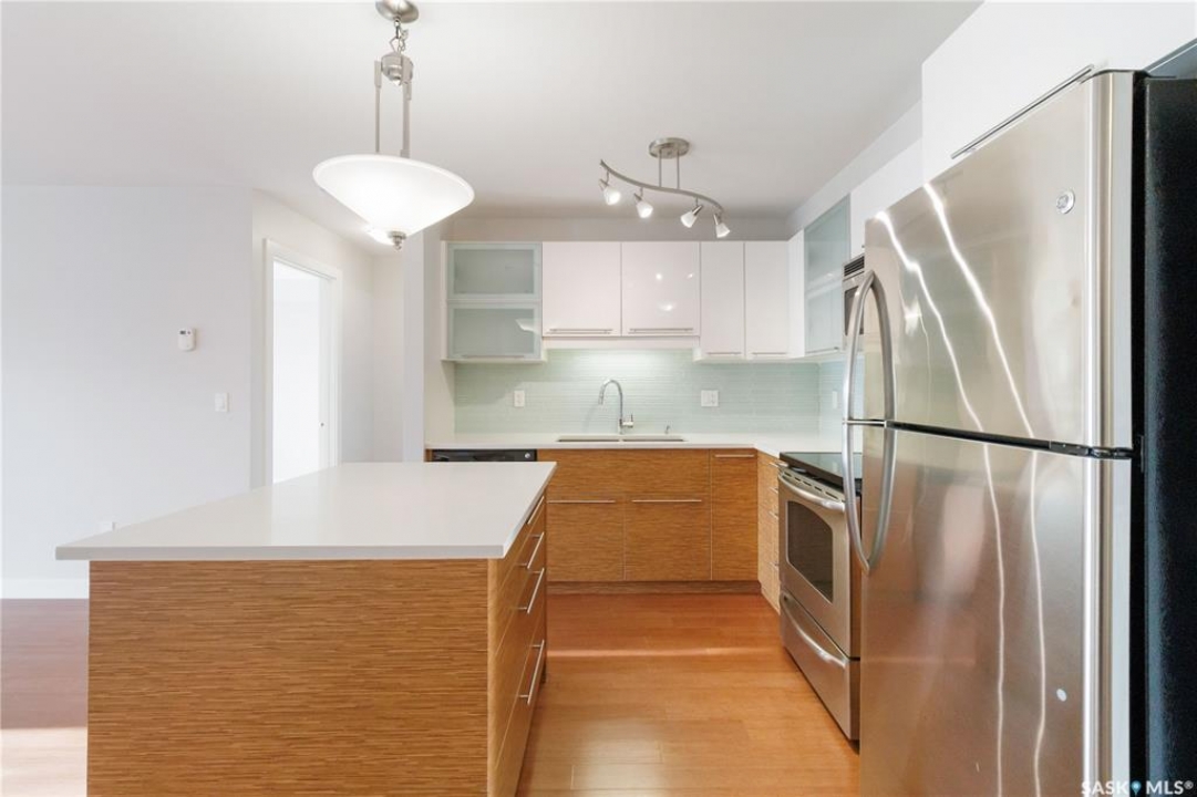 Welcome to 103C-415 Hunter Road in Stonebridge! This main floor, south facing two bed, one bath condo has everything one could need. Freshly repainted and ready for immediate possession. The condo boasts a smart layout with two bedrooms on opposite ends, a four-piece bath with a quartz countertop, and a kitchen with ample cabinet space and a functional island. The in-suite laundry room is convenient and the bedrooms features large closets. 2 parking stalls are included close to the entry. The complex is among the best in town, featuring an indoor pool and gym. It's within walking distance to many amenities and offers quick, easy access out of Stonebridge to Circle Drive. Owners are allowed to have 2 animals with board approval - smaller dogs allowed under 35 lbs allowed or two cats. Condo fees include water, insurance, heat, reserve fund, lawn care and snow removal.
