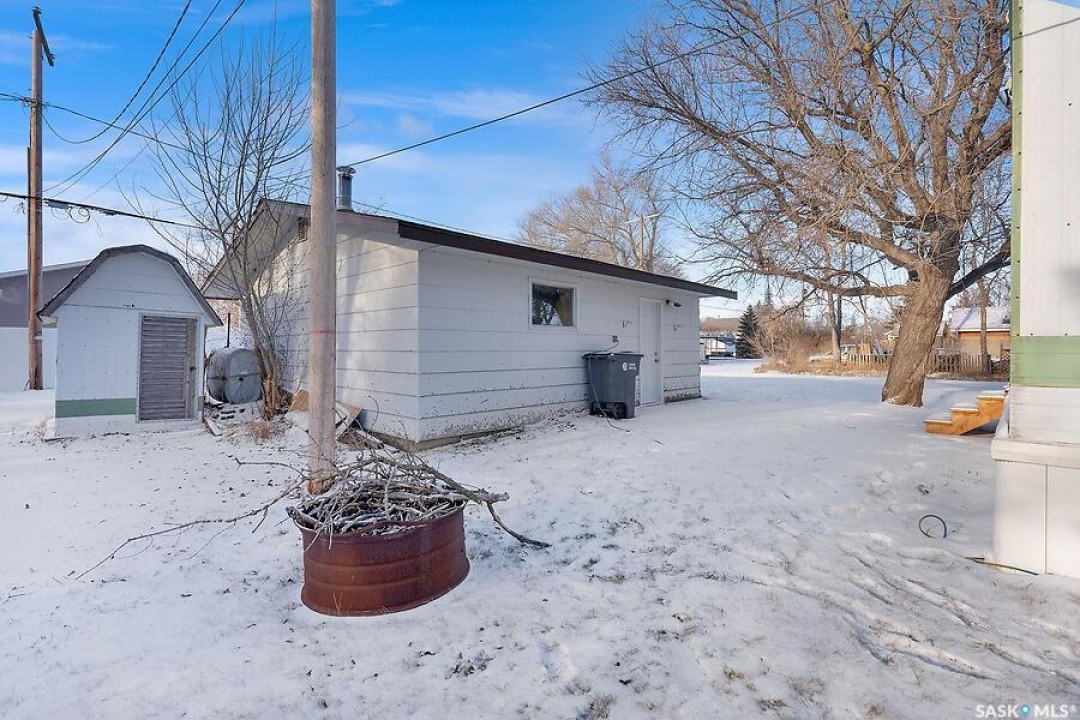 Move in ready! Fantastic starter, retirement home or revenue property! Recent upgrades include a new Bath fitter tub/tub surround & bathroom flooring (Dec 2025), new entrance deck with Black Regal Railing (Oct 2025), newer skirting--2" rapid wall vinyl R9 insulation (Sept 2021), newer water heater (2023) and the garage roof (Summer 2019), Welcome to this cozy 3 bedroom, 1 bath home with a bonus mud room, this home is located on a quiet corner lot in town. Detached garage is a plus for storage and your vehicle. This is an affordable opportunity to enjoy small-town living with a big community spirit. The community of Bethune offers a K-8 elementary school (high school students bussed to Lumsden), Conexus Credit Union, Co-Op Grocery & Gas Station, Fitness Center, Library, Community Hall, Local Insurance Broker, Bookkeeping services and many active local clubs. Sports enthusiasts will love the hockey and curling rinks! New subsidized daycare beside the splash park and playground. Plus, Bethune is the closest community to the K+S Potash Mine, this location is ideal for work and leisure! Don't miss out on this move-in-ready little gem in a thriving community!