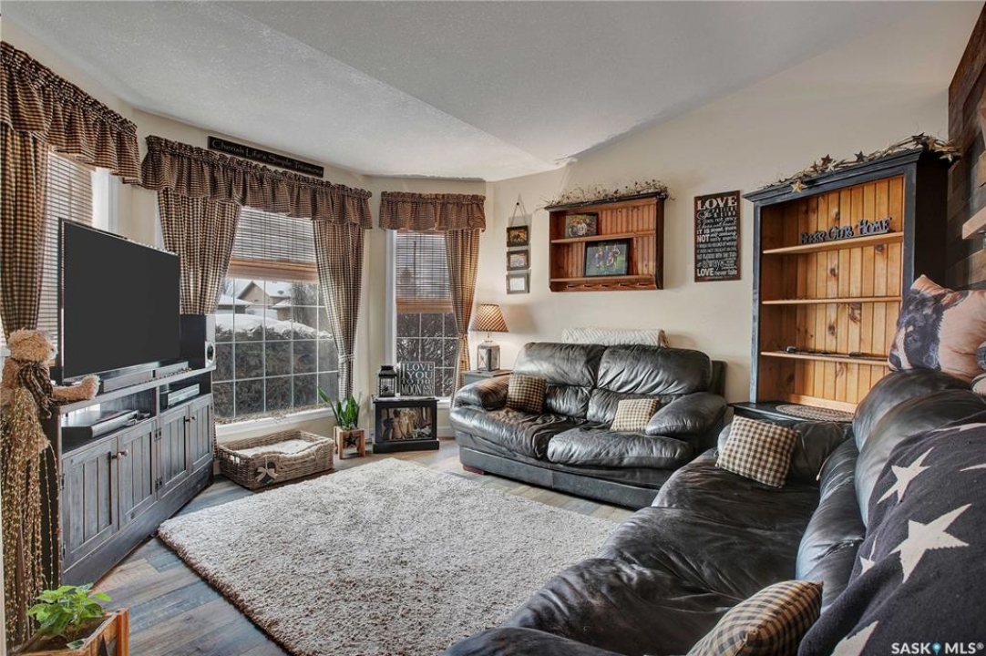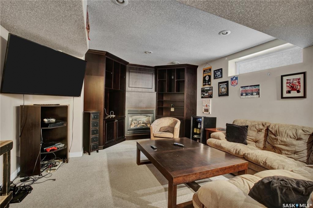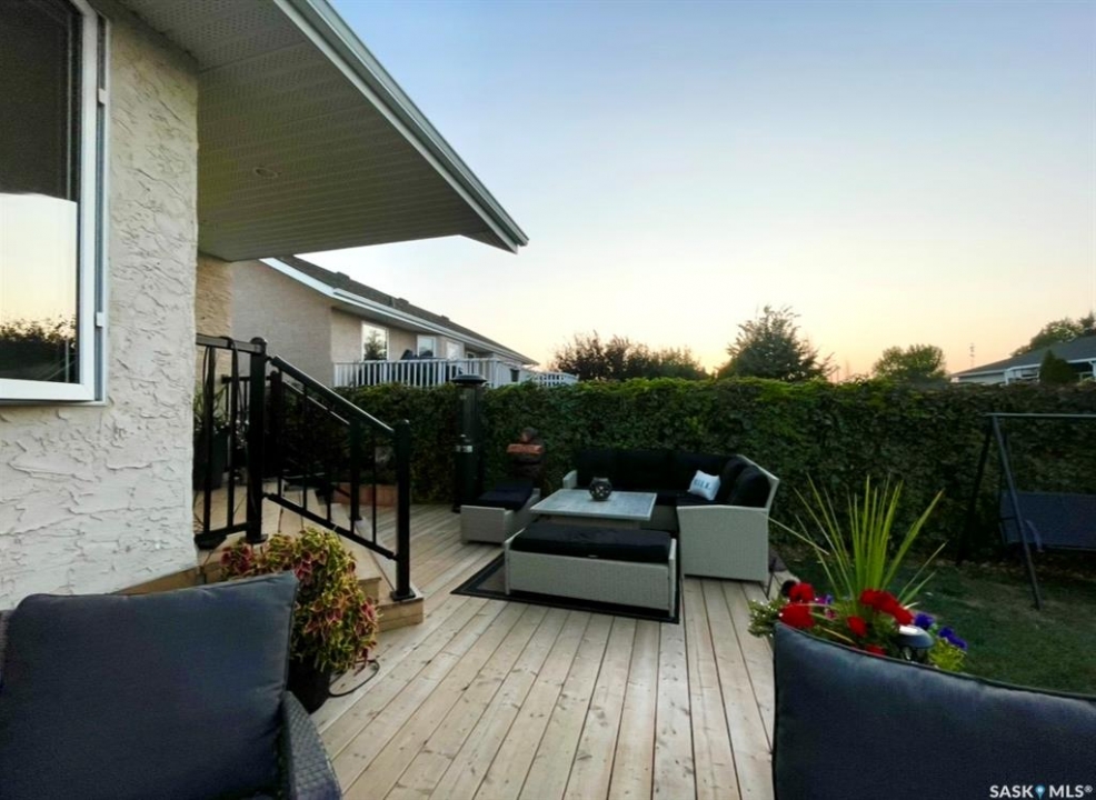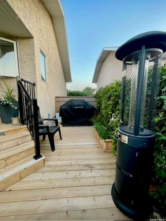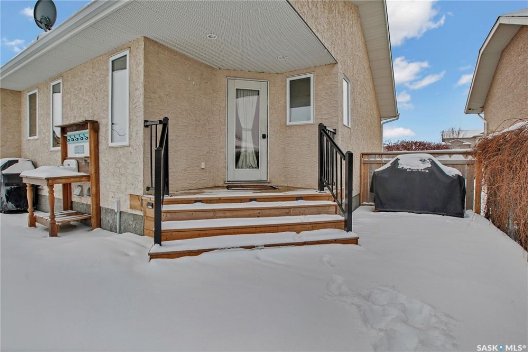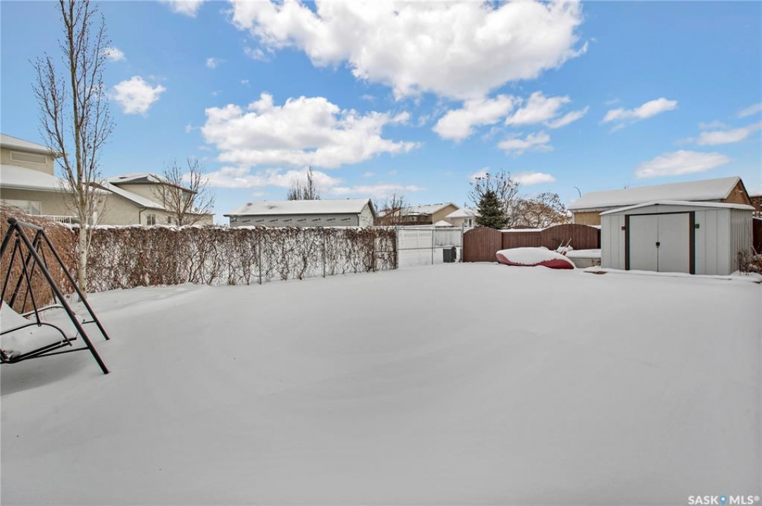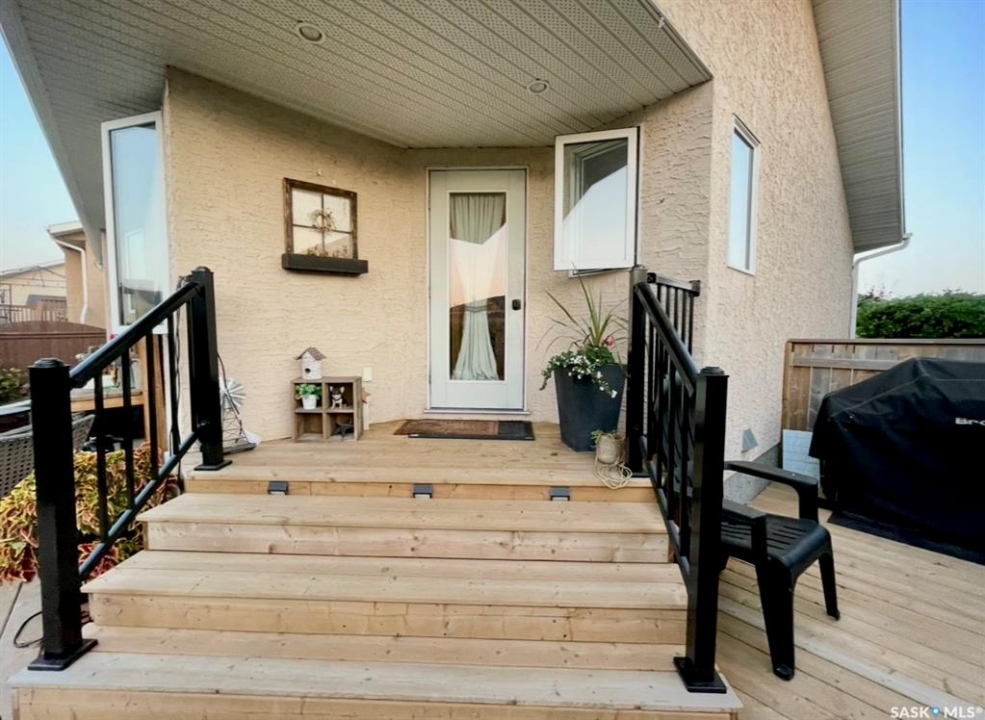 A wonderful blend of maturity, comfort, and modern updates are found in this beautifully maintained family bungalow, ideally situated in the middle of Warman. Nestled between the community's elementary and middle schools and just steps from the lakes and walking paths of Crystal Springs, this home offers exceptional convenience in a highly desired location. Inside, the south-facing living room is filled with natural light throughout the day, creating a warm and welcoming atmosphere. The kitchen and dining area overlook the expansive backyard, featuring abundant windows, alley access, and a brand-new deck—an ideal space for entertaining or relaxing outdoors. With three bedrooms and two bathrooms, the home has been thoughtfully updated throughout. The fully developed basement adds even more living space, highlighted by a stylish family room complete with custom cabinetry and a built-in natural gas fireplace. The basement can be completed with additional bedrooms and has rough-ins for a future bathroom. This is a home where pride of ownership is evident at every turn. Call your Realtor today to experience this beautiful property in person. Shingles replaced 2025, Dishwasher 2025, Water Heater 2023, Flooring 2023