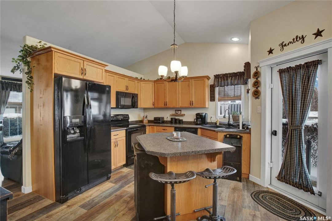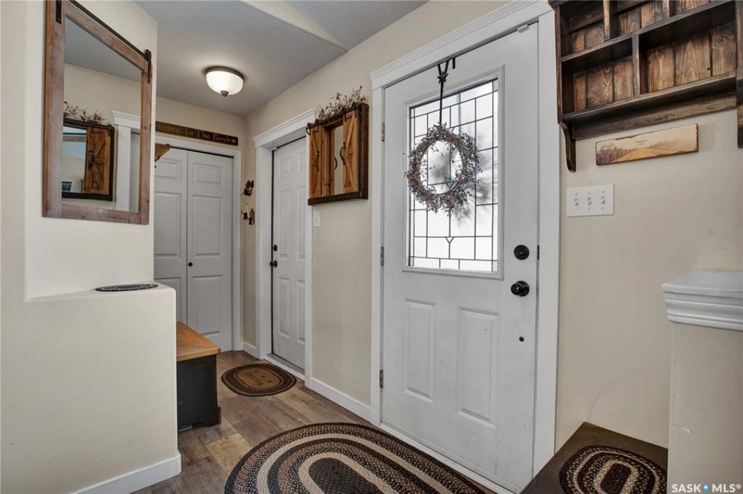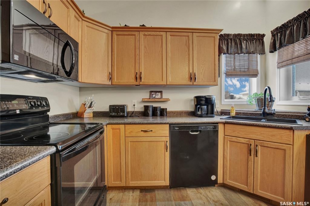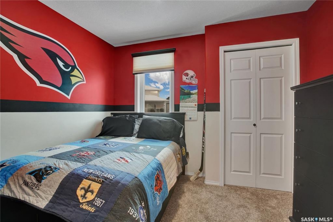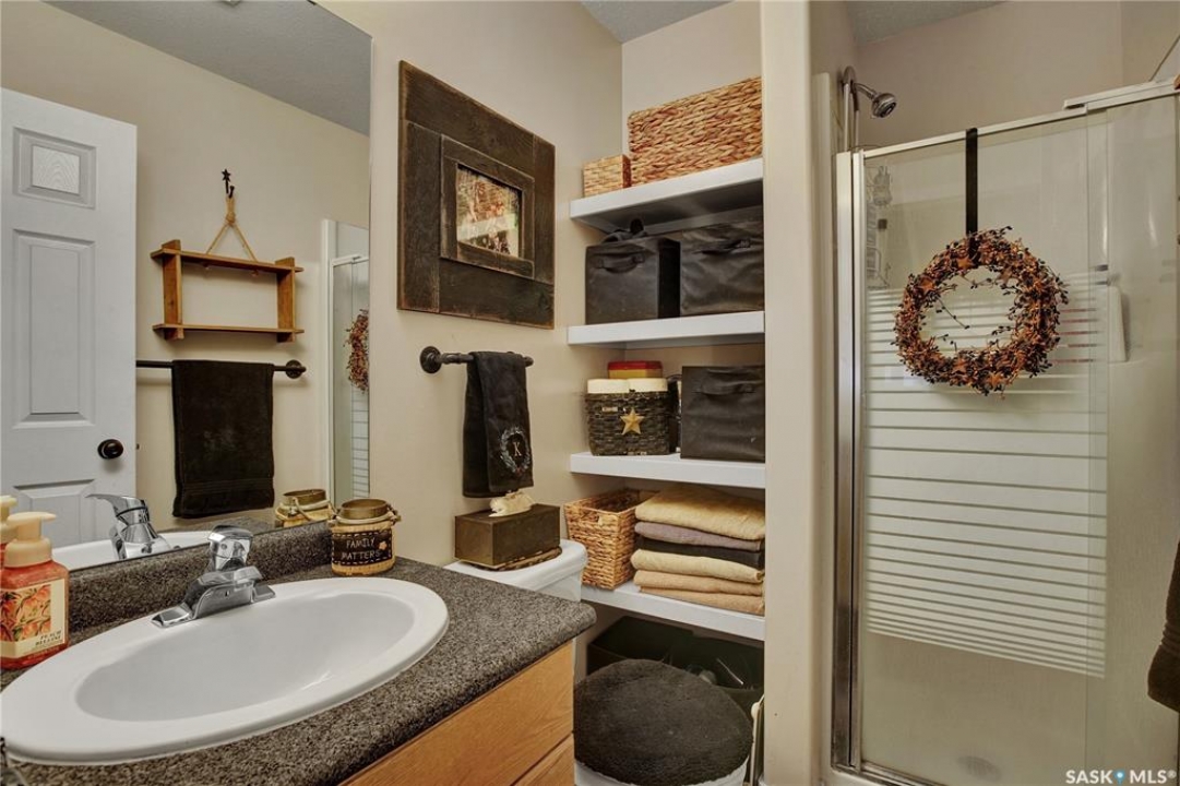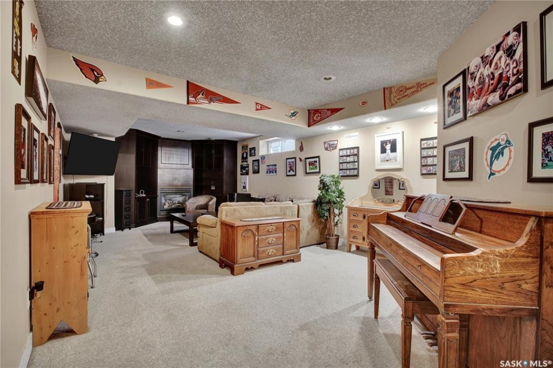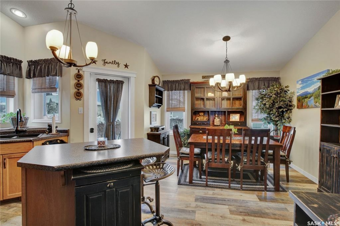 A wonderful blend of maturity, comfort, and modern updates are found in this beautifully maintained family bungalow, ideally situated in the middle of Warman. Nestled between the community's elementary and middle schools and just steps from the lakes and walking paths of Crystal Springs, this home offers exceptional convenience in a highly desired location. Inside, the south-facing living room is filled with natural light throughout the day, creating a warm and welcoming atmosphere. The kitchen and dining area overlook the expansive backyard, featuring abundant windows, alley access, and a brand-new deck—an ideal space for entertaining or relaxing outdoors. With three bedrooms and two bathrooms, the home has been thoughtfully updated throughout. The fully developed basement adds even more living space, highlighted by a stylish family room complete with custom cabinetry and a built-in natural gas fireplace. The basement can be completed with additional bedrooms and has rough-ins for a future bathroom. This is a home where pride of ownership is evident at every turn. Call your Realtor today to experience this beautiful property in person. Shingles replaced 2025, Dishwasher 2025, Water Heater 2023, Flooring 2023