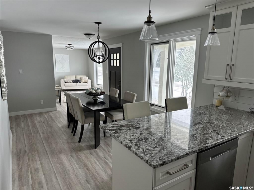 Beautifully Renovated Home with Modern Finishes and Spacious Layout! This completely renovated home, originally built in 1985, offers over 1,100 sq. ft. on each level and blends modern style with functional living spaces. Featuring an attached garage and a low-maintenance yard, this property is move-in ready and ideally located close to the local school. Inside, you'll find a stunning updated kitchen with quartz countertops, crisp white cabinetry, a stylish tile backsplash, and a center island with seating. The kitchen flows seamlessly into the dining room, creating an inviting space for everyday living and entertaining. The spacious living room offers plenty of room for relaxation. The main level includes two bedrooms, including a generous primary suite complete with a beautifully updated 3-piece ensuite featuring dual sinks. A modern 4-piece bathroom, a convenient main-floor laundry room, and a 2-piece bathroom off the mudroom add to the thoughtful layout. The fully finished basement provides even more living space with a large family room, two additional bedrooms, a 3-piece bathroom, and a dedicated storage room—perfect for growing families or guests. Outside, the low-maintenance yard and concrete driveway add convenience and curb appeal. This home offers modern upgrades, ample space, and a fantastic location—truly a must-see!