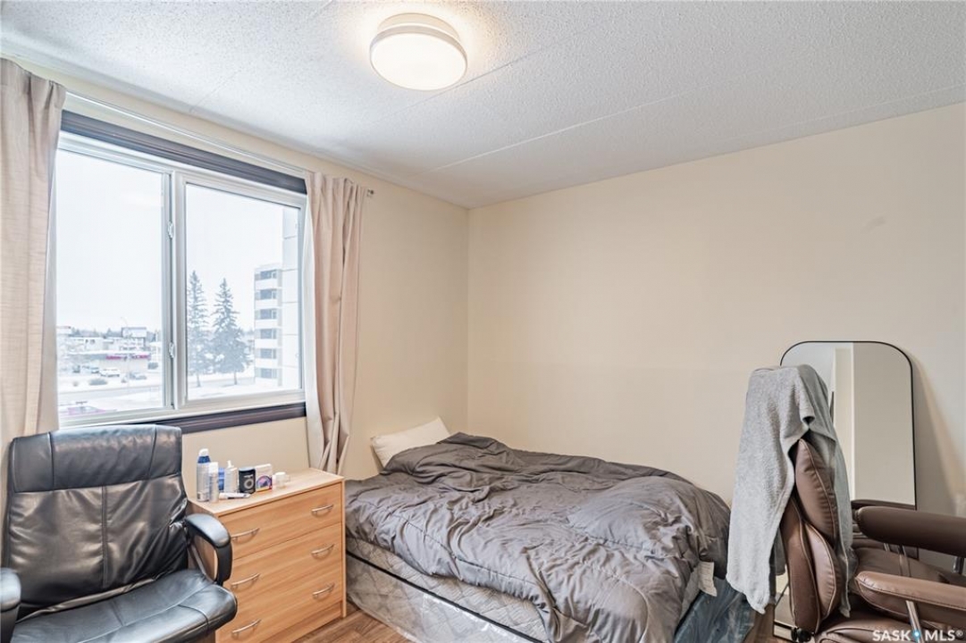 Bright 2 bedroom, 1 bath condo in the concrete Westfield Twins in desirable Albert Park offers open-concept living with an island kitchen and extensive cabinetry flowing into a spacious living room with balcony access, plus both generously sized bedrooms with big windows, and a functional 3-piece bath, all within a well-managed building that provides outstanding common amenities including an amenities room, elevator, exercise area, guest suite, lounge, sauna, shared laundry, indoor swimming pool and wheelchair access, while the monthly condo fees include external building maintenance, common insurance, power, reserve fund, sewer, snow removal and water for truly low-maintenance living close to Southland Mall, restaurants and transit.