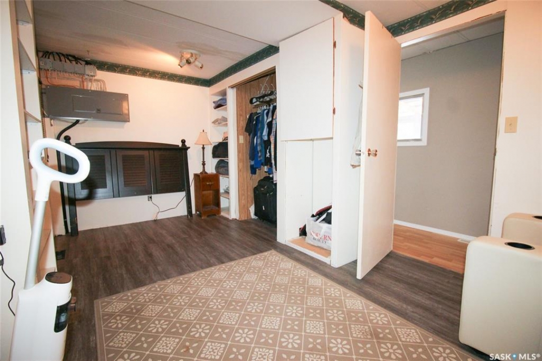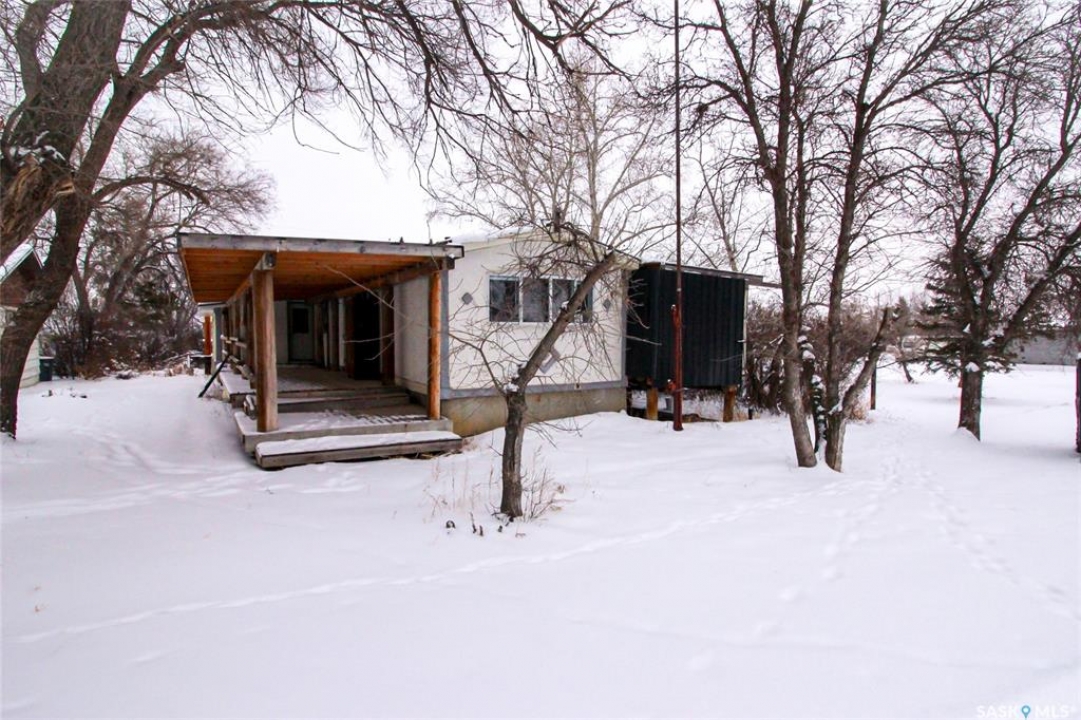 Bring your fishing rod and move into the best cottage in Simmie, SK just steps from Duncairn Dam. This property is a double lot site on a corner with all the amenities you are looking for. The home is a mobile home, set up on a full preserved wood basement. Lots of loving care has been put into this home with, upgraded electrical panel, new natural gas furnace, new hot water heater and an all metal roof. The home is pretty unassuming from the street but features two large covered decks for all of the outside enjoyment. The home has an open kitchen to living room space with neat laminate flooring and access to the deck through garden doors. There are two bedrooms with tons of closet space and the main floor bath is fully renovated with ceramic tile and a modern look. The lower level is framed out for various rooms and rough plumbed for a bathroom. With all this space, there is room to add any out building you are interested in, the current Atco Trailer on the site is slated to be moved in the spring so there is plenty of room for a garage. Affordabe and peaceful this property has location locked in and is ready for you.