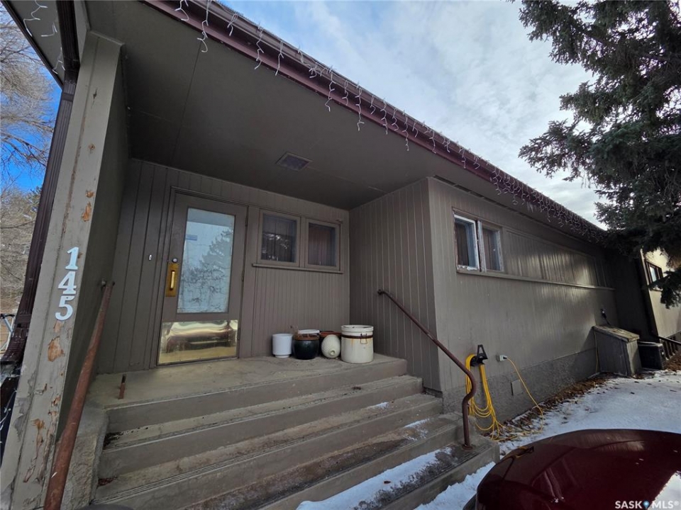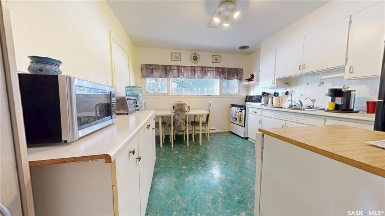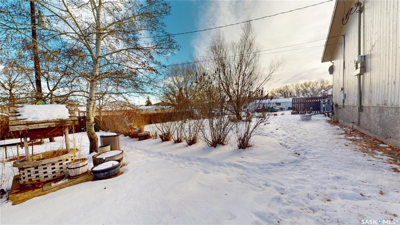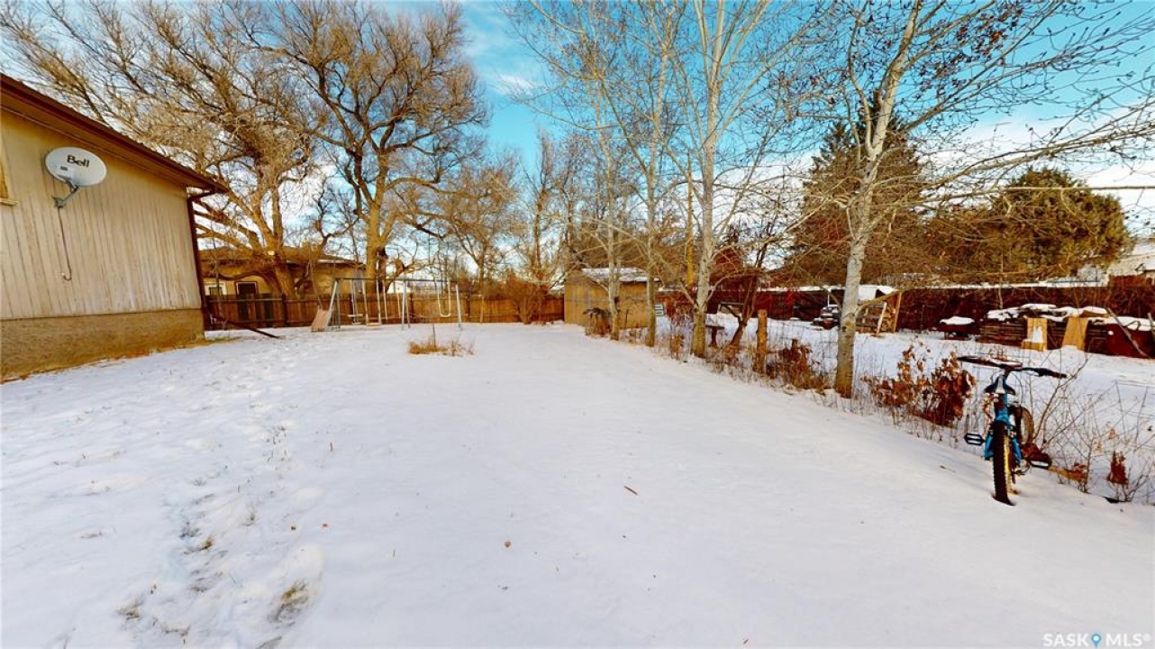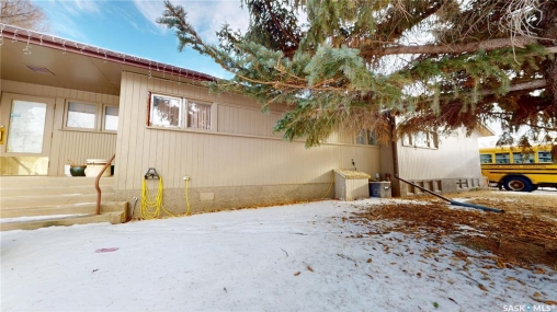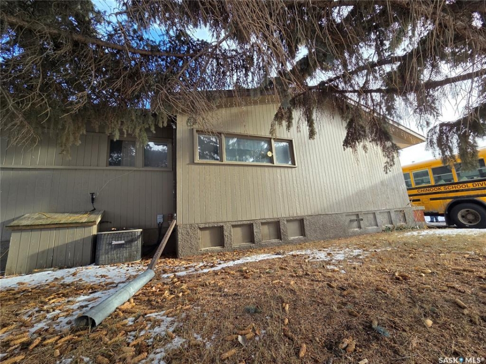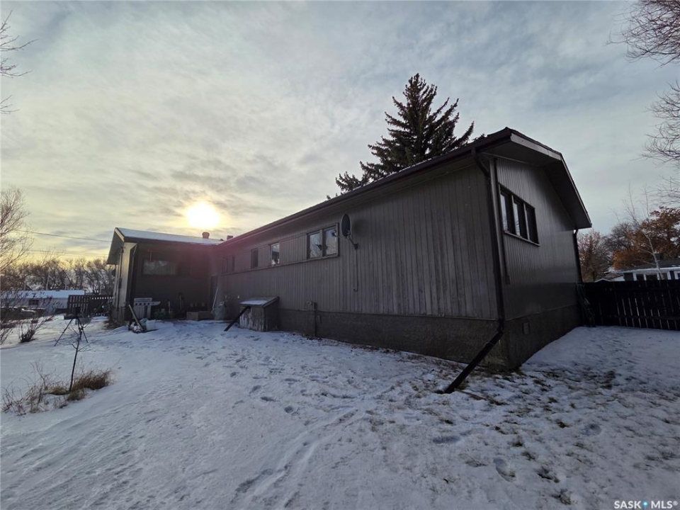 Located in Fox Valley, a quiet community in SW Saskatchewan, 1 hr from Medicine Hat, 40 min from Maple Creek and 20 min to Leader. This home offers ample space for your family or potential investment income with rental suites.. Featuring 5 bedrooms and 2 bathrooms. Originally designed as a dual purpose residence with a living space on one side and Dr office on the other. Through the South side entrance which was the living space side, there is a porch leading into the living room on one side and an office on the other. There are 2 bedrooms and 4 pc bath on this end of the home. There are original hardwood floors throughout this living space. The eat in kitchen is at the front of the home and has ample cabinets. The hallway has closets close to the entrance. You can also easily access the back yard from the split back entry or continue to the partial basement. Presently unfinished, this area could be rec space and ample storage. Continuing to the other side of the home there is a large pantry with additional cabinet storage. There is a 2 pc bath operational and another 2 pc rough in (was his/hers from dr office) which offers opportunity to expand or create en-suite from one of the bedrooms. Down this hall there are 3 more bedrooms that can be easily used as office or craft (present use). At the North end there is another front entrance/porch and a second family room space. The additional opportunity for this home is to utilize it as a multi-generational family living with the separation of space, Or create full separation with a rental suite. This home also sits an an extra large 128' X 125' fully fenced lot. There is parking at both sides with room for 4 cars/RV and room for 2 or more on the other end. Plenty of extra space for additional parking or building a large garage. The yard has multiple places to enjoy, including mature trees, a fire pit area, a play area and a patio. This property offers a unique layout with ample possibilities.