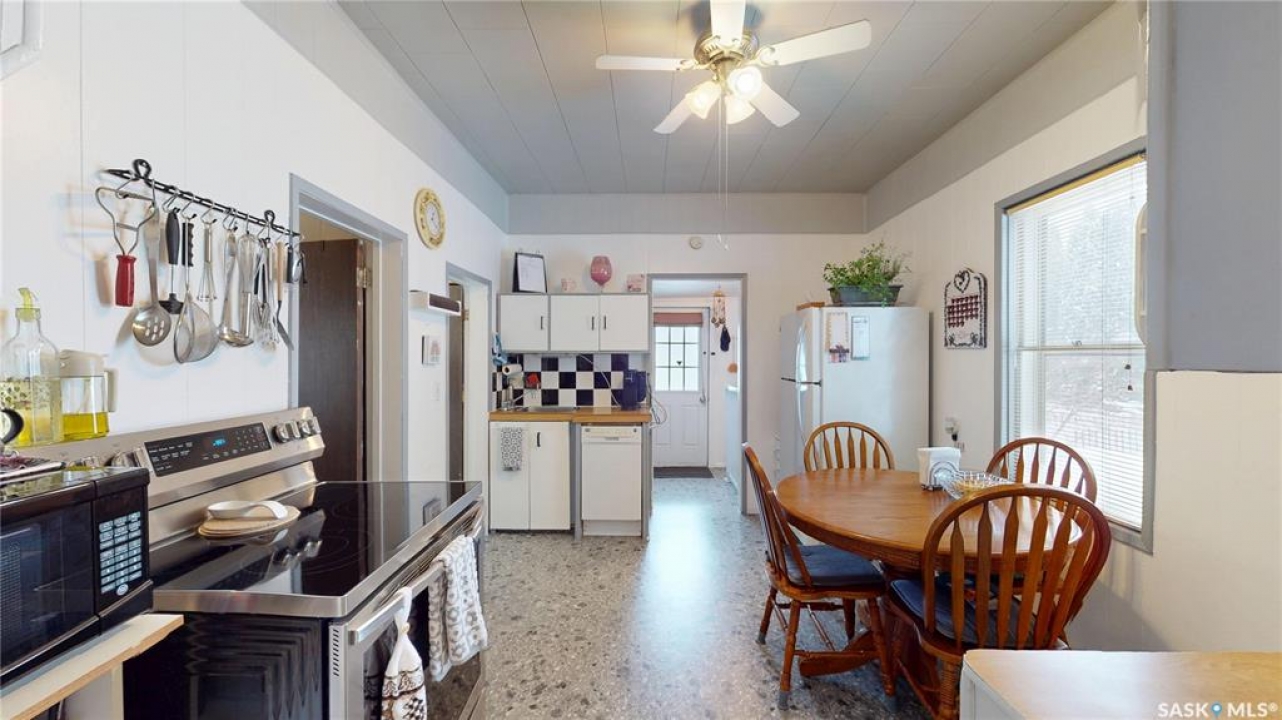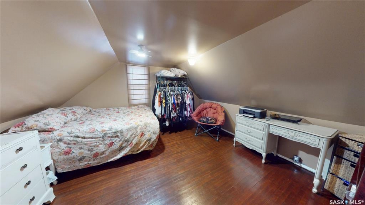 Wonderful one-and-a-half-storey home with a garage on a large 50' x 140' lot. Please view the Matterport 3D virtual tour and floor plans in this listing. There are two bedrooms and one full bathroom, along with loads of storage space and a second toilet in the unfinished basement. The current owner has made tons of improvements: furnace, central air conditioning, deck, flooring on the main floor, added subfloor for uniform height, shingles on the house, metal roof on the garage, overhead door, and more. The sizeable fenced yard features lane access to an oversize single garage, two sheds, a garden area, a fire pit, and plenty of room for children or pets to enjoy while you watch from the back deck. Another perk is a number of fruit trees, including two apple trees, two pear trees, a Saskatoon berry bush and grapevines on the property. A professional home inspection report, Property Information Disclosure (PID), a gas line inspection, and a Property Condition Disclosure Statement (PCDS) are all available for buyers to review prior to making an offer. The seller would be happy to include the following items for the buyer: dresser, mattress base, and portable clothes racks in second floor bedroom, shelving unit behind door in bathroom, microwave stand, second set of laundry for parts, and backyard BBQ & fire pit bricks. Call now for your own private viewing!