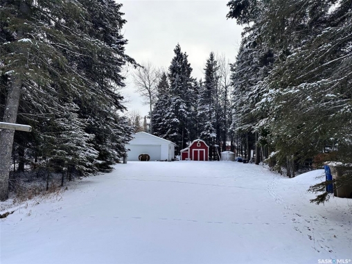 Nestled into the tall pines at the end of a quiet street in the pristine village of Chitek Lake, across from a park with playground, is this secluded lot ready for your getaway home! Enjoy privacy with a fenced yard, a garage and shed with loft - all you need to add is your dream home.