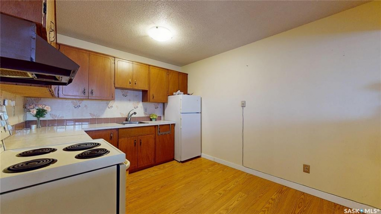Welcome to this wonderful affordable condo in Regina's sought-after south end! Located in the quiet, well-maintained Albert Park complex, this top-floor unit offers a spacious 1-bedroom, 1-bathroom layout with its own private balcony. It includes an electrified parking stall as well. The roomy living room opens into the kitchen, making it ideal for entertaining or relaxing evenings at home. The kitchen has an eat in dining space and plenty of counter space for all your cooking needs. The oversized bedroom offers incredible flexibility – easily accommodating a home office, reading nook, or even an extra bed. The updated bathroom includes excellent built-in storage, and there's an additional in-suite storage room to keep everything neatly tucked away. This complex has been very well maintained, easily noticeable as you walk into the building. Other highlights include: newer windows, in building shared laundry, walking distance to the Southland Mall, groceries, and amenities as well as a bus stop directly in front of the building. Whether you're downsizing, purchasing your first home, or seeking a solid rental investment, this condo checks all the boxes. Pop in and take a look at this sweet gem of home - it is a wonderful find.