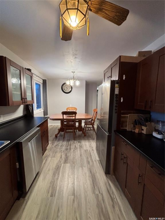 Welcome to this solid 1,004 sq.ft. bungalow offering space, flexibility, and a convenient location. The main floor features two bedrooms plus an additional office space currently used as a nursery, along with a 4-piece bathroom. Enjoy a spacious living room filled with natural light from a large front window, seamlessly open to the kitchen and dining area. The kitchen offers ample cupboard and counter space, perfect for everyday living and entertaining. The main floor bathroom has been recently renovated within the last two years and is generously sized, featuring a relaxing deep corner tub and a separate standing shower. The basement is partially finished and adds excellent value with a bedroom, 3-piece bathroom, and a recreational room. With its layout, the basement has the potential to be converted into a rental suite for additional income. Outside, you'll appreciate the oversized single attached garage that may appear to be a double, but it is a single with a convenient breezeway providing direct access to the backyard. Part of the yard is fenced, with more yard that extends beyond the fence line, providing extra outdoor space and room to park recreational vehicles or toys. Ideally located close to downtown, the hospital, and the high school, this home offers both comfort and convenience. A fantastic opportunity for families, investors, or anyone seeking flexible living space in a central location. Taxes for 2025 are $2,121.
