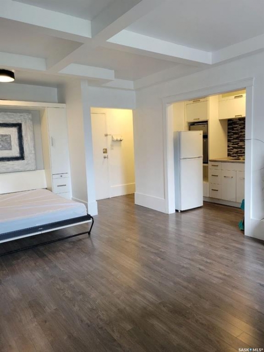 Bachelor suite located in the heart of Saskatoon. This beautiful unit has had over $40,000 worth of upgrades including fresh paint done. In addition, all furniture is included. Electric fireplace and window air conditioner included. Within walking distance of all downtown shopping, restaurants and Midtown Plaza. Bus routes close by and easy access to U of S. Between the extensive renovations and tasteful furniture, this unit is truly move-in ready! No PCDS, the owner has never lived in the property.