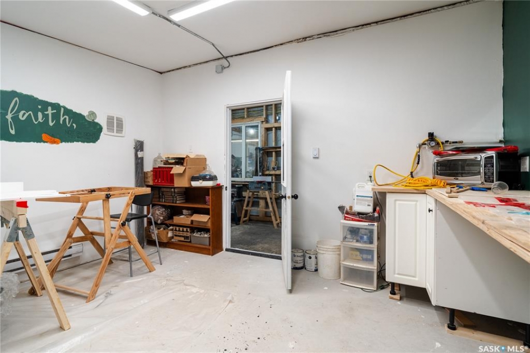Just an hour from Regina, 503 Railway Ave in Glenavon, SK presents a rare opportunity for hobbyists, tradespeople, and small business owners in search of a space that can keep pace with big ideas. The main building is thoughtfully designed with a combination automotive shop and woodshop, along with a dedicated craft and creative area, generous storage, and plenty of on-site parking to keep projects moving smoothly. Inside, the layout includes an office, a well-insulated bathroom, a craft room, storage space, and several flexible areas ready to adapt to your needs. A crawl space beneath the bathroom allows easy access to water and sewer lines, while the 200-amp electrical service comfortably supports heavy-duty equipment and modern technology. A high-efficiency furnace installed approximately four years ago works alongside radiant heat throughout the shop, with electric heat in the bathroom and craft room to ensure year-round comfort. The woodshop is especially well set up, featuring strategically placed, dust-proof lighting and outlets, built-in cupboards and counters (negotiable), and rough-ins already in place for dust collection. A durable tin roof, also about four years old, and fixed load-bearing walls add to the building's long-term durability and functionality. While some upgrades were started and left unfinished, this creates an excellent opportunity to tailor the space to your specific vision. Whether you're restoring vehicles, crafting custom furniture, pursuing creative projects, or juggling a bit of everything, this rugged and versatile shop is built for hands-on work and ambitious ideas—ready to support your tools, your creativity, and whatever you're inspired to build next. Inside Measurements as Follows- Entry: 21'1"x9'5". Office: 9'1"x9'5". Wooshop 1: 21'1"x16'20". Woodhsop 2: 34'6"x8". Craft Room: 14'x14" Automotive Shop: 37'5"x311. Old Paint Booth: 14'10"x23'7". Bathroom: 6'x8'2"