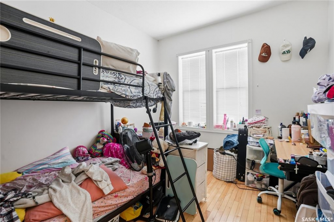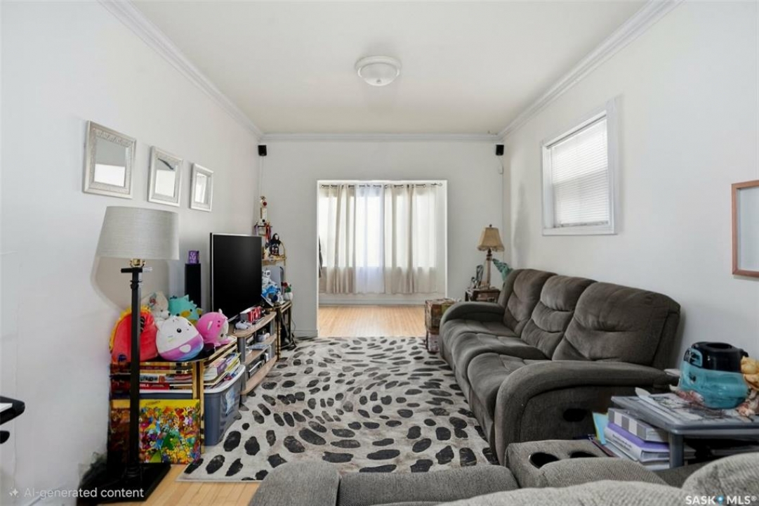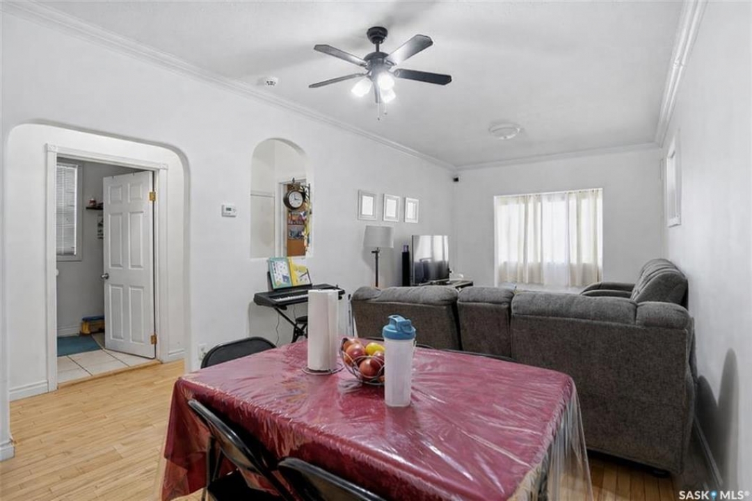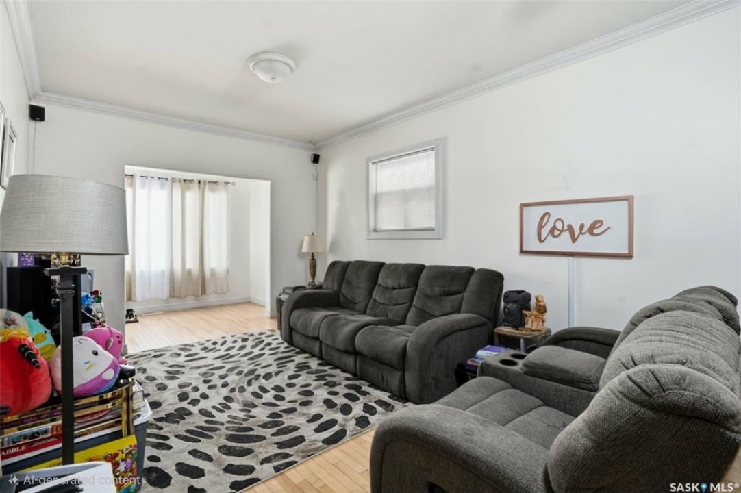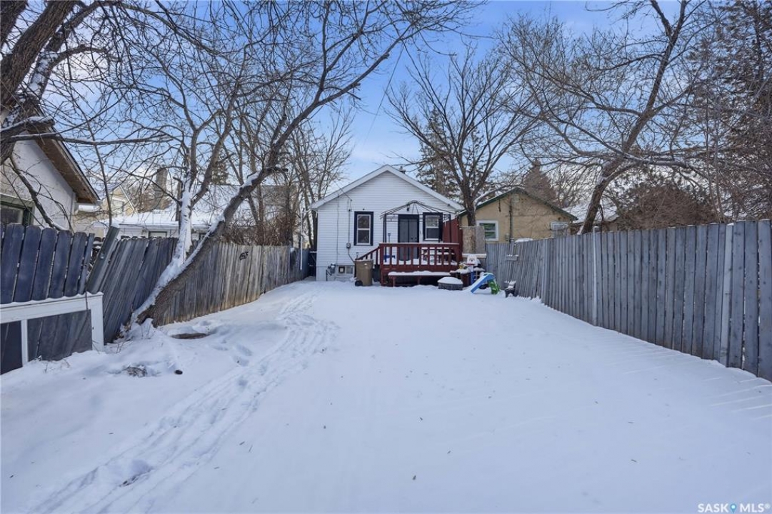 Own for Less Than Rent – Affordable, Move-In-Ready Bungalow! Why rent when you could own your own home for approximately $763/month, including mortgage and property taxes? (Estimated based on a 5-year fixed rate of 4.19% at time of listing.) A great opportunity for first-time buyers looking for affordability and long-term value. Over 800 sq. ft. bungalow features a bright main level with maple hardwood floors, 9' ceilings, crown mouldings, and rounded corners. The layout includes two spacious bedrooms, an updated 4-piece bathroom with a relaxing soaker tub and espresso vanity, a dining area, comfortable living room, and an inviting galley kitchen. The open basement is ready for future development, and the seller is including gyproc to help you get started. Outside, you'll find a fully fenced yard, a 12' x 12' deck, and convenient lane access with room to build a garage. Key updates include: Eaves, plumbing, electrical, sewer line, PVC triple-pane low-E argon windows (except front foyer) noted from a previous listing 2004. Shingles and insulated vinyl siding (2019) Located on a quiet, nice block, close to the Armories and just a few blocks from Pasqua Hospital. With low property taxes and a price that makes homeownership truly attainable, this home offers incredible value. Priced to sell—book your viewing today!