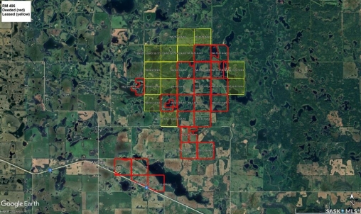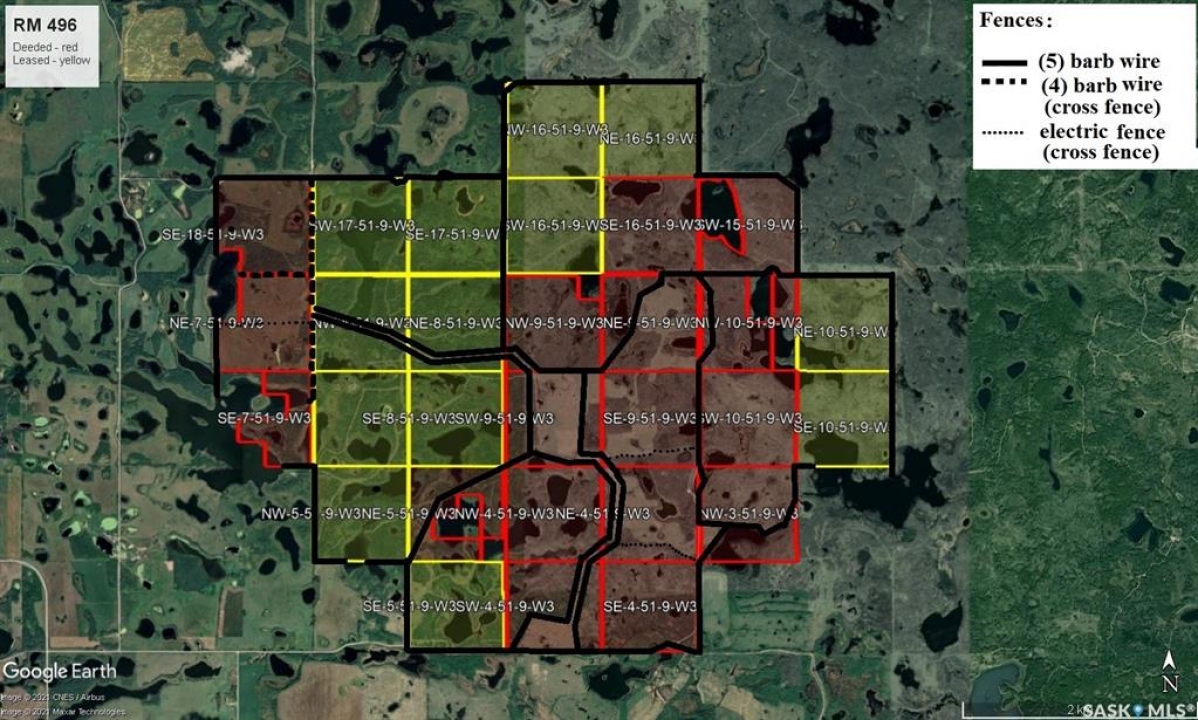 Exceptional Mixed Farm & Ranch Package – Highly Productive & Well Improved Rare opportunity to acquire a large, contiguous mixed farm and ranch offering an excellent balance of cultivated land, productive pasture, abundant water, and extensive infrastructure. The deeded land totals approximately 3,183 acres (22 parcels) with 561 cultivated acres and a strong soil rating (46.5 weighted average), complemented by 2,072 leased acres (13 parcels) primarily in native pasture. The property features 31+ miles of fencing, 10 well-designed paddocks for rotational grazing, numerous dugouts, lakes, and sloughs, and miles of internal trails with RM road access. Approximately 422 acres of tame grass plus extensive native pasture provide outstanding forage. Proven crop performance includes canola up to 60 bu/ac, wheat up to 100 bu/ac, and oats exceeding 150 bu/ac. Grazing capacity supports approximately 500 cow-calf pairs or 1,000+ yearlings in most years. Improvements include a 40' x 80' heated shop, a 60' x 150' cold storage building (2024) suitable for large equipment or potential calving barn, and a drive-over scale capable of weighing cattle and grain. Optional grain and fertilizer storage may be available (relocation required). Additional highlights include scenic rolling terrain, strong water supply, gravel potential, and possible future oil and gas development. A highly efficient, turnkey agricultural operation with long-term value.