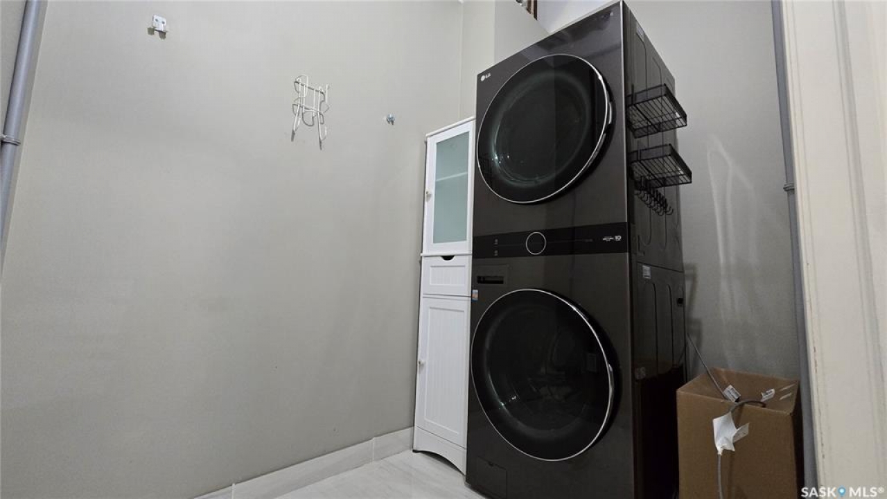This high rise condo is securely nestled in downtown Regina, and offers an urban and convenient lifestyle. The Hamilton building is a well-known Regina staple, and by purchasing this bright and well updated 2 bedroom condo, you'll gain access to a plethora of amenities, not limited to; Gated and secure parking, fully outfitted gym, large amenities room for lounging and hosting, designated storage area, and of course the outdoor patio and garden area, complete with BBQ and hot tub. This unit is freshly painted with new laminate flooring throughout. The kitchen offers ample cupboard and counter space, stainless steel appliances, and a built in dishwasher. The main bath has been updated with new vanity, sink, fixtures, and backsplash. Both bedrooms face North and offer wonderful views of the city. The primary bedroom is tastefully wallpapered and boasts its own 4 piece ensuite, with updated vanity, sink, and fixtures. Other features of this condo include smart plugs and light switches, tasteful custom built coverings for the radiators, modern light fixtures, and custom blinds. Be right in the action of downtown, and enjoy the safety of being 8 floors up, with your vehicle in a completely gated lot, and even a concierge in the lobby to handle your deliveries.