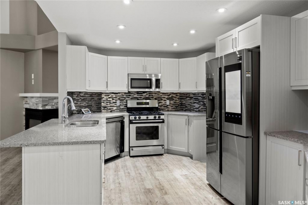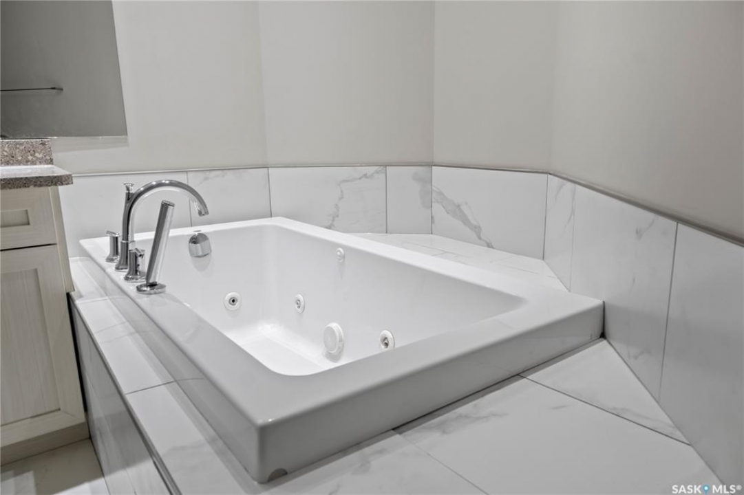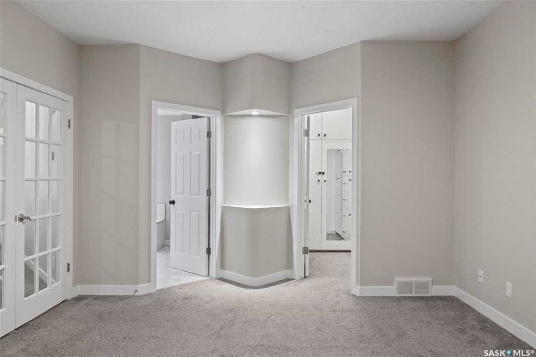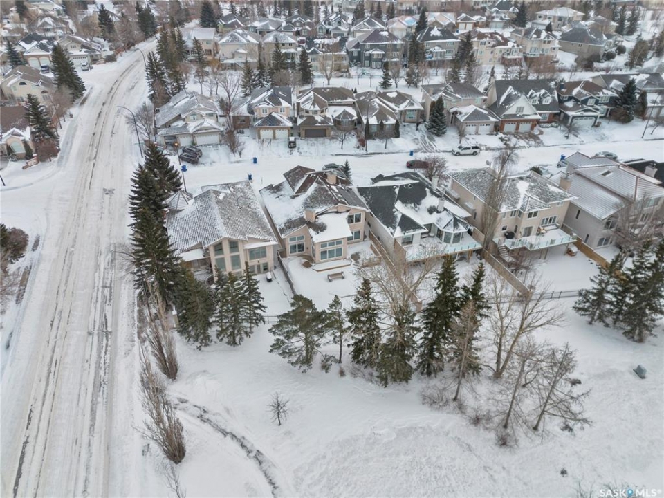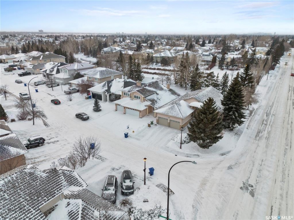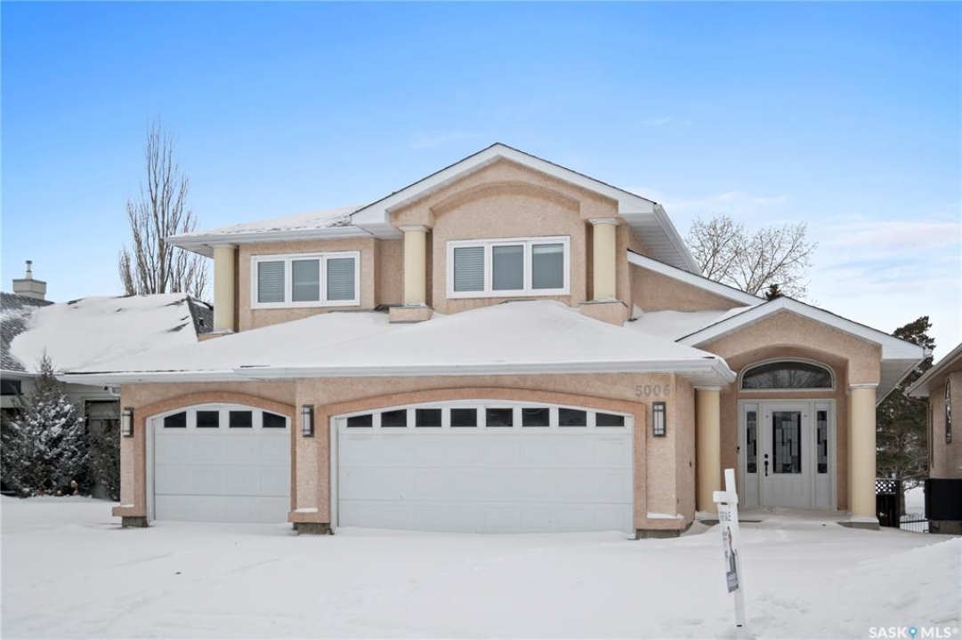 Welcome to 5006 Wascana Vista Court. This former show home is nestled in the sought-after Wascana View neighborhood. This quiet cul-de-sac location backs onto a walking path, offering convenient access to east-end amenities and schools. This two-story split home features 4bd, 3ba, and a spacious 32x24 triple attached insulated garage. The exterior and landscaping are very low maintenance, with a xeriscaped front yard, stucco siding, and a backyard with multiple patio areas and artificial turf. Upon entering, you are greeted by a foyer with 2 closets and tile flooring. A curved staircase descends into the expansive great room, featuring massive windows that provide views of the greenspace. The formal dining room is separated from the great room by a 3 sided gas fireplace. Overlooking the dining room is the updated kitchen, complete with ample cabinet space, quartz countertops, a tile backsplash, and included stainless steel appliances. Next, an additional versatile room can serve as a family room, or reading nook. Adjacent is a main floor bedroom, with natural light from a rear window. The main floor also includes a 2pc bathroom, a large laundry room, and a utility room housing 2 new furnaces and a air conditioner (installed June 2025), a rented water heater, and an r/o system. A storage area completes this level. Ascending a curved staircase, you arrive at a bonus room, located next to the master. The master suite has French doors, expansive windows, a custom-built walk-in closet, and a luxurious 5pc ensuite bathroom with 2 sinks, a jet tub, a custom tile shower, and heated floors. A few more stairs lead to the top floor that has an additional nook, 2 generous bedrooms, and a 5pc bathroom equipped with double sinks and a deep soaker bathtub. The entire home has been recently painted, and significant energy efficiency upgrades were made in 2023, including new shingles and solar panels. Certain photos have been digitally staged and are clearly marked.