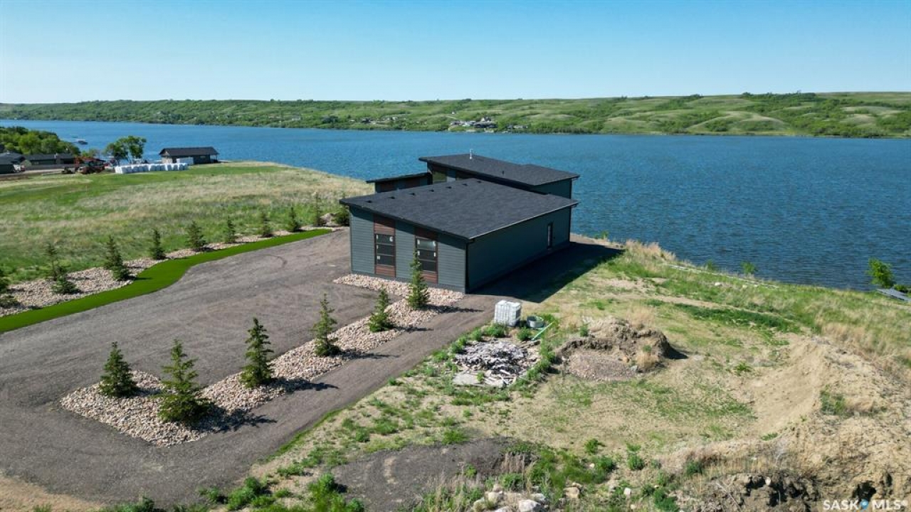Words fail to describe this exceptional lakefront home! 12 Sunset Boulevard in the Resort Village of North Grove defines a legacy lifestyle property on Buffalo Pound Lake! Stunning contemporary design begins with a 4-car attached garage ushering you into the fabulous bungalow-style home (2037 sq/ft on main level), with, of course, a walkout lower level specifically designed to surround you with panoramic lake views! Open concept design with vaulted ceilings, perfect kitchen design with central island, separate pantry room, dining area that steps onto a spacious deck overlooking the lake, and of course, the gas fireplace provides a wonderful family-centric home! The main floor flows from the entry area to a full bath, a bedroom or office space, and then to the amazing primary suite with a lovely bath, dual sinks, soaking tub, walk-in shower, leading to an amazing dressing room! When you enter from the garage (45'X28'), you find a perfect space that has outdoor access for a games room, fitness centre, home office, studio,... amazing! Yes, there is also a mudroom space before entering! The lower level steps into a fantastic family room with a wet bar area, Opti Myst fireplace, plus access to the covered, & screened patio,....WOW!! Of course, there is a media room, 2 bedrooms, a full bath, laundry room, and a utility/storage area! Now, step outside to relax with nature that has trees, access to the lake, retaining walls, a firepit area,... views that you will never tire of! This newly constructed and never-lived-in home is a one-of-a-kind opportunity! If desired, the lot #13, west of the property can be purchased separately, MLS# SK010137! Be sure not to miss this amazing place at the lake to call home! Drone shots + 3D scan of the interiors with 360s of the outdoor spaces are available for you!