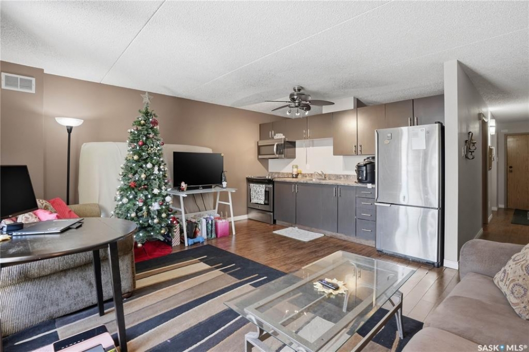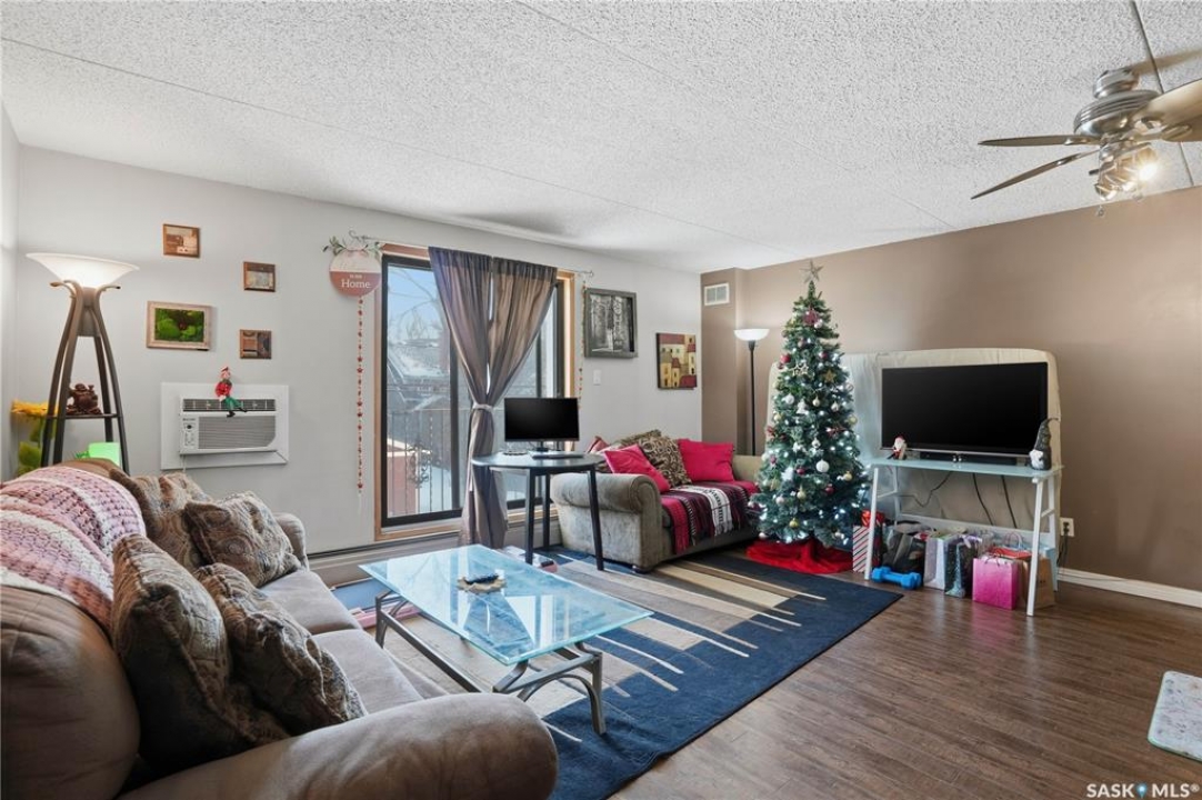 This property comes completely furnished (except for the tenant's personal belongings). The interior walls are concrete, which helps with sound control. The bedroom has no window. Updates over the years include: refreshed cabinets, stainless steel appliances, flooring, base trim, paint and wall air conditioning unit. There is one designated parking spot #2 at the back of the building (which is easily accessible from the north exterior door to the building). There is a common area laundry room on each floor. There is an elevator on every floor. Security exterior doors with a buzzer system at the front door. Cameras are in various areas of the building. A brand new elevator was installed in December 2025. Great potential for a first-time home owner or revenue. This condo is located close to the downtown area. Property sold as is. Showing times and days: Saturday or Sunday, 11:00 am to 4:30 pm, with 24 hours' notice.
