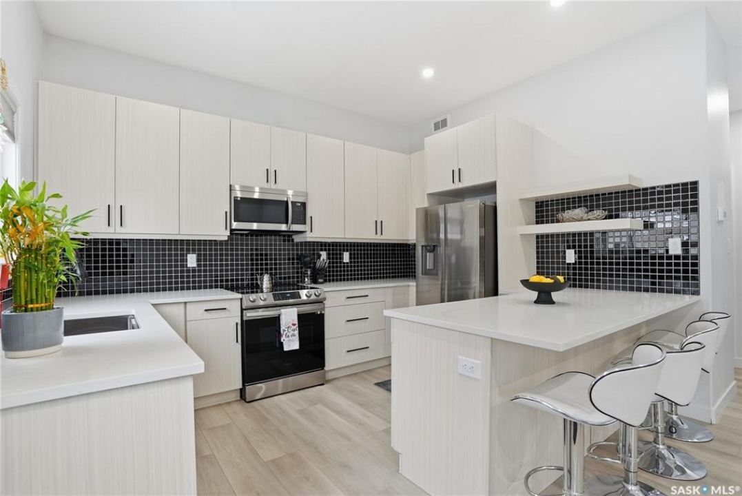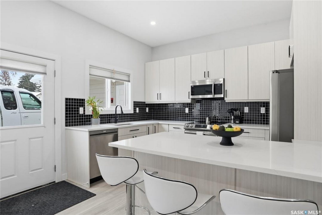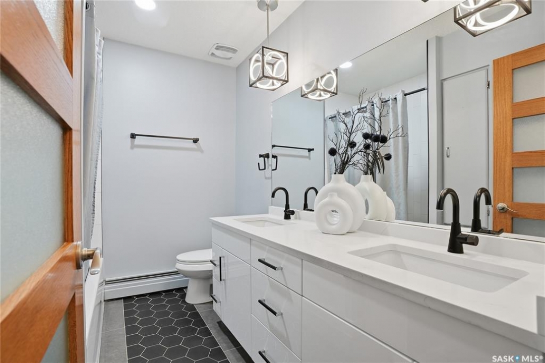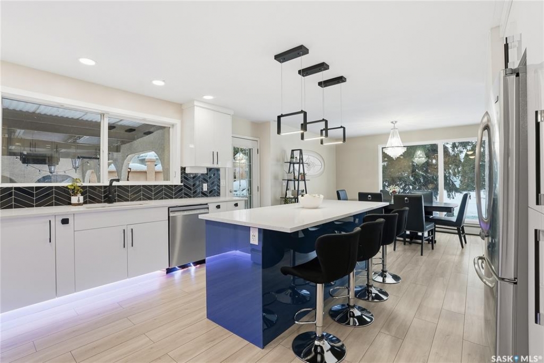 Welcome to this beautifully renovated 1,388 sq. ft. bungalow that perfectly blends modern comfort with timeless warmth. Featuring 2 bedrooms plus a den on the main floor and 2 full bathrooms, this home offers outstanding functionality for families and professionals alike. Step inside to discover a bright, open-concept design showcasing an updated kitchen with gleaming quartz countertops, a large island with extra storage, stainless steel appliances, and laminate flooring throughout. Cozy up by one of the two wood-burning fireplaces — one upstairs and one in the spacious basement family room. The lower level offers exceptional extra living space, including 2 additional bedrooms, a 5-piece bathroom with a jet tub, and abundant storage areas, including a large utility room and cold storage. Enjoy year-round comfort with boiler heat, central vac, and even an infrared sauna. The attached 4-car heated garage (in-floor and natural gas heat) provides ample space for vehicles and hobbies alike. Outdoor living is effortless — relax on the covered patio with a wood-burning fireplace, or unwind in your year-round hot tub accessible from the laundry/den area. With RV parking and a massive 12,000 sq. ft. lot, space is never an issue. Adding exceptional value, the property features a newly completed (2024) 664 sq. ft. legal suite bungalow with 1 bedroom plus a den, 1 bathroom, full kitchen, and comfortable living area. The suite boasts 10 ft ceilings, in-floor and exterior concrete heat, and on-demand hot water, providing a perfect option for extended family or rental income. Located close to schools, parks, and all major amenities, this is the complete package — luxury, space, and versatility all in one! ?