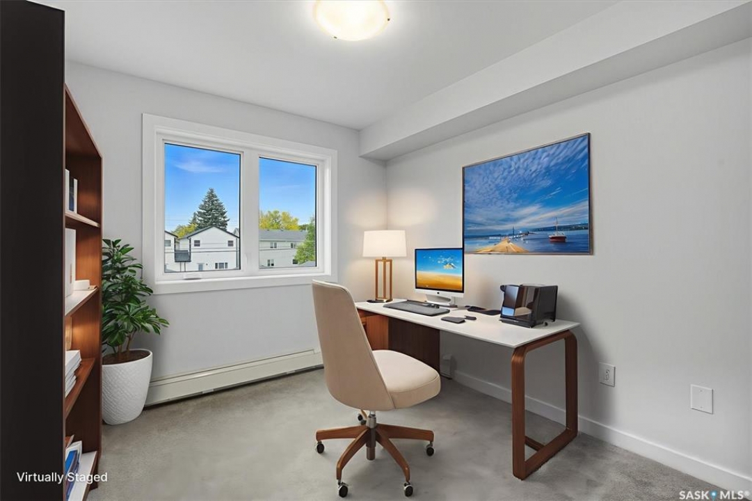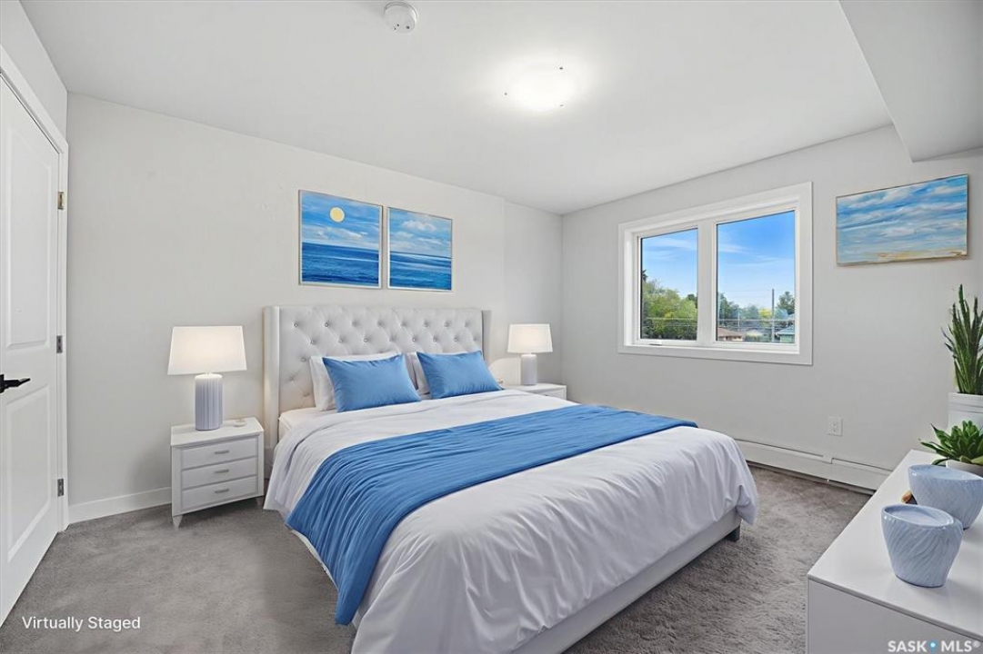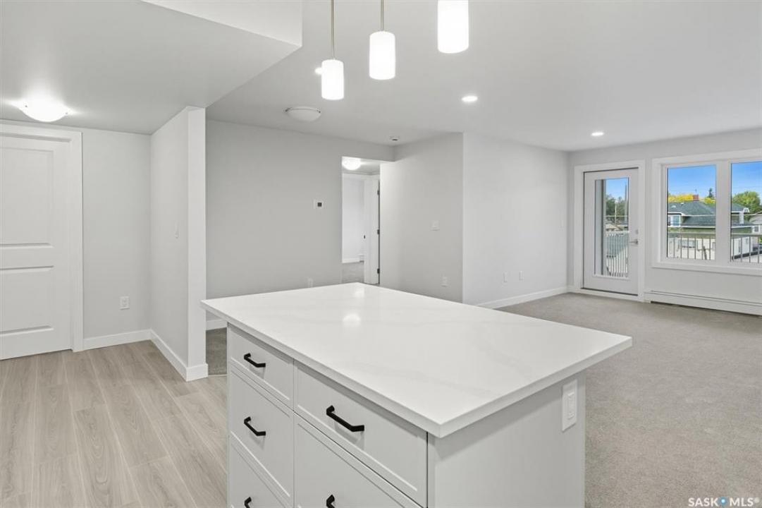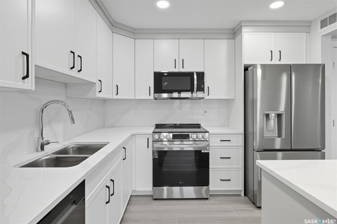 Welcome to #208 – 318 108th St W in Saskatoon — a brand-new, 2 bed + 2 bath condo rebuilt from the ground up and loaded with thoughtful upgrades. Located on the quiet side of the building, this 1,030 sq ft unit is a peaceful retreat just minutes from the University of Saskatchewan. Enjoy quartz countertops in the kitchen and both bathrooms, a solid-slab backsplash, and a large island with extended overhang for casual dining. The stainless steel appliance package includes fridge (with ice and water), stove, dishwasher, washer and dryer — all upgraded and backed by warranty. A smart layout includes an oversized laundry room with the option to move appliances for added functionality. Premium finishes include thick, high-grade vinyl in wet areas for leak mitigation and plush, upgraded carpet for comfort and warmth — far superior to standard laminate or LVP found elsewhere. This turnkey unit also features underground heated parking, a covered balcony, and easy access to parks, schools, and local amenities. Whether you're an investor, university staff/student, or a farmer seeking a winter city condo, this modern unit offers unbeatable value and versatility in a prime Saskatoon location.