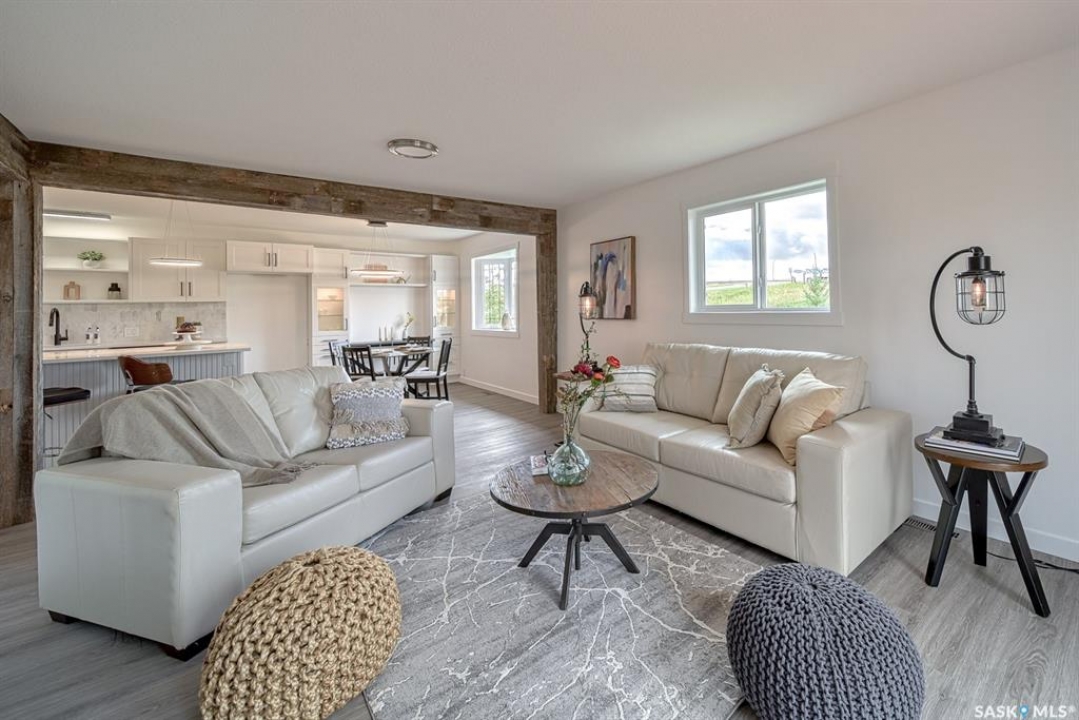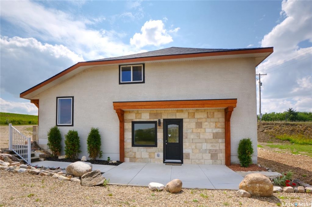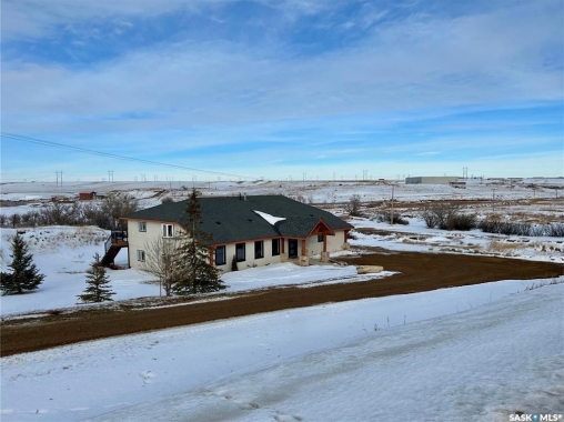Your wait is over to own an amazing acreage property just 6 km east of Moose Jaw! River's Edge Acreage is a must-see opportunity you do not want to miss!! Combining an amazing location on the river's edge with just completed beautiful on-trend finishes to over 2400 sq/ft of this home, you will be amazed as you enter the great room with vaulted ceiling & gas fireplace! A games room or home office (330 sq/ft) has so much potential for families of any size & is adjacent to the great room! Stepping upstairs, you will absolutely love the fabulous open concept living area with a kitchen designed for all the chefs in the family! Quartz countertops, central island, lovely dining area, along with a spacious living room that steps onto the deck overlooking the beautiful river valley views with a staircase to take you out to the firepit area! Down the hall, a stunning bath with a gorgeous soaker tub walled in striking stone tiles is magazine-worthy! Three bedrooms, a laundry area, as well as another bath lead to the primary suite that has yet another beautiful bath plus a very special walk-in dressing room where you will love to spend time getting ready for your day! The walkout lower level has amazing potential to be another living space for family, income, or Airbnb, as 2 exits from the level go to lovely patio spaces (one is covered), or used for your personal needs! The 2.62-acre property has so much beauty that you will vacation at home! Just imagine taking out your kayak to the river's edge of your own private property! River's Edge Acreage must be seen to appreciate how amazing it is! Just a few features: 4 bedrooms, 3 baths, 2400 sq/ft newly finished interiors, 1600 sq/ft walkout lower level, new well, beautiful landscaping, minutes to Moose Jaw, no gravel roads to drive!, a virtual new home with gorgeous views,....I know!!! Be sure to view the 3D scan of the amazing floor plan & 360s & drone shots of the outdoors!! Directions: 50.3979722 -105.4138056