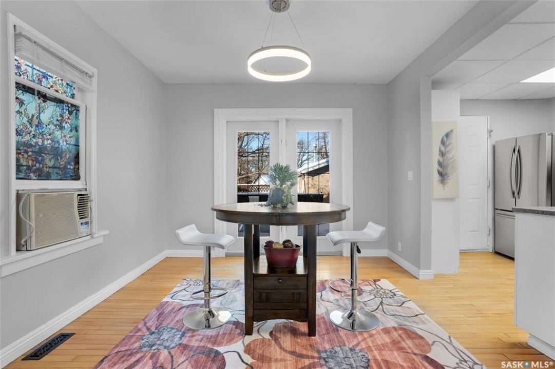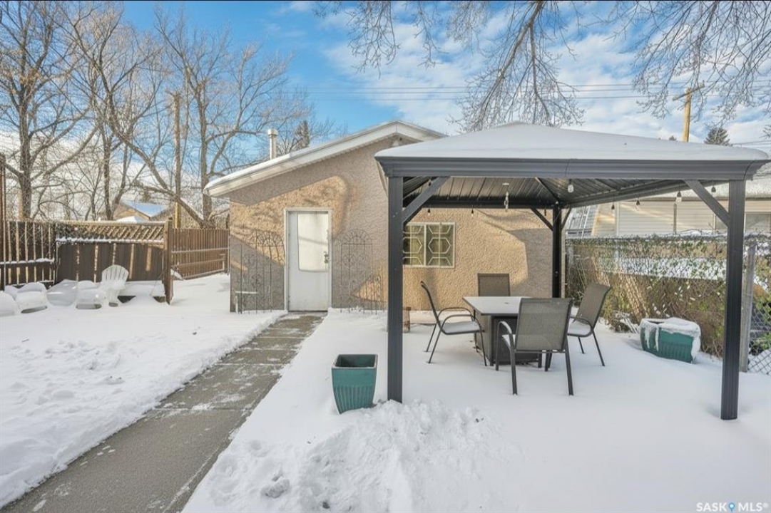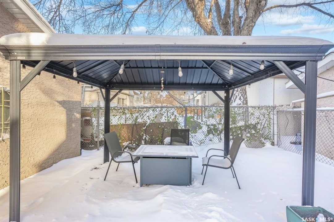 Welcome to this charming home nestled in a quiet, family-friendly neighbourhood. From the moment you arrive, you'll appreciate the timeless stucco exterior, 37.5 x117 yard, great curb appeal, and the sense of 1912 character thoughtfully preserved alongside fresh paint and updates throughout. Inside, a large, high-ceiling foyer creates an inviting first impression, opening to a spacious living area with a bay window that flows seamlessly into the dining space—perfect for entertaining. The home is filled with natural light, featuring numerous windows and a window A/C unit in the dining area for added comfort. The adjacent kitchen is well laid out and includes all appliances, with a new dishwasher (Dec 2025). Upstairs, boasts beautiful new luxury vinyl plank flooring 2025, the massive primary bedroom offers his-and-hers closets, while the upgraded 4-piece bathroom features in-floor heating, a relaxing soaker tub, and a stand-alone shower. A second well-sized bedroom completes the upper level. The finished basement adds a valuable 3rd bedroom and 2nd Washroom and a 4th bonus room off the Laundry room that could be a perfect study space or office. Electrical was updated in 2010, and most windows have been replaced. Step outside to enjoy a fully fenced yard with a deck and patio doors off the dining room, a cozy fire pit corner, and a screened gazebo—perfect for summer entertaining. Additional highlights include a large solid stucco storage shed, extra off-street parking, and a fully enclosed yard ideal for children and pets. Owner has just dropped the price $20k presenting an excellent opportunity for the next owner.